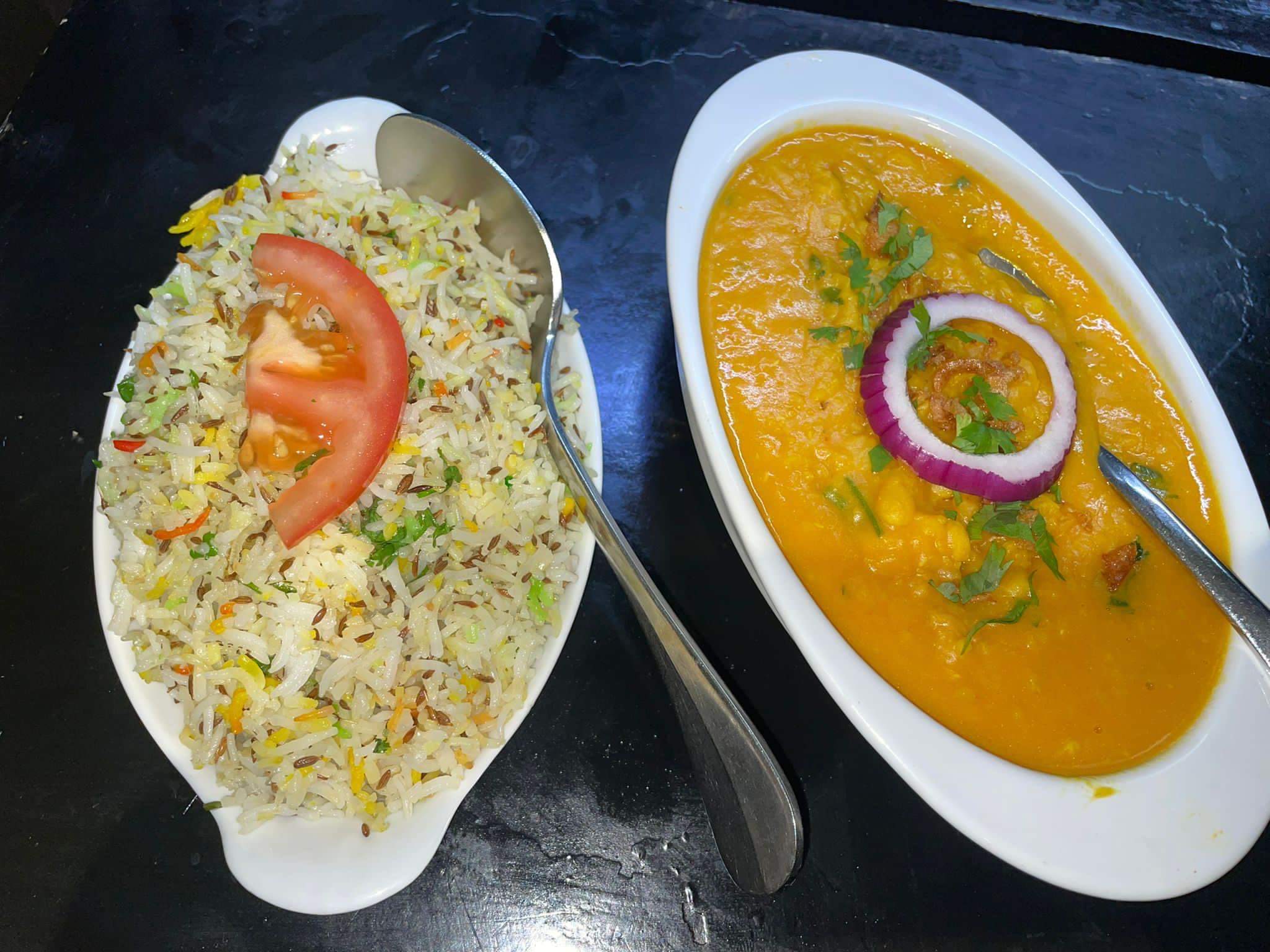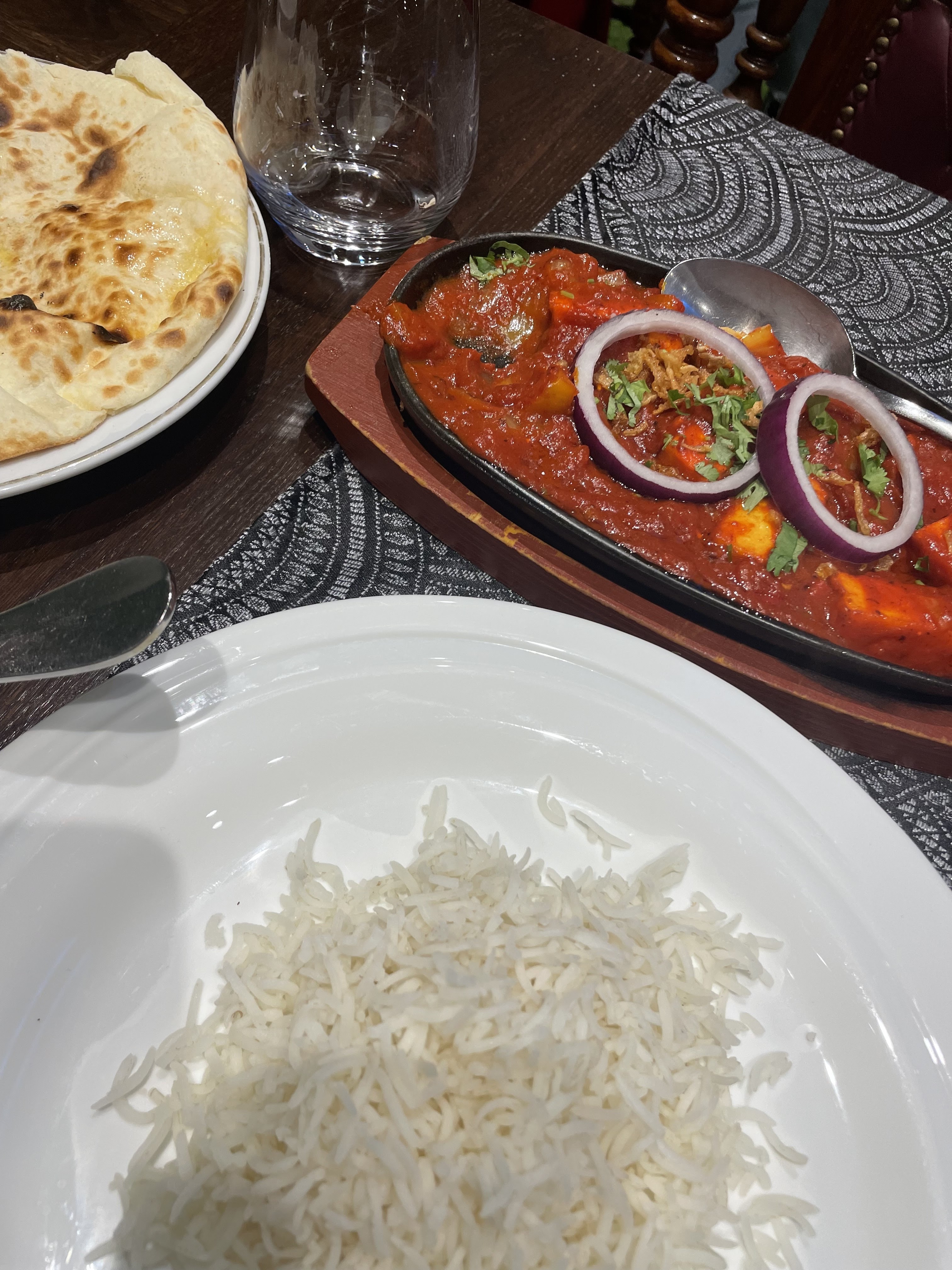 La nourriture est sortie rapidement et nous avons vraiment apprécié notre repas. J'ai commandé le poulet tikka masala et le curry de saumon avec du riz aux œufs et à l'ail et quelques naans. Nous serions de retour. L'anglais est parlé ici si vous êtes intéressé.❤️❤️❤️hier soir...