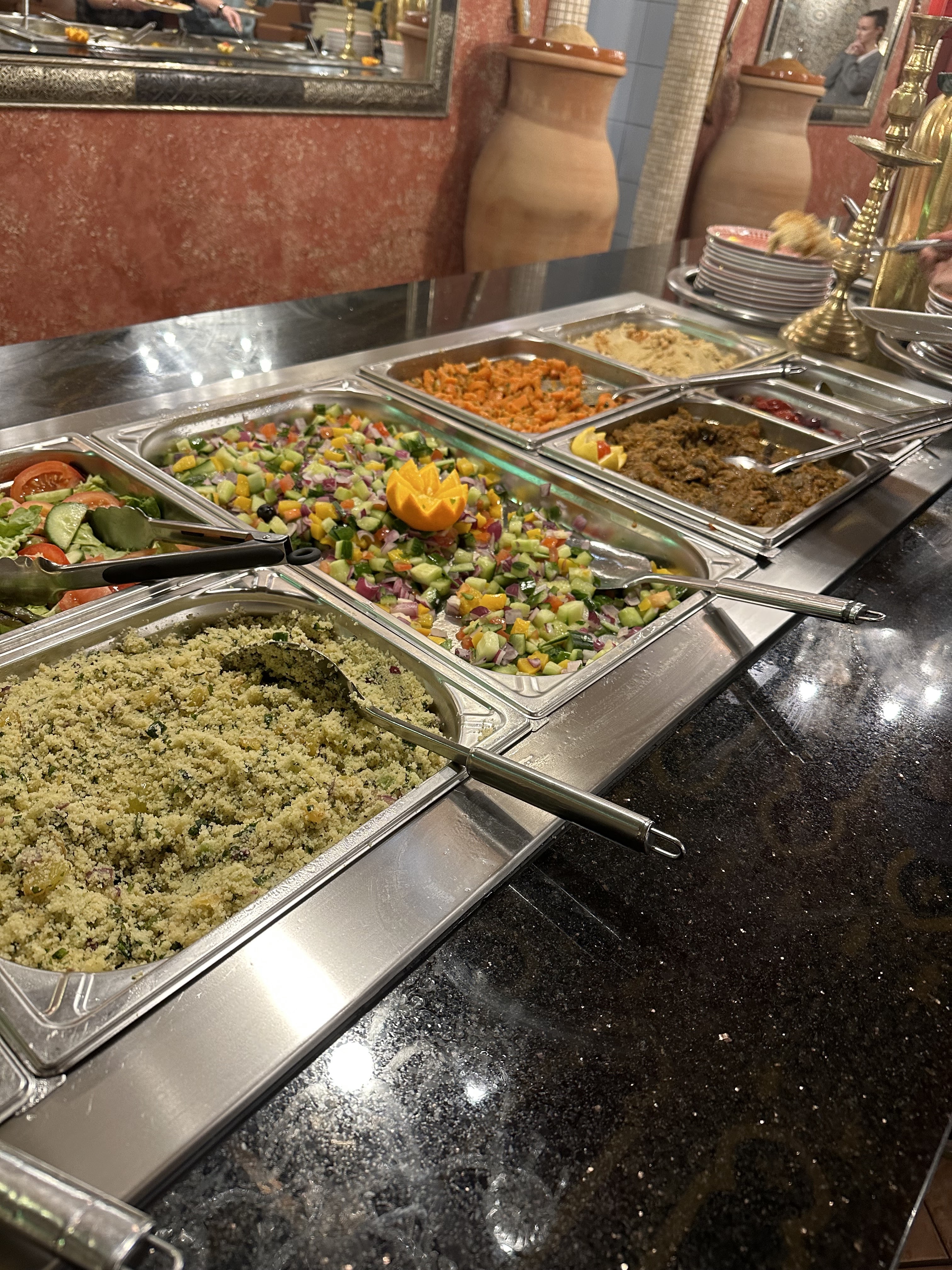 Un des meilleurs buffet à volonté que j'ai essayé de tout ma vie. Les plats sont super bons avec beaucoup de choix. Ambience extraordinaire, j'avais l'impression d'être en maroc sans voyager grâce aussi à la danseuse qui a animé la soirée. Serveurs cordiales et à l'écoute. Je conseille !!!