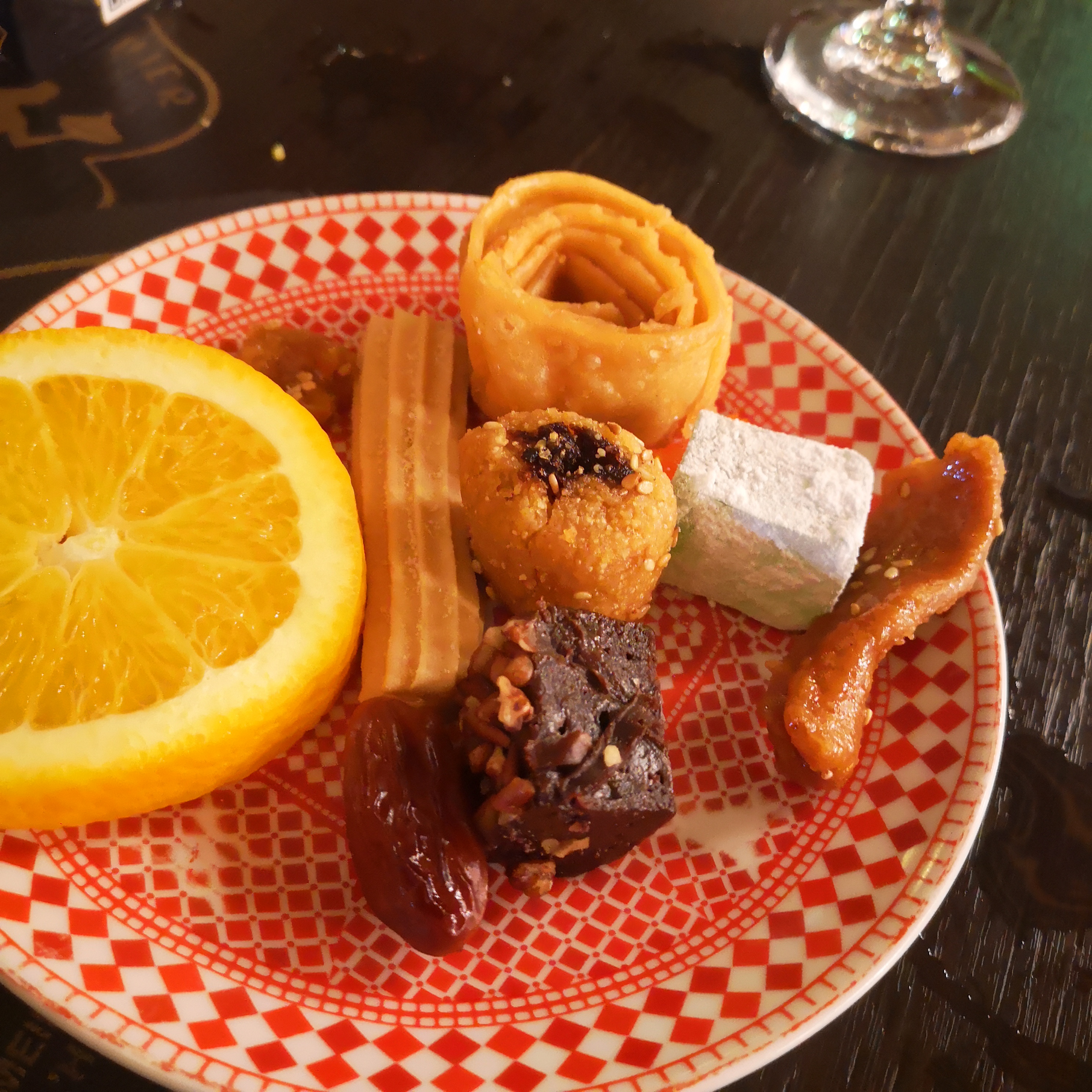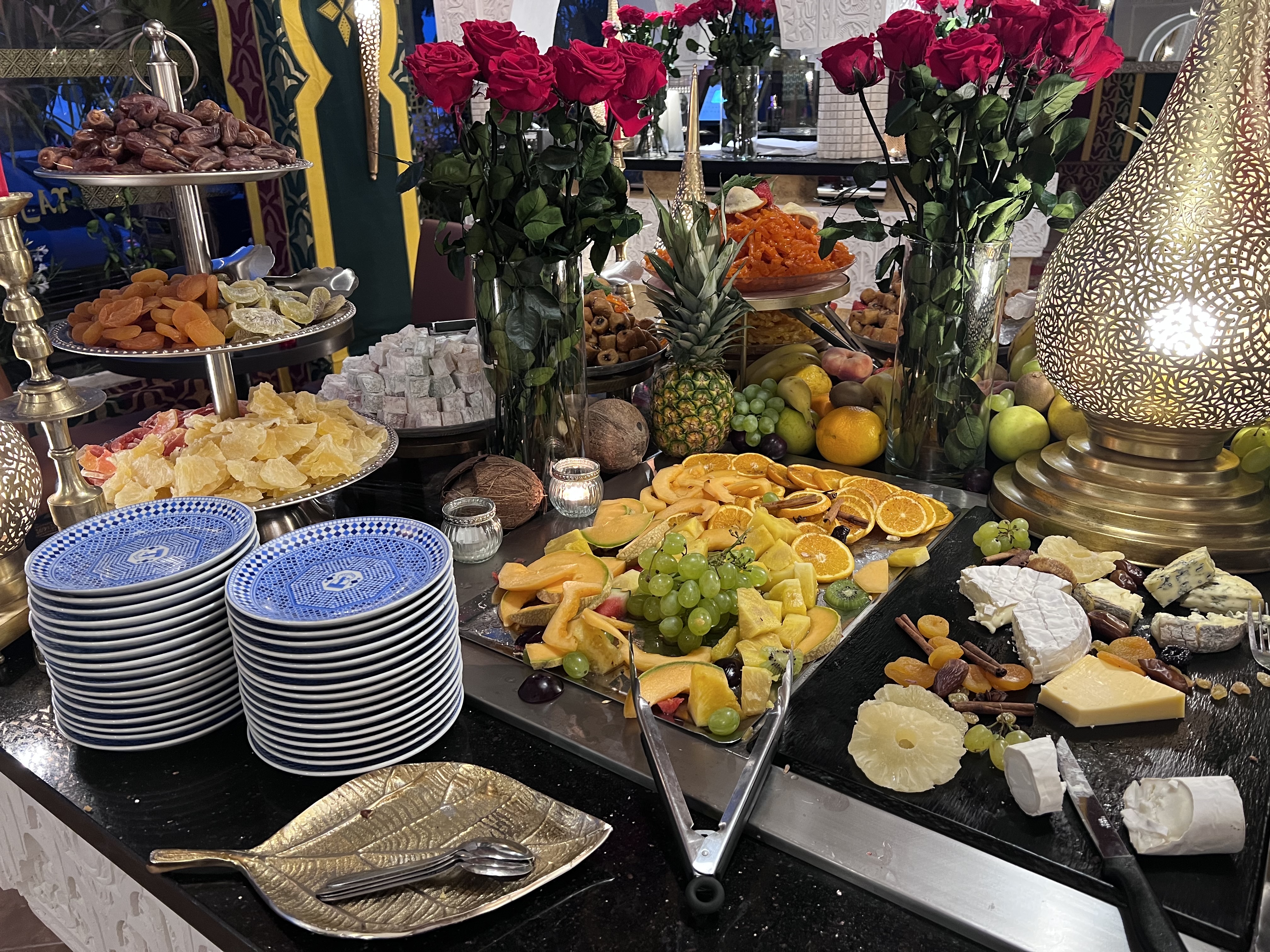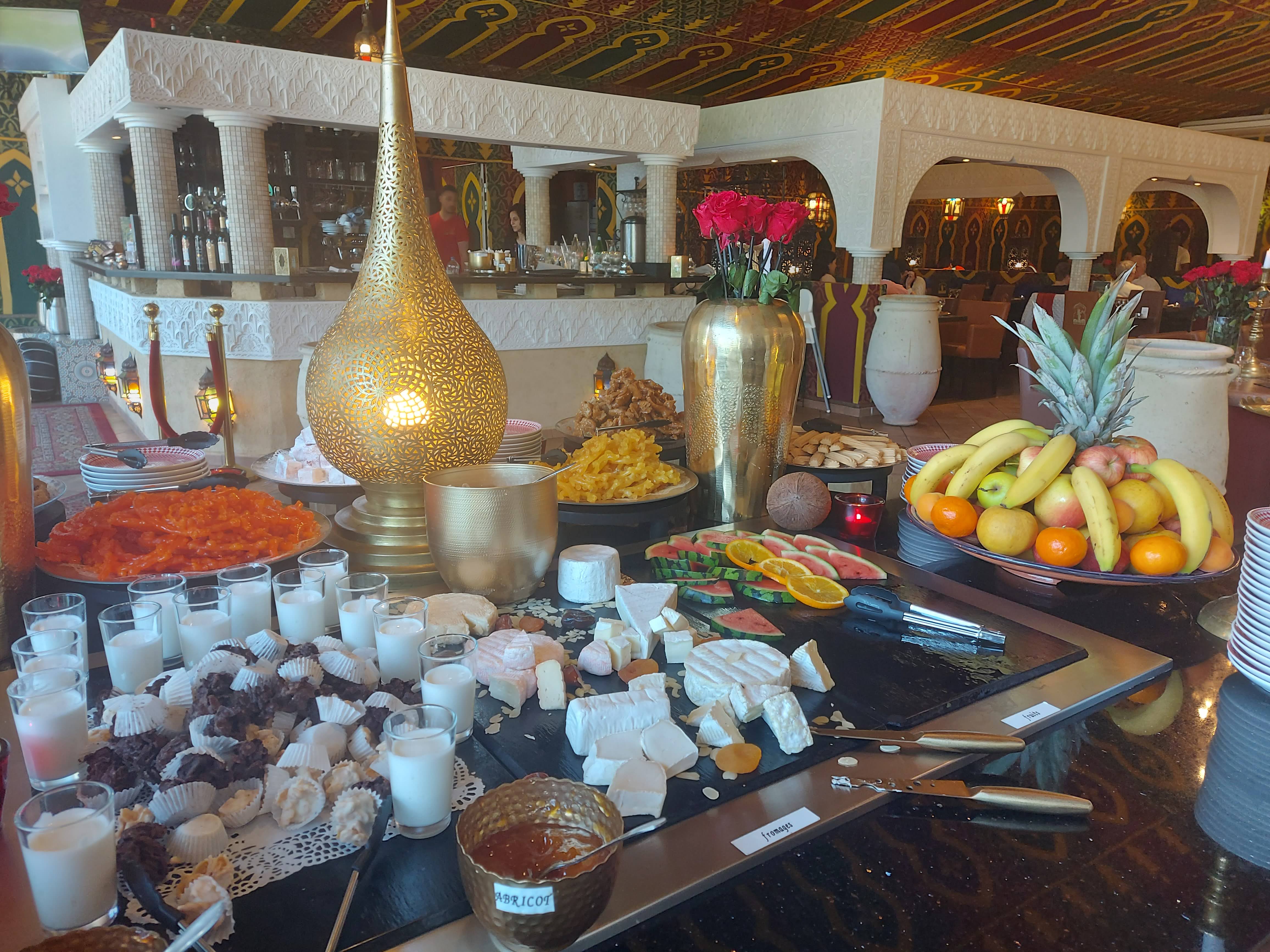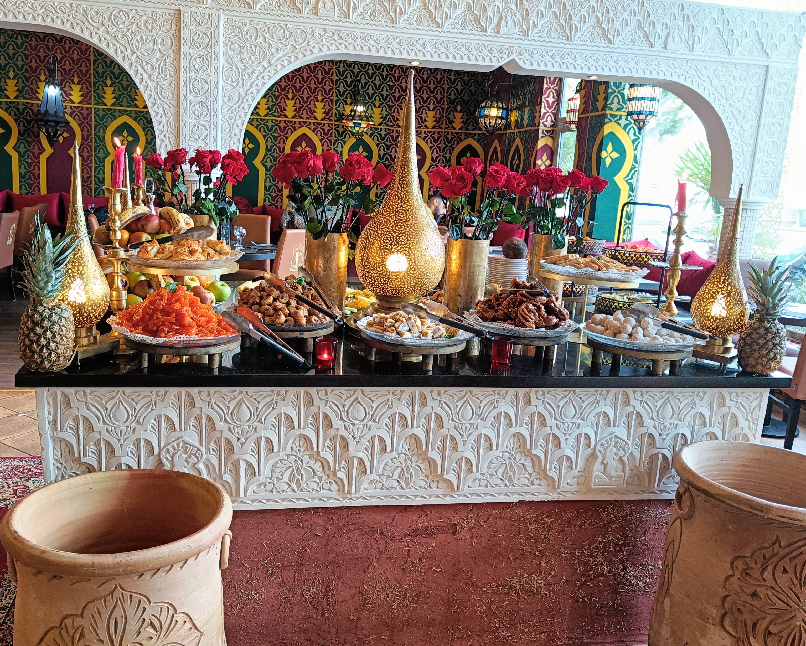 j’ai beaucoup apprécié la déco chaleureuse de ce restaurant. Le personnel est gentil. Il y a une danseuse orientale le samedi soir. En ce qui concerne, le buffet, on y trouve un peu de tout. Poulet aux olives, tajine au pruneaux, couscous… En dessert, fruits, fromages, gâteaux orientaux.. Les plats sont bons mais je n’ai pas retrouvé les bonnes saveurs marocaines( étant moi meme marocaine)