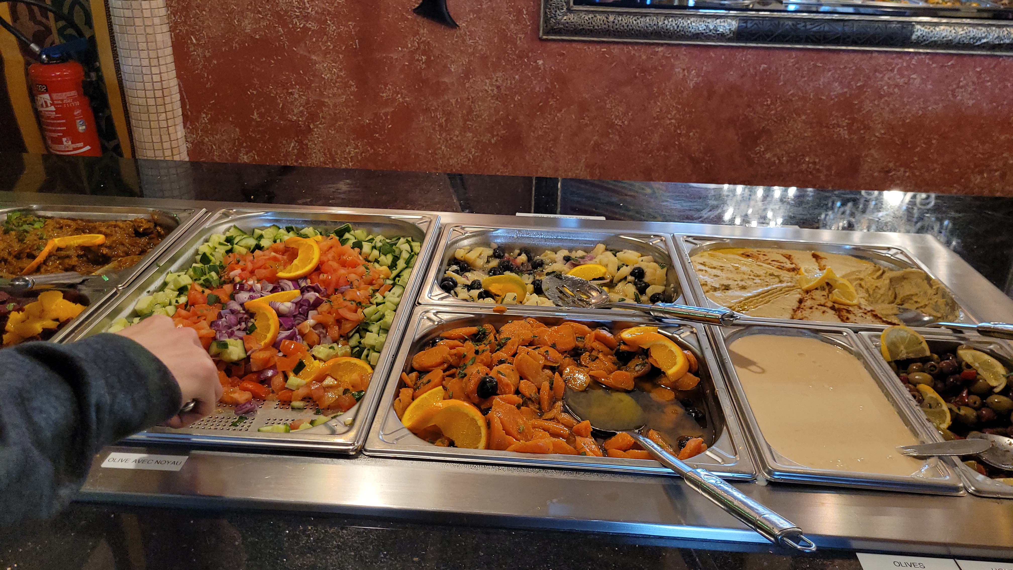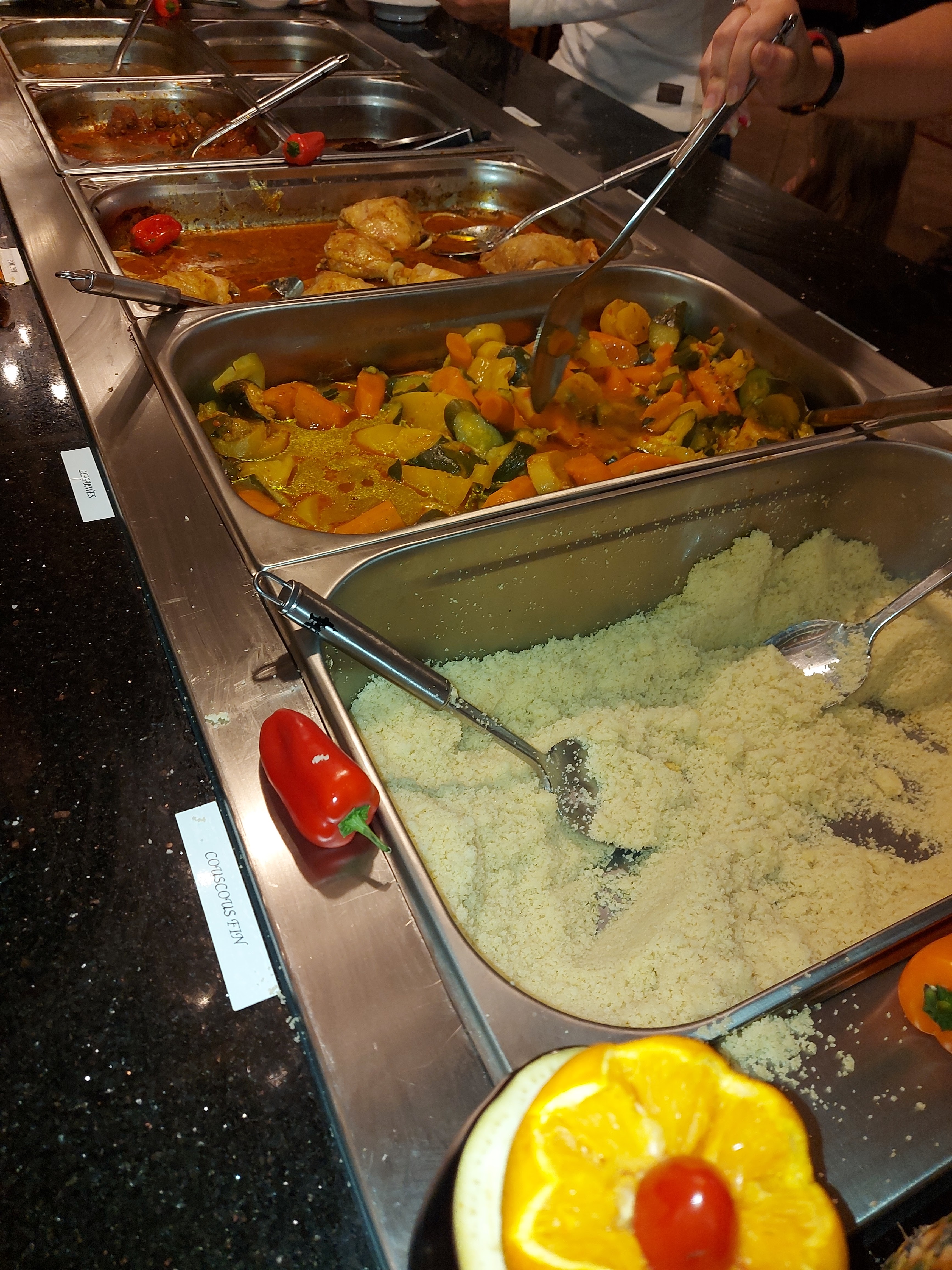Quelle belle idée de proposer un buffet de cuisine orientale ! Les plats sont cuisinés à partir de produits frais délicatement épicés, c'est un régal ! On a plaisir à goûter les différentes propositions surtout du côté du chaud.