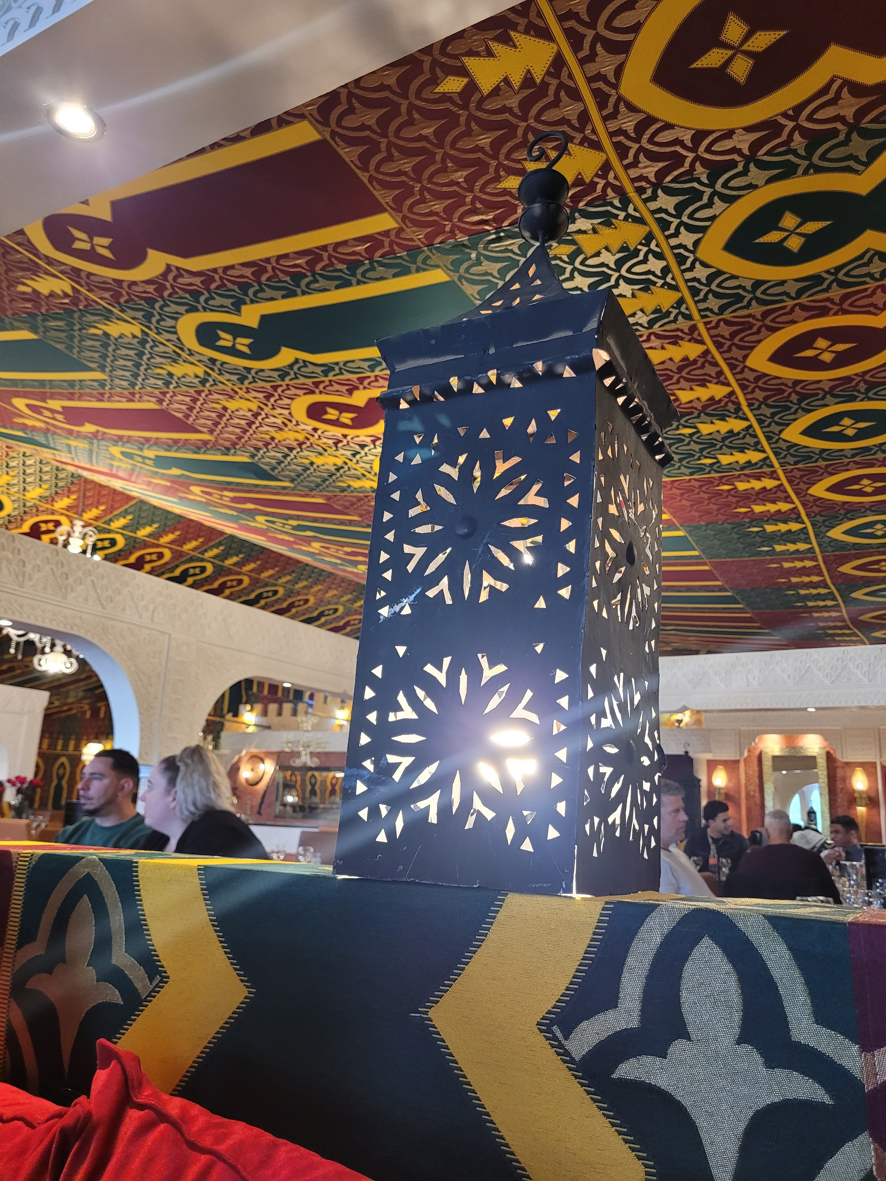 Franchissez la porte d'entrée et téléportez vous dans un somptueux palais marocain, niveau déco tout est à sa place ! Le buffet est copieux, le couscous m'a rassasié.