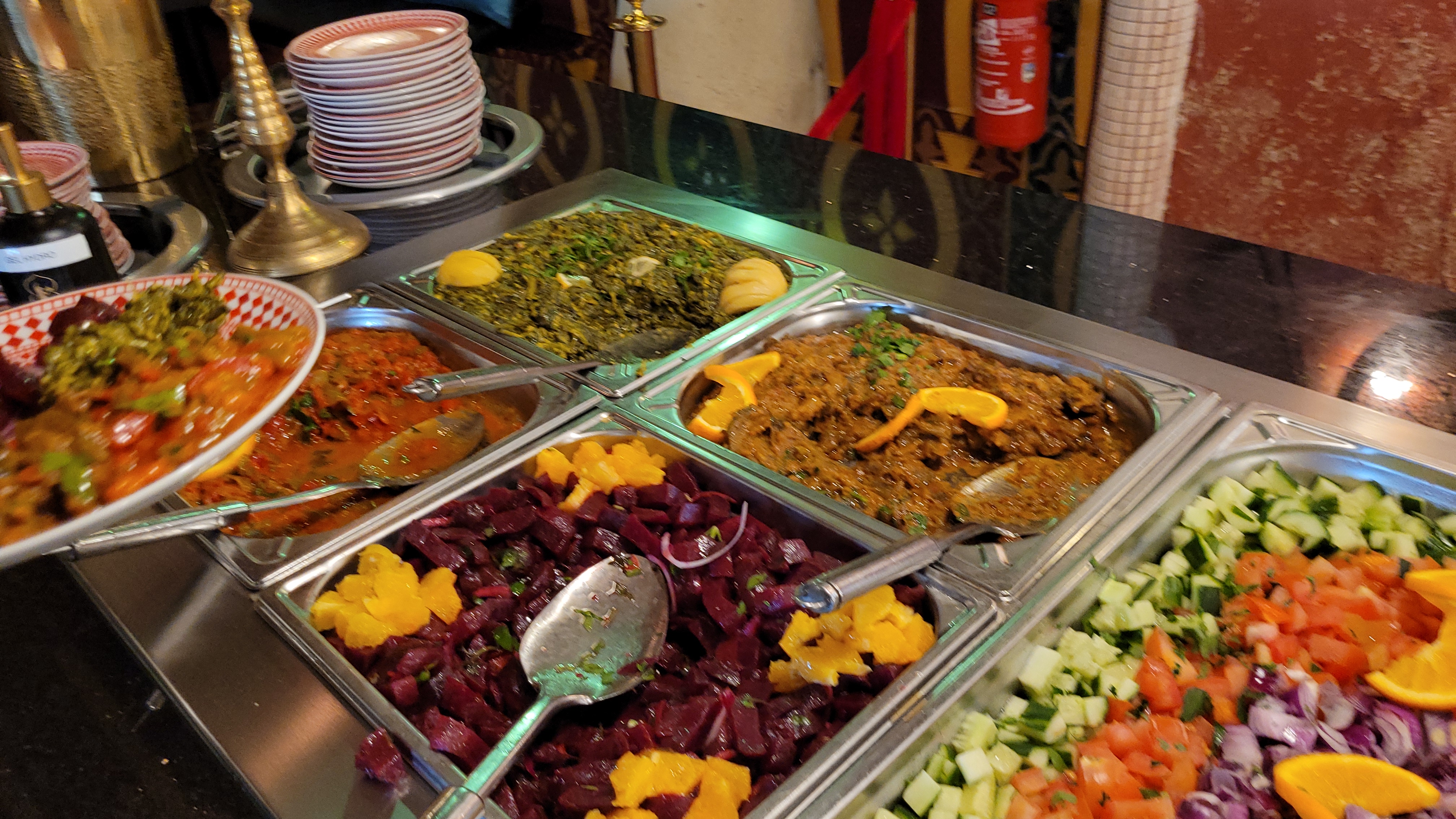 Excellent buffet pour les végétariens et les autres pour les tajines. Très bon rapport qualité prix. Le décor est magnifique et le personnel est très affable.