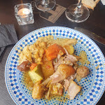 Très belle découverte de ce restaurant la décoration est magnifique les entrées tajines et couscous excellents le personnel agréable et souriant. Très bon moment .a très bientôt je recommande