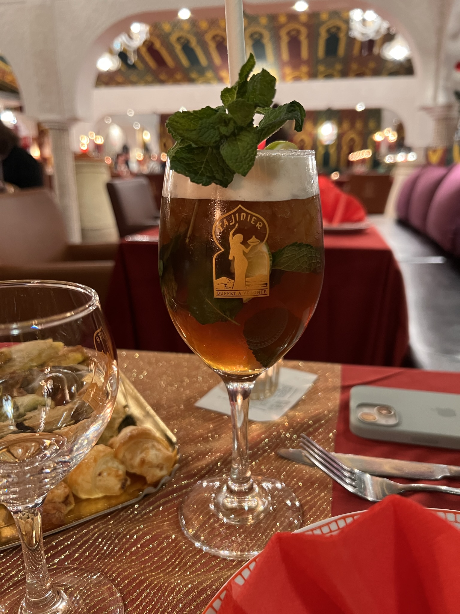 Le concept est sympa ,le cadre est magnifique et les serveuses très sympathiques et en prime , la danseuse du ventre . Petit bémol : musique beaucoup trop forte , on ne s'entend pas parler, très bruyant. Il fait très chaud également. Nous avons voulu reprendre un second thé à la menthe ( une tablée de 10 personnes tt de même ), nous avons essuyé un refus: il n'y en avait plus de fait ^^. Dommage c'est quand même la base . Les entrées ,la semoule au top !