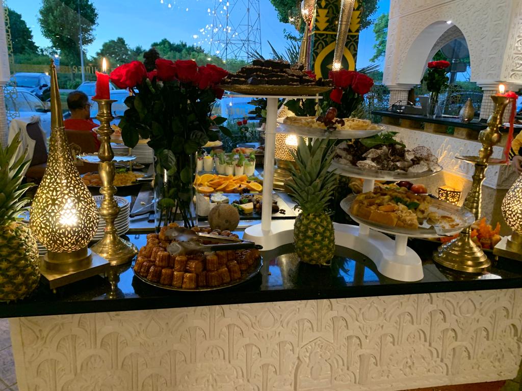 Très belle décoration, il n’y a rien à dire sur ça. Mais concernant le buffet, j’étais un peu déçue.. semoule très sec.. certains plats avaient très peu de saveurs.. étant moi même marocaine, il y a pas mal de choses à revoir .. rien ne vaut un bon plat marocain fait maison finalement.. c’est dommage. Quant au personnel, aucune personne n’est venue nous voir tout au long de notre repas, ni même nous proposer quelques choses à boire..