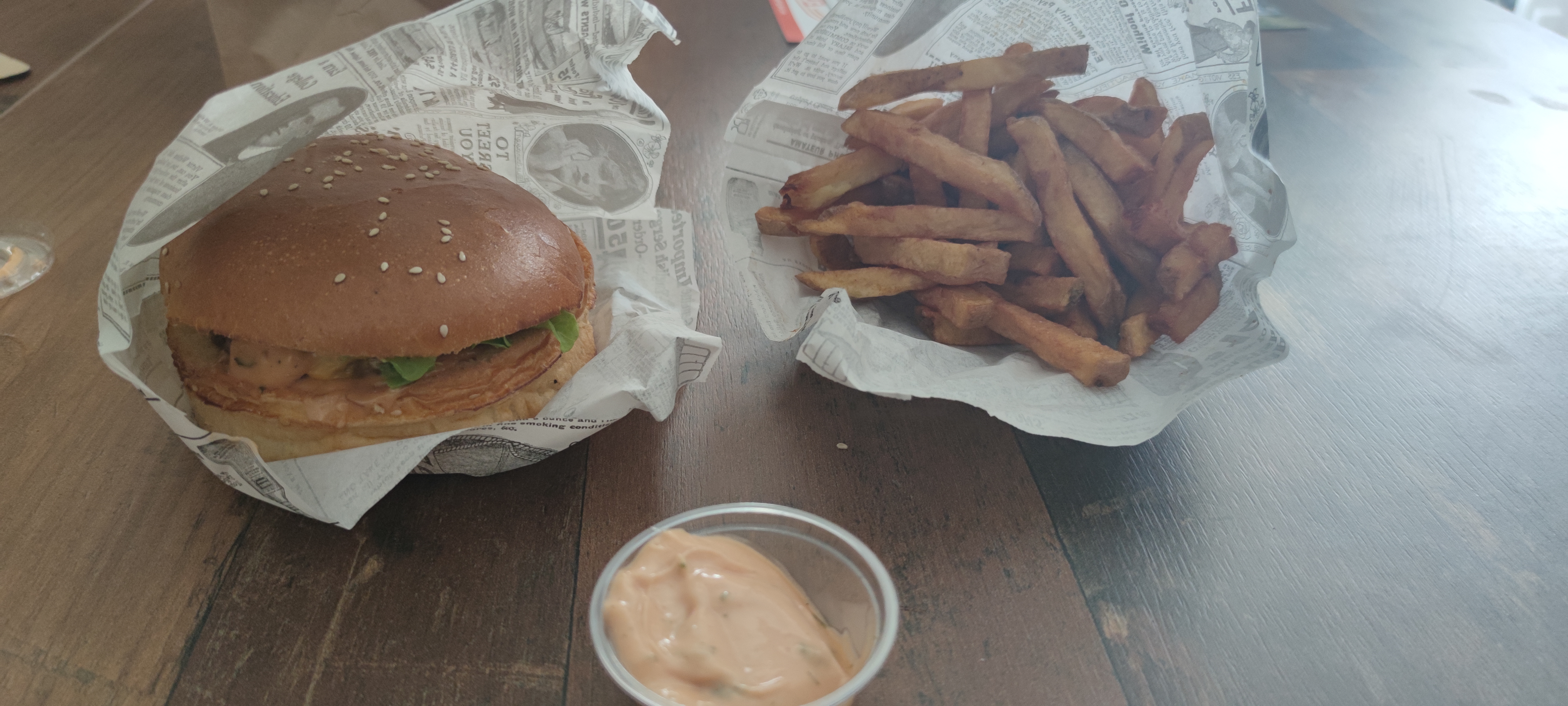 Burger généreux et fait maison très succulent. Frites fait maison savoureuses. Que dire du prix très abordable. Je recommande vivement, vous ne serez pas déçu 😉.
