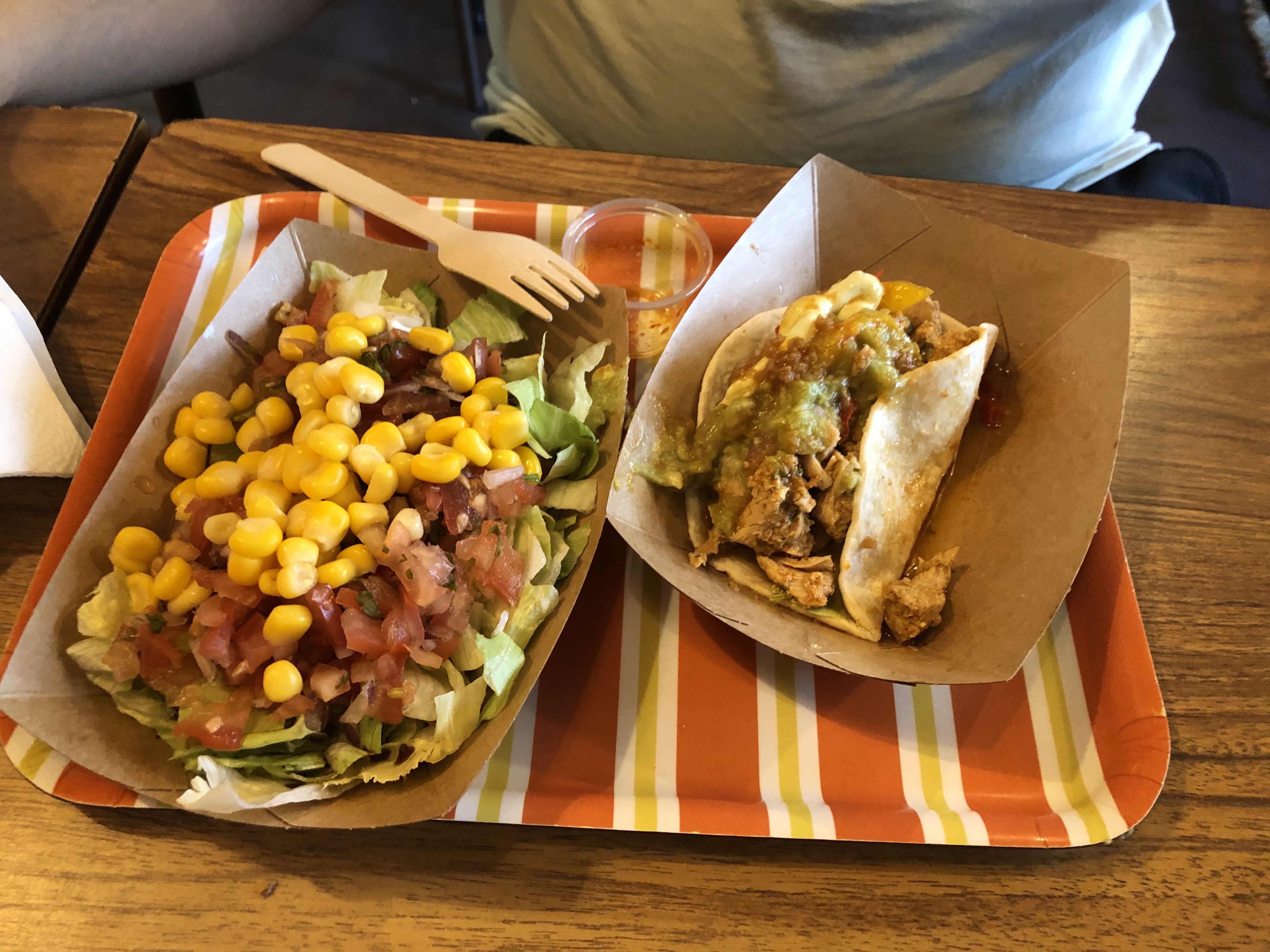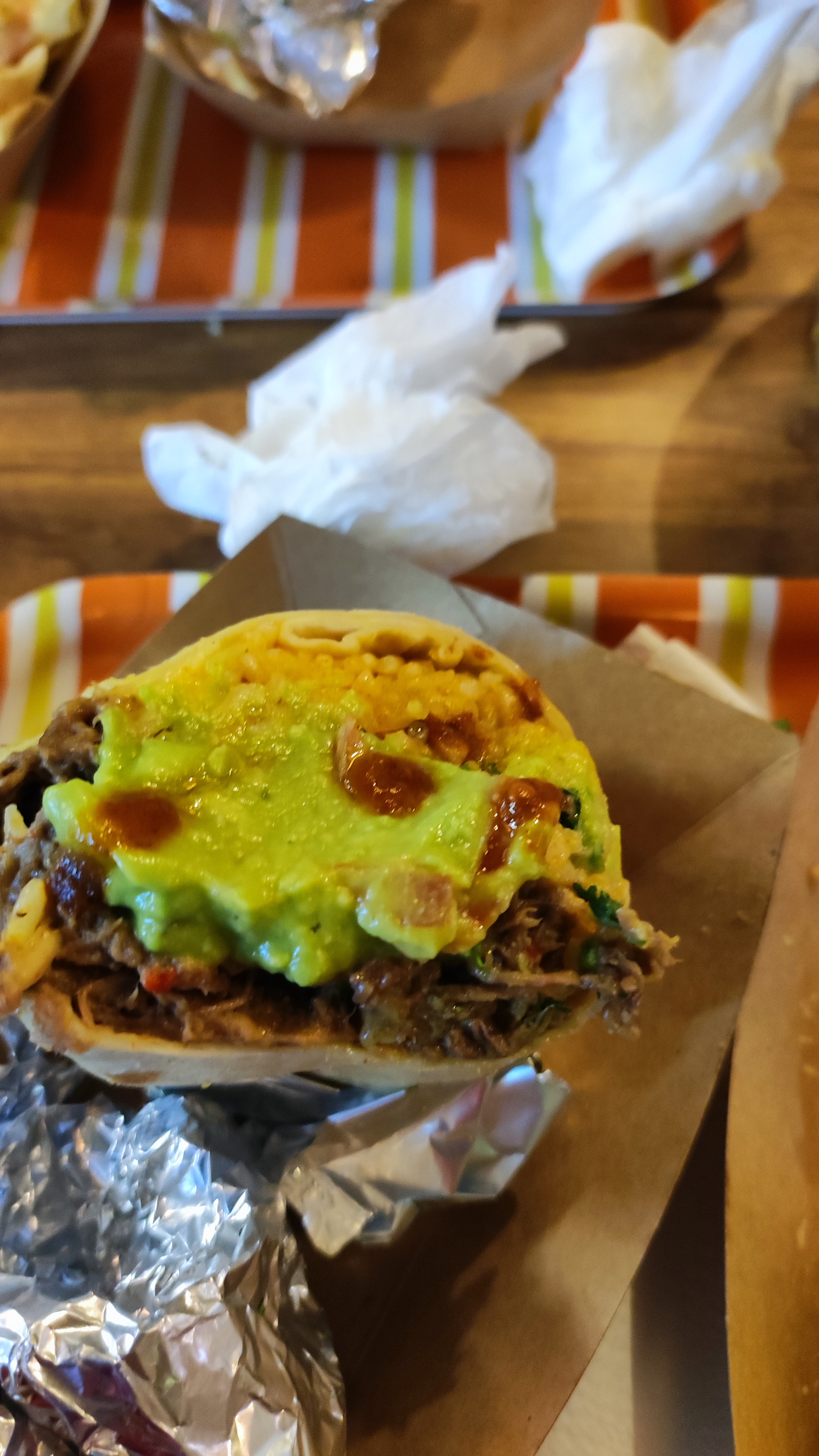 Tres déçue. On a commandé des burittos. Plutôt copieux mais dans les 2 il n’y avait pratiquement que du riz. Donc aucun intérêt. On a aussi pris une quesadilla. Copieuse aussi mais un peu trop salée.