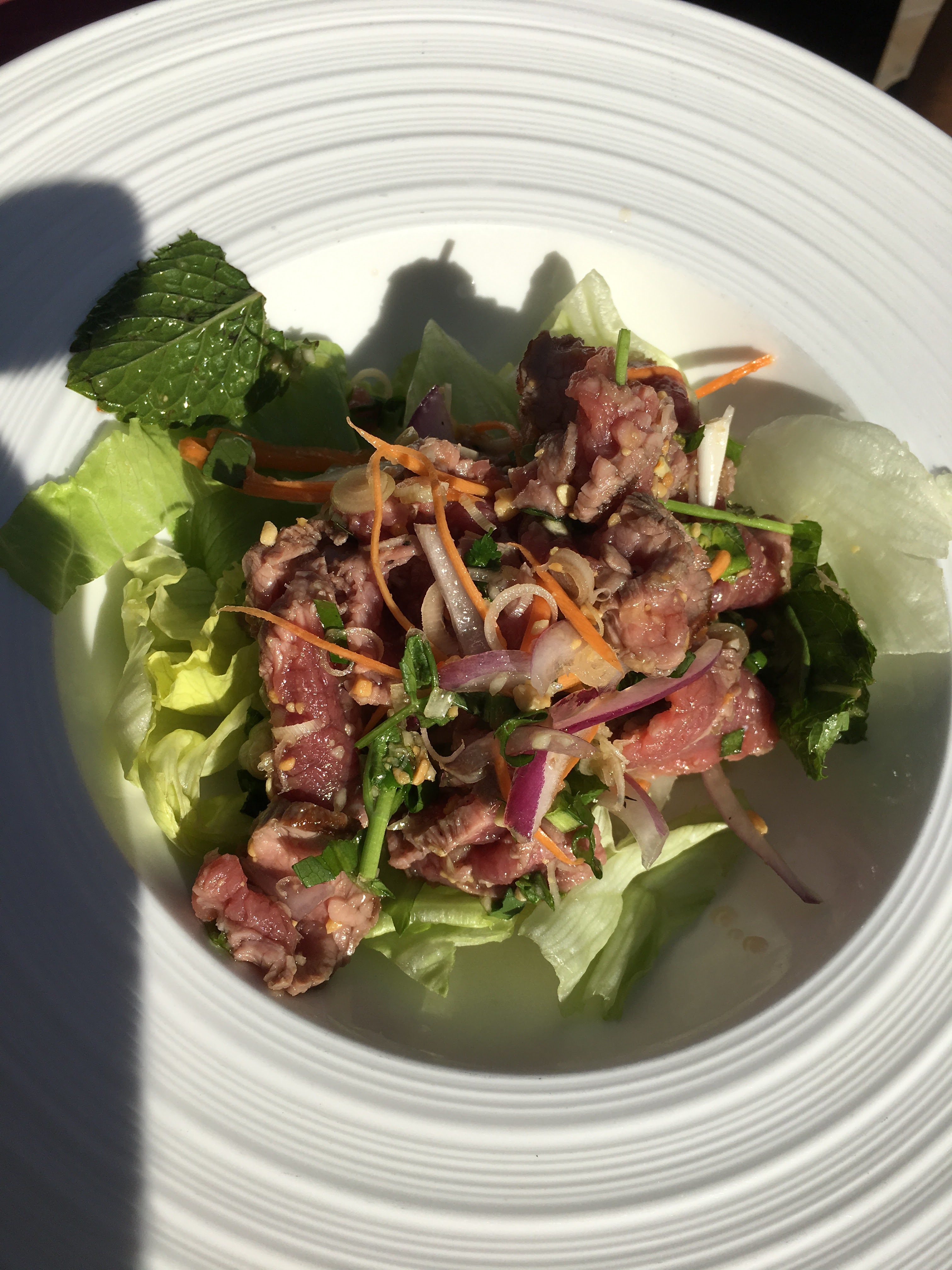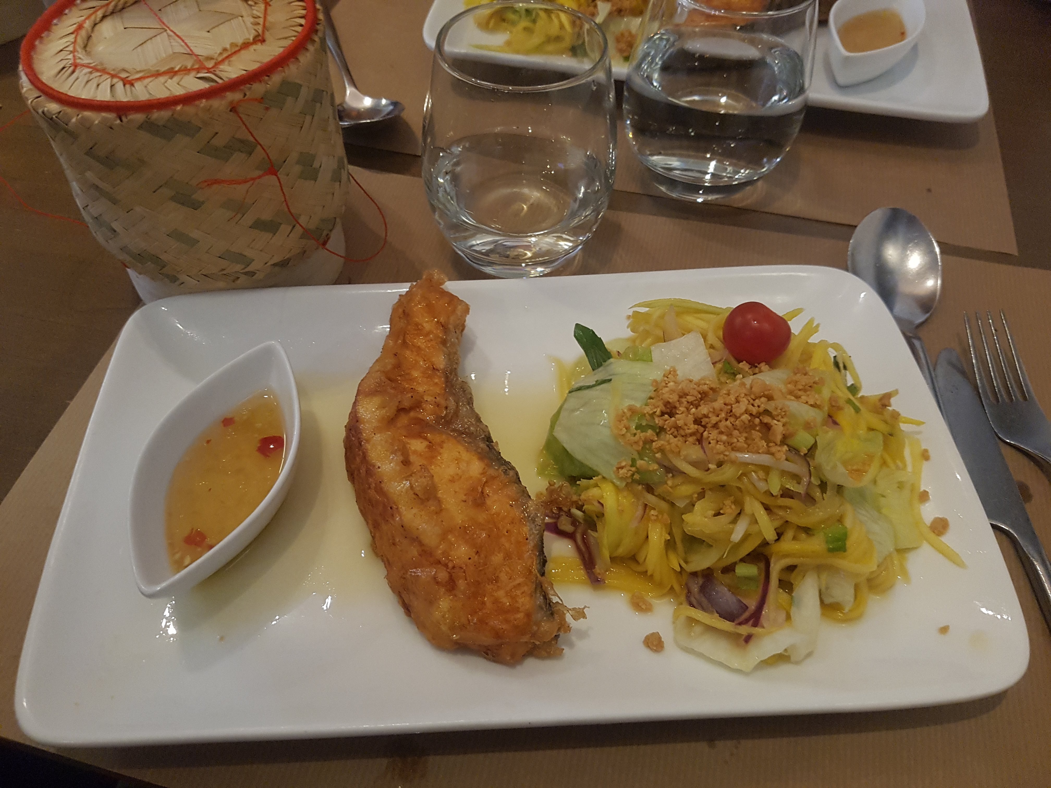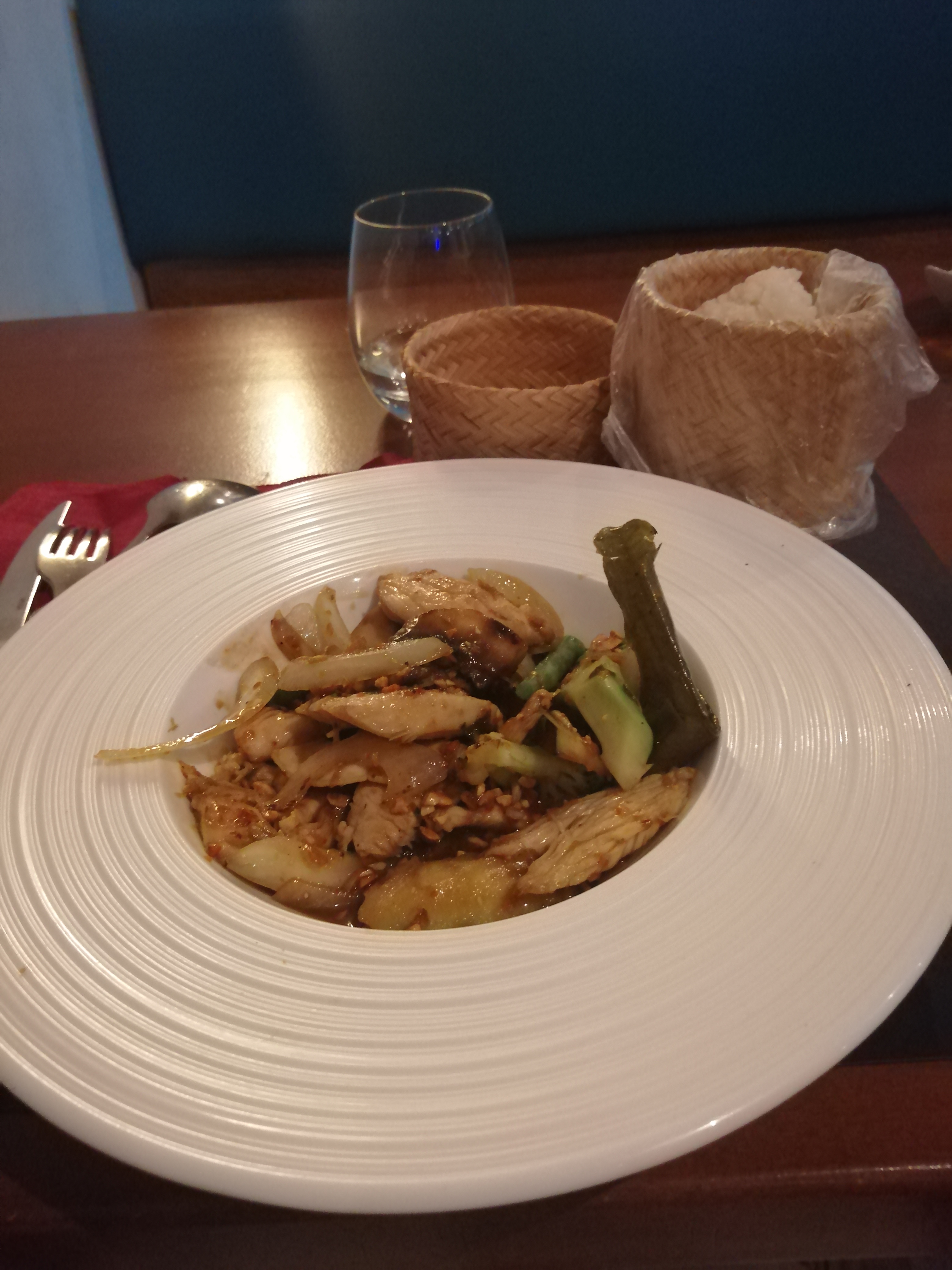C'était très bon, endroit très agréable et accueil sympathique En entrée, poulet aux feuilles de pendanus, je recommande Puis comme plat, rumsteck à la citronnelle et cacahuètes et riz gluant Je recommande également Et en dessert, crème de banane au lait de coco Miam Il faut réserver bien sûr :)