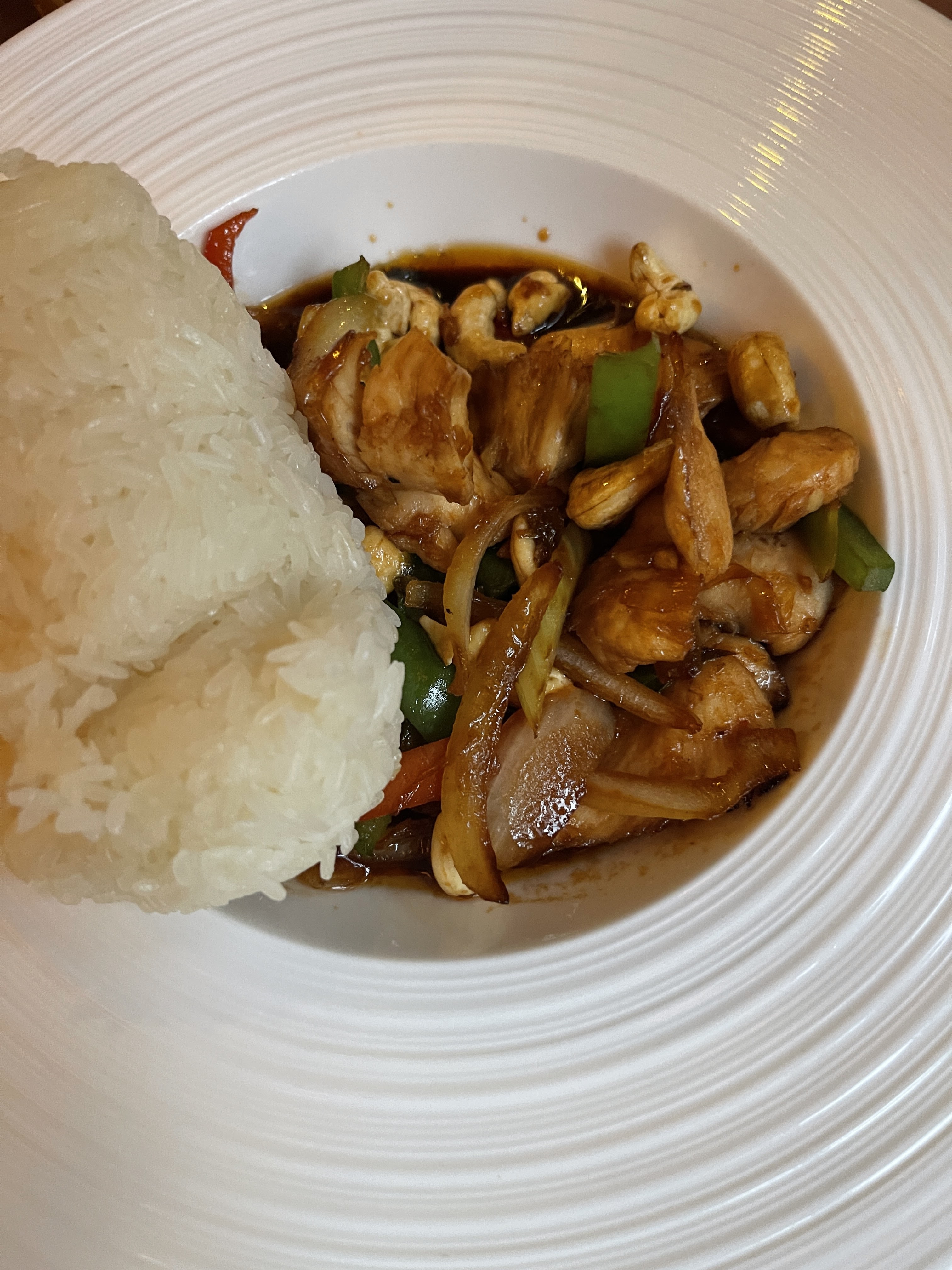 Les plats étaient très bon. Le service très agréable. Je suis simplement rester un peu sur ma faim sur l'entrée (poulet padanusse) et le plat (poulet noix de cajou). Faire attention au choix du plat selon votre faim 🙂 👍 !