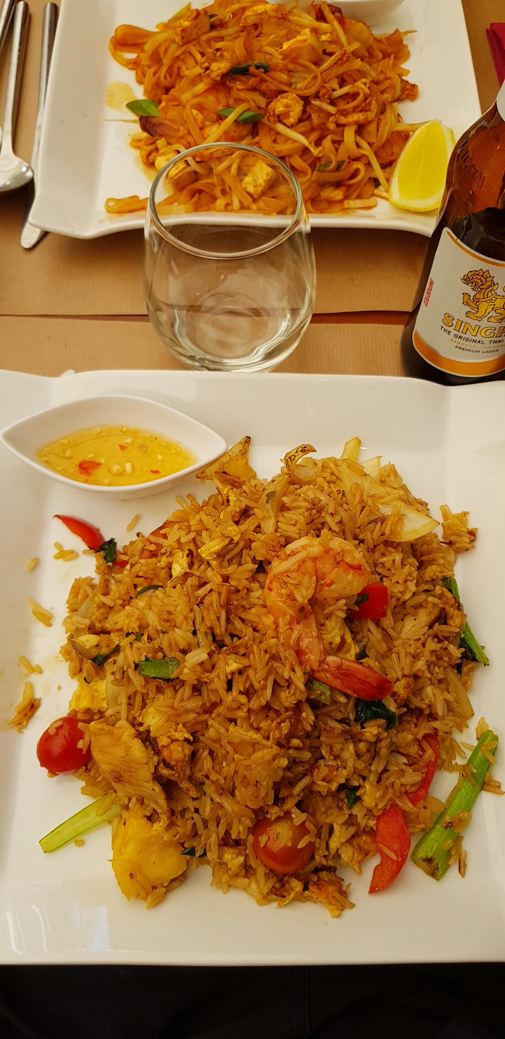 Super resto Thaï, service rapide et efficace sans être expédié '' au lance pierre ''. Personnel chaleureux et plat de très bonne qualité. Je conseille vivement entre ami(e)s. Un peu bruyant pour un tête à tête en amoureux.