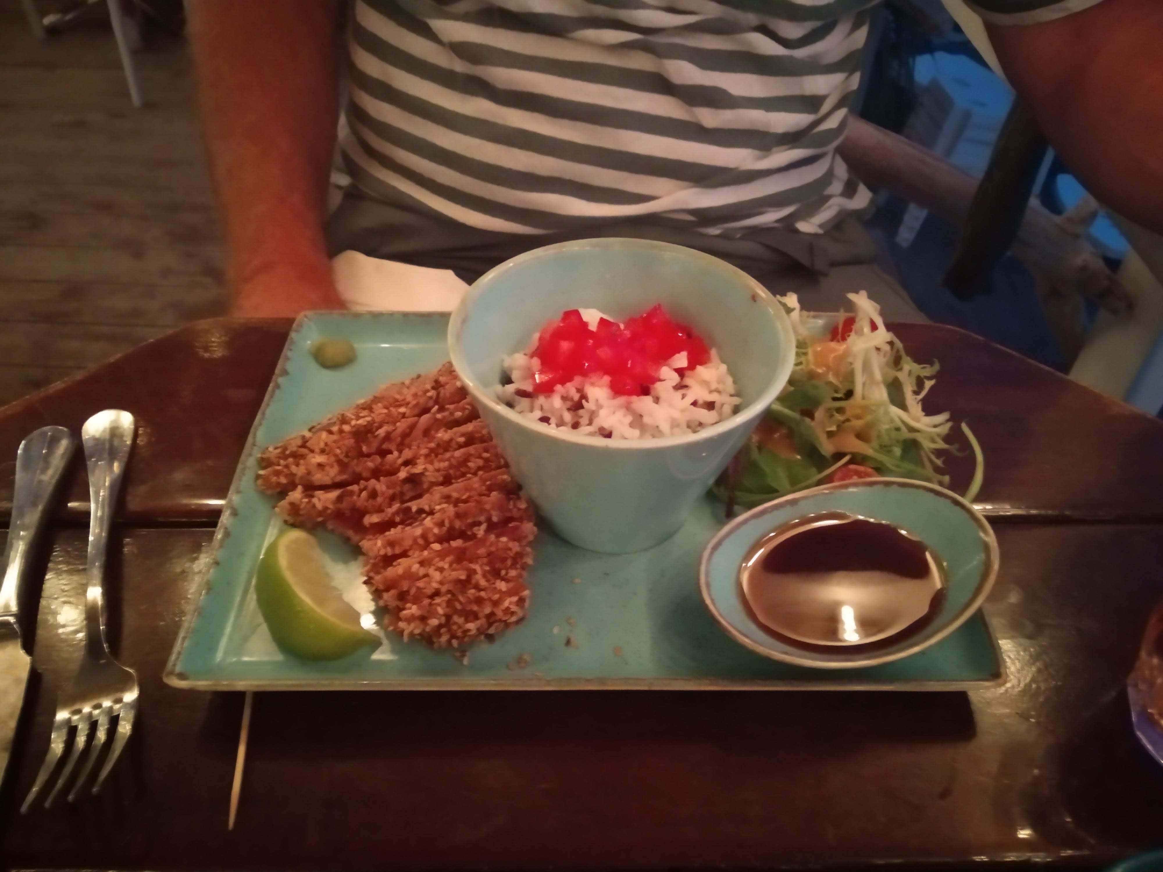 Plats très copieux, Tataki de thon et tartare d’Espadon exceptionnels. Le personnel est très accueillant et souriant. Service rapide. Nous nous sommes régalées, merci pour tout !