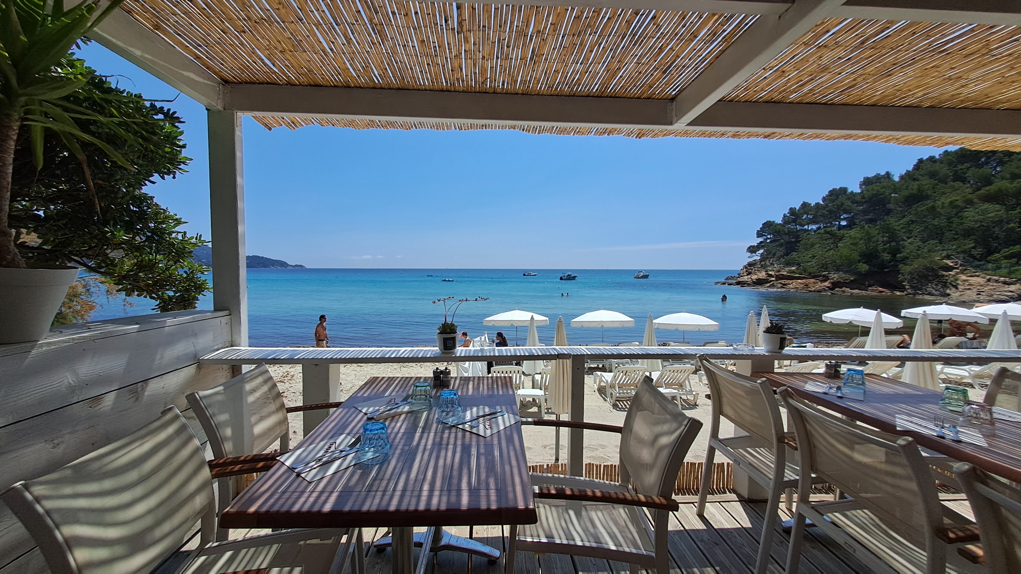 Un petit paradis sur la plage de Pramousquier. Un accueil au top, toute l’équipe a le sourire et est aux petits soins, ambiance très sympathique, déjeuner et cocktails très bons, sur une plage magnifique, on se croirait dans une carte postale. Je recommande ++++ pour passer une chouette journée :)