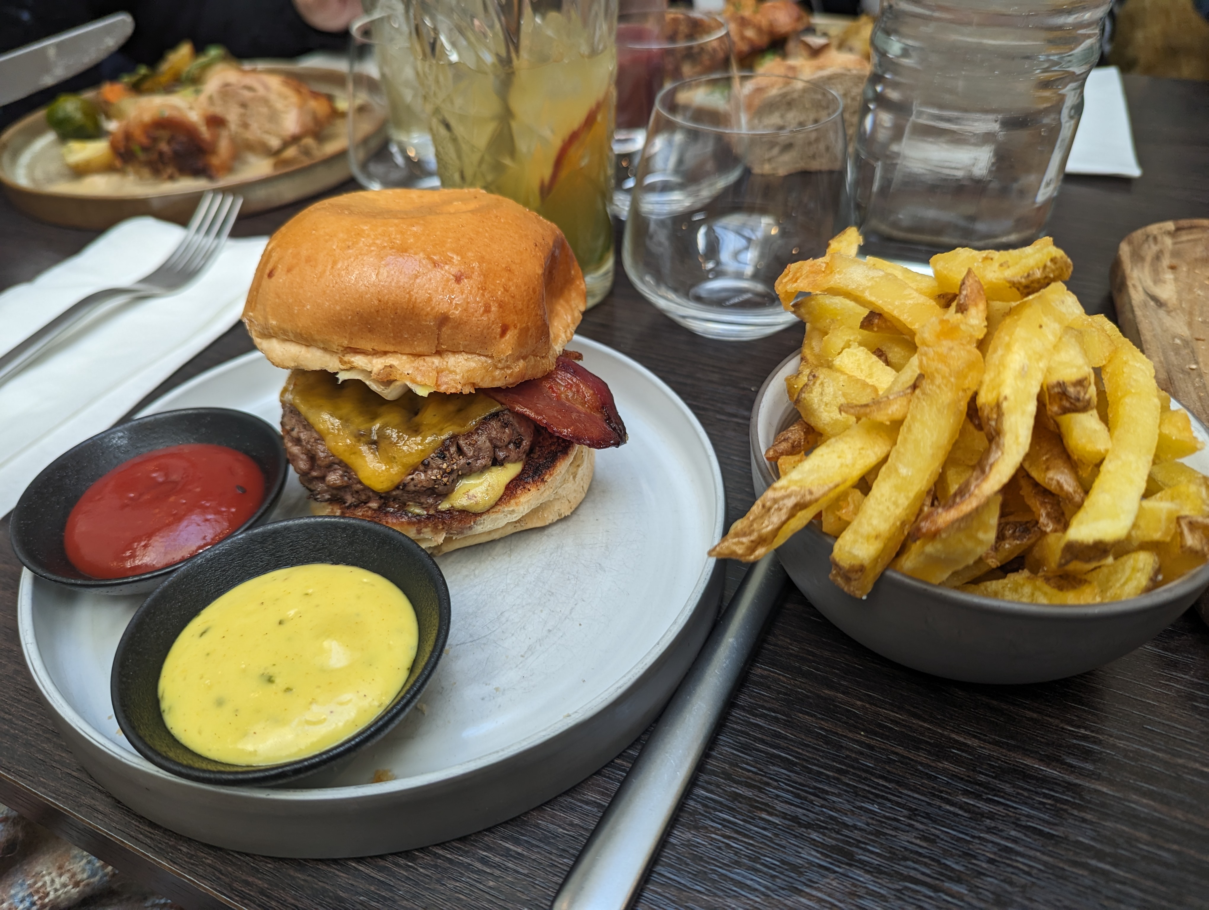 Equipe extremement agreable et disponible. Decor et bonne ambiance dans le restaurant, pas trop de bruit. Les plats sont bons, mais personnellement (comme discute avec le proprietaire) je pense qu'ils pourraient etre d'avantage travailles pour le prix. Mention tres speciale pour le riz au lait et caramel beurre sale qui melange textures et saveurs parfaitement (manque peut-etre un peu de vanille). Un delice. Apres au niveau des plats: - Le Burger aurait gagne a etre avec un fromage avec plus d'affinage pour ne pas s'eclipser derriere la sauce et le bacon. Le bacon etait bien meilleur cette fois ci. - La ratatouille et son supreme de volaille etaient ok mais sans plus, je pense que les legumes auraient merite un peu plus d'herbe ou d'epices pour changer, et trancher avec la sauce du supreme. [PS] Suite a une premiere experience tres quelconque nous avons ete convies par les proprietaires a revenir pour se faire un autre avis plus en accord avec l'experience generale des commentaires. Je tiens a dire que c'est extremement rare ce soucis du client satisfait, donc un grand merci aux proprietaires.