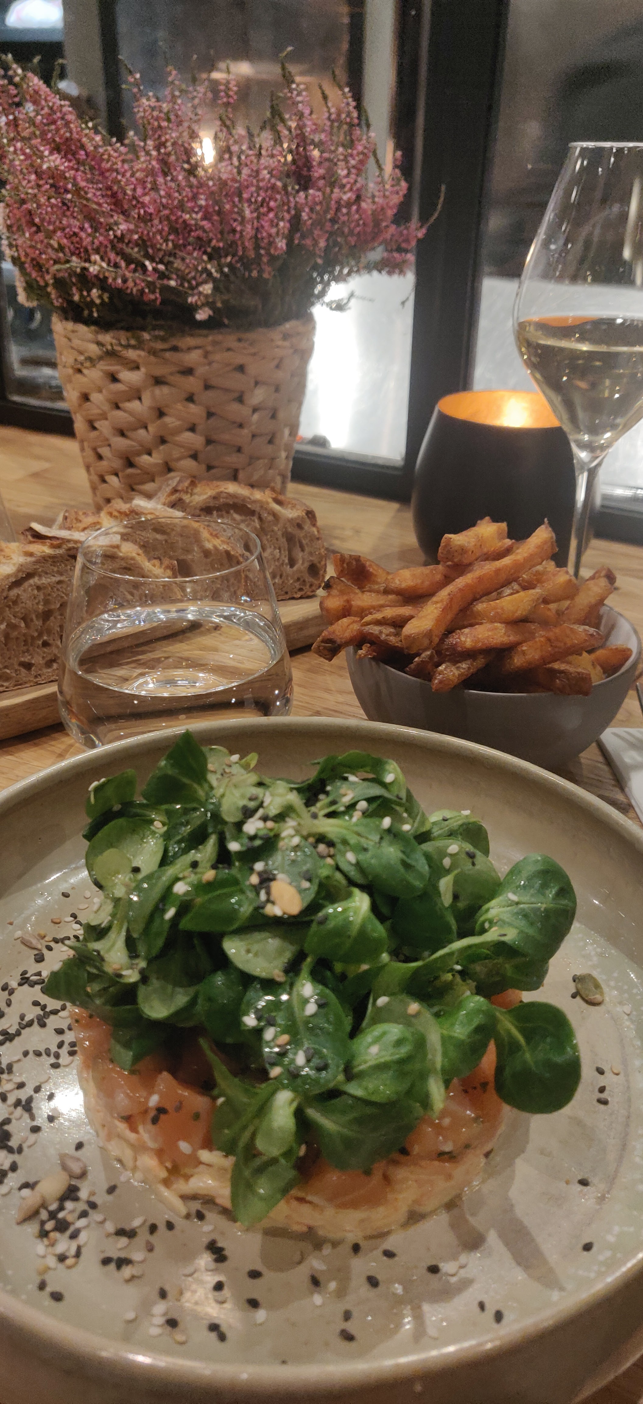 Restaurant qui propose des plats fait maison : vraiment très bons. (Léger bémol : le plat du jour était de la cuisse de poulet fermière pas facile à découper car pas les parties les plus tendres). La purée était superbe, les quelques carottes et la sauce aussi, la salade avocat/saumon excellente. Nous n'avons pas pris de dessert. A l'intérieur c'est joli, visuellement les plats sont beaux aussi. Les prix reflètent la tendance (voir même ailleurs à ces prix les plats ne sont pas aussi bons). Excellent pain d'un meilleur ouvrier de France ! Sincèrement un super lieu. J'y retournerai !