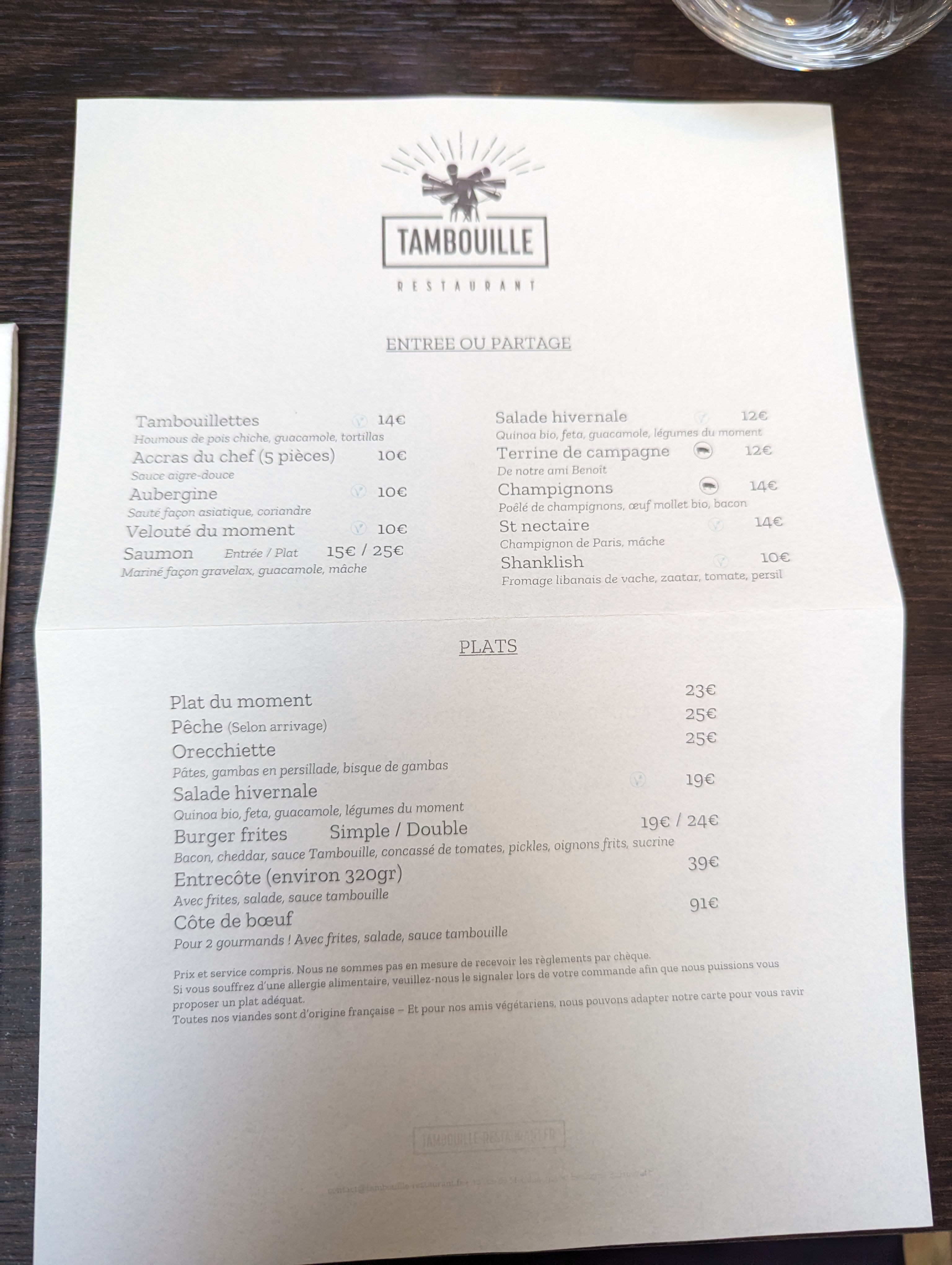 Accueil chaleureux cuisine excellente, succulente. C’est beau, on mange autant avec les yeux qu’avec la bouche Merci Michele et Pierre Merci à toute l’équipe Merci Tambouille !