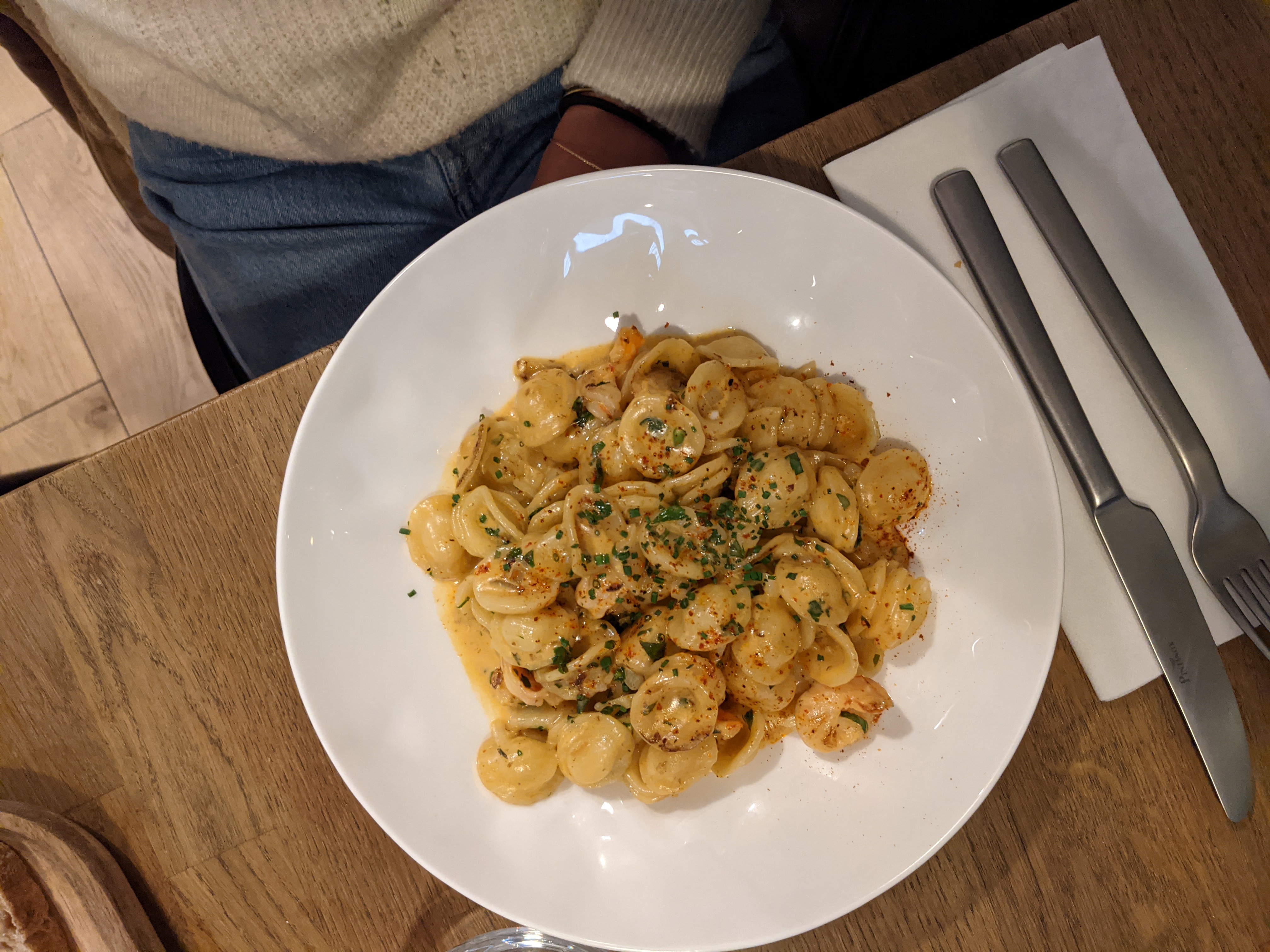 C'était franchement trop bon ! Il n'y a pas un choix de malade, et c est la première fois que j y vais. J ai pris les pâtes aux crevettes sauce bisque. C'était excellent et faut dire que je suis ultra difficile. C'est un chouïa trop cher surtout si on veut manger du bœuf. Le prix des pates est correct. L'accueil, le service la vaisselle est tout etait parfait. J'y reviendrai. Merci beaucoup ! Moi qui n aime plus trop me déplacer au resto car je cuisine beaucoup maison et que je suis assez souvent déçue au resto, c est une belle surprise