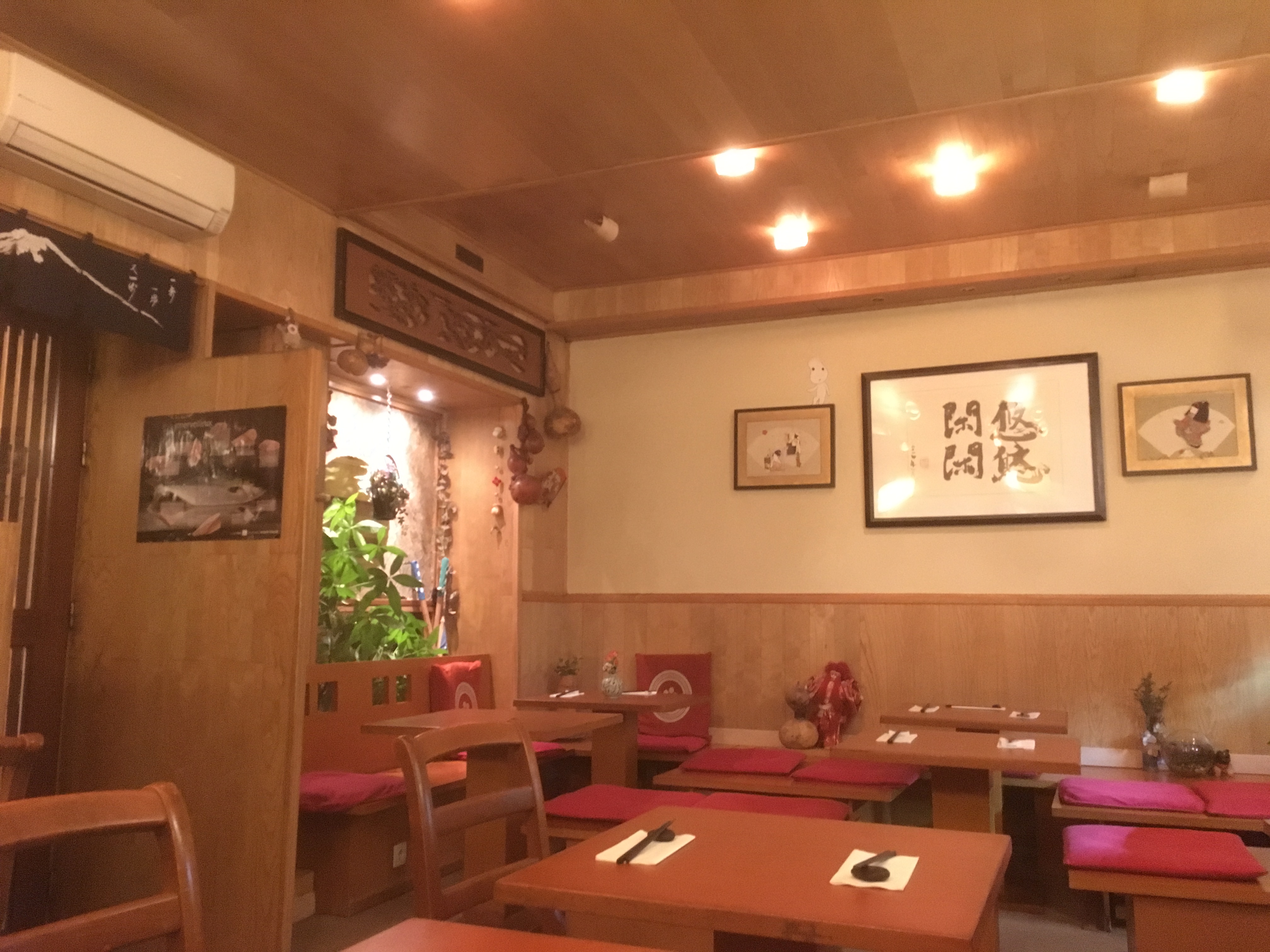 Petit restaurant (10 tables), cadre typiquement japonais et bon accueil. Carte proposant des plats et formules qu’on a l’habitude de retrouver à des prix un peu plus élevés mais avec une qualité parfaite des ingrédients choisis et en particulier du poisson. Très bon restaurant.