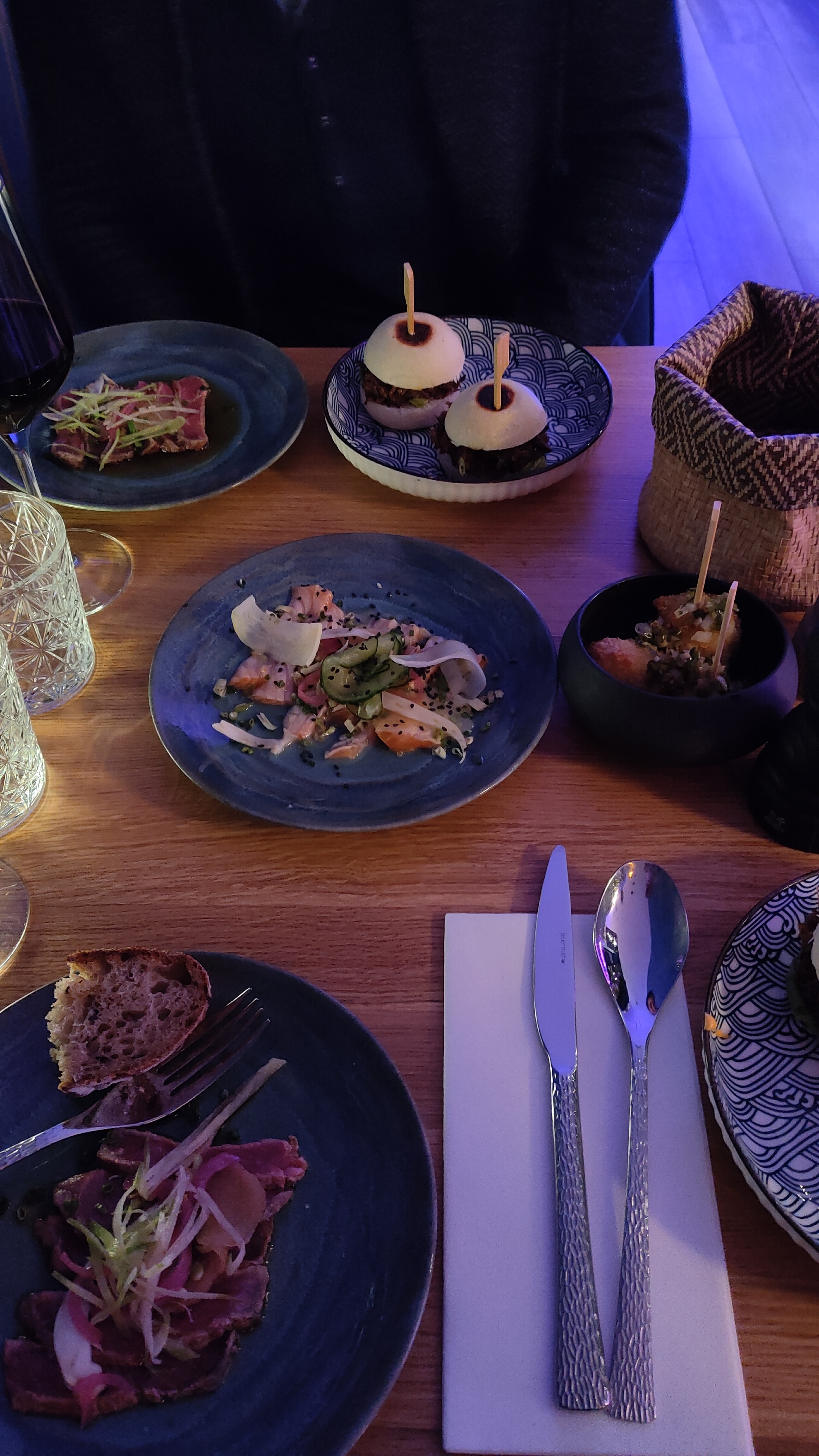 Un excellent déjeuner ce samedi midi, pleins de saveurs et de finesse ! Tom Kha en espuma, Aubergines miso, gyozas au boeuf, sashimi de saumon à la flamme, échine aux épices façon tonkaksu, bar sauce jalapeño... Magie et évasion dans l'assiette, merci aux chefs je me suis ré-ga-lée ! Le petit plus : une jolie décoration cosy et feutrée