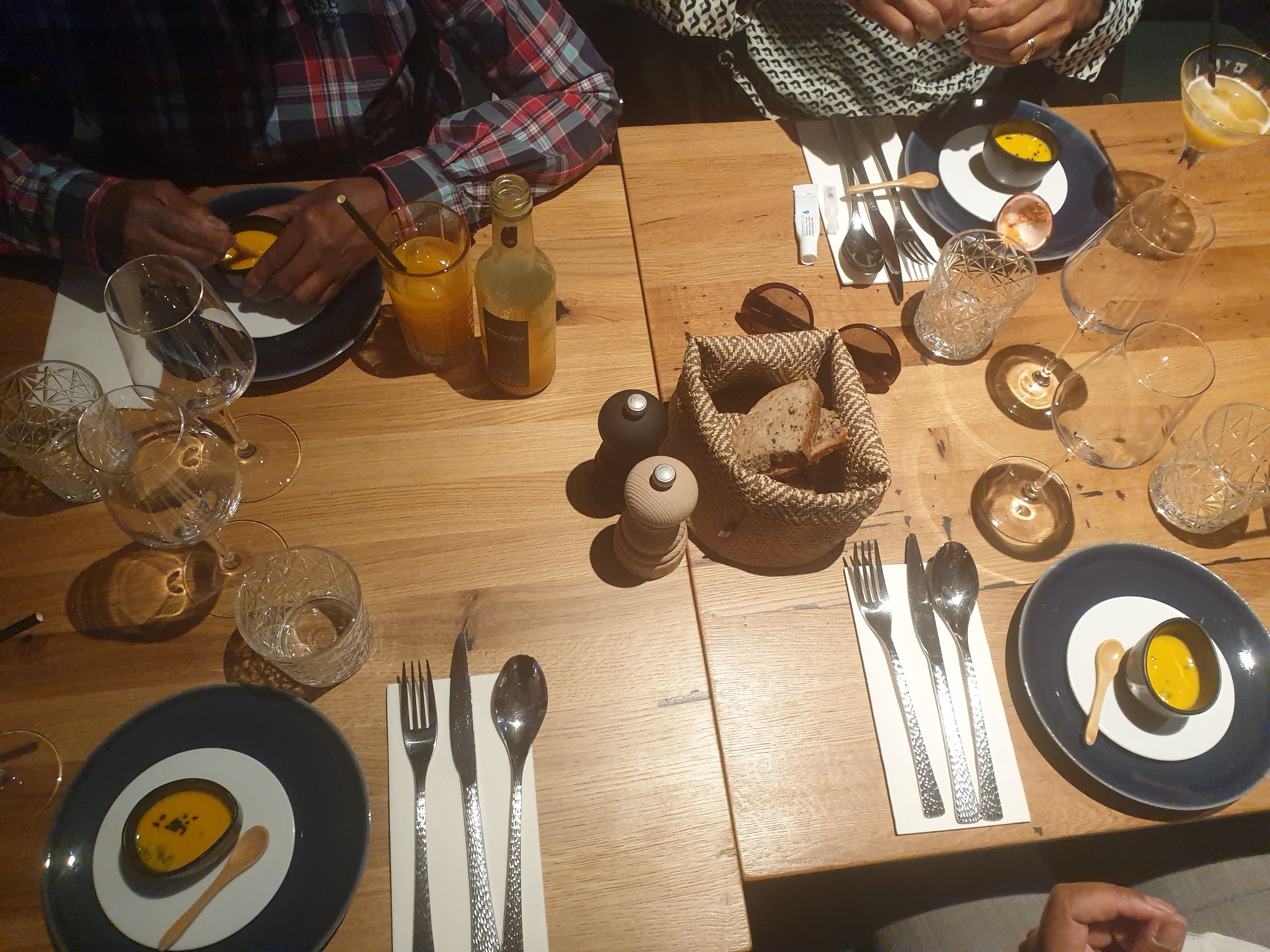 grande déception :/ un restaurant très bruyant ! il fait très froid impossible de se réchauffer. un rythme dans le service bcp trop long compensé par du gavage de pain. je ne suis pas prête de remettre les pieds dans cet établissement.