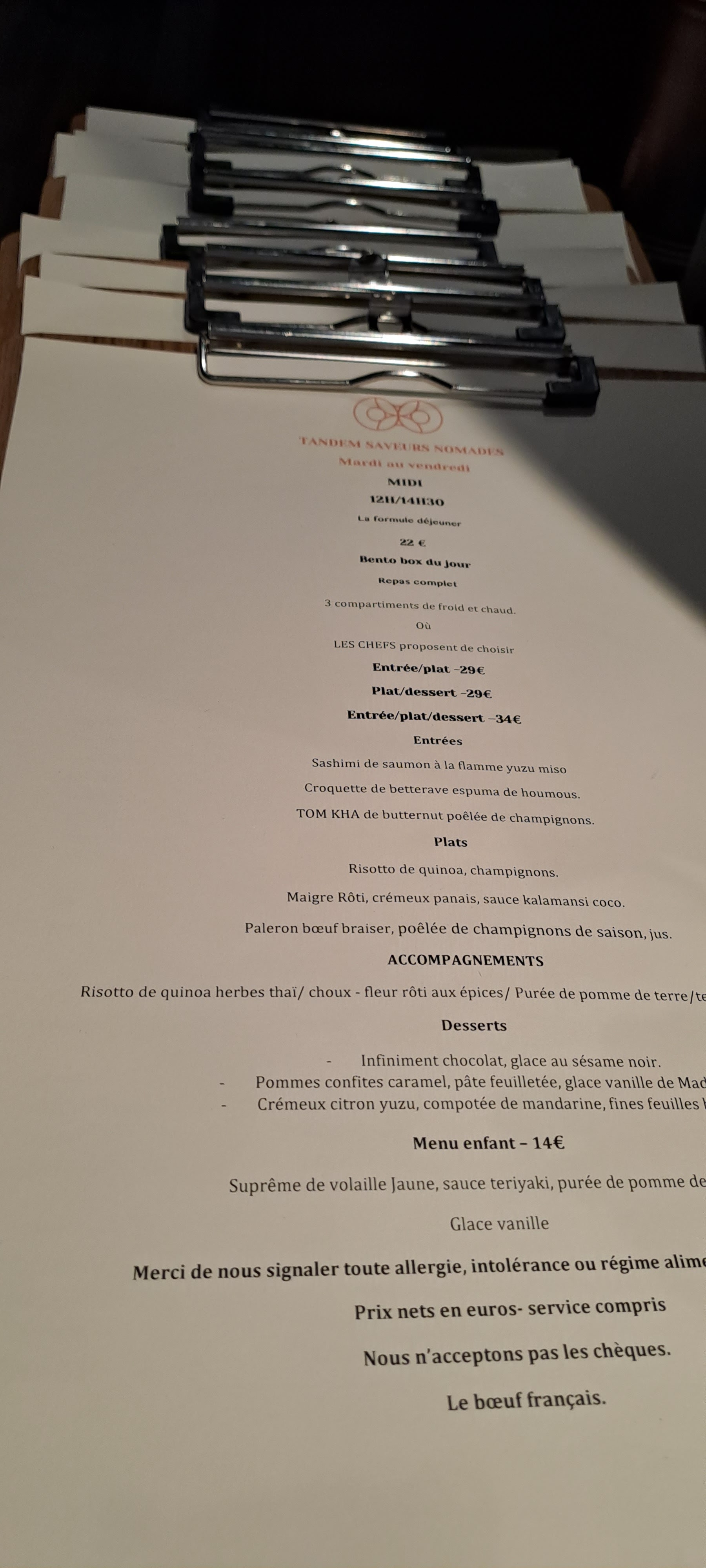 Nous avons adoré notre dîner au Tandem Saveurs Nomades - la cuisine, l'ambiance, l'hospitalité - tout était là ! Un ENORME MERCI aux Chefs, on reviendra !!!