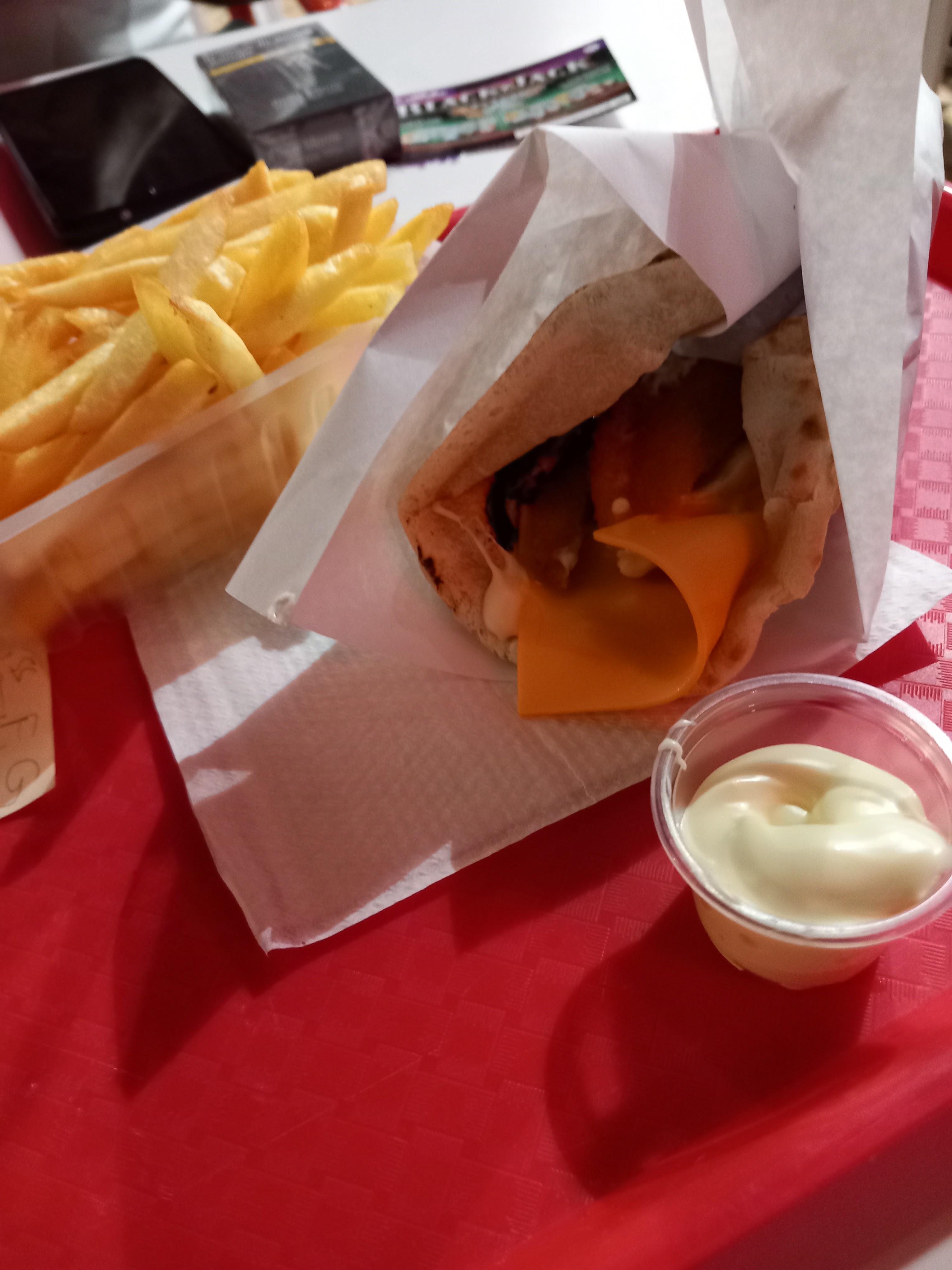 Lieu insolite par sa salle en sous-sol. Très bonne qualité de Kebab et frites.