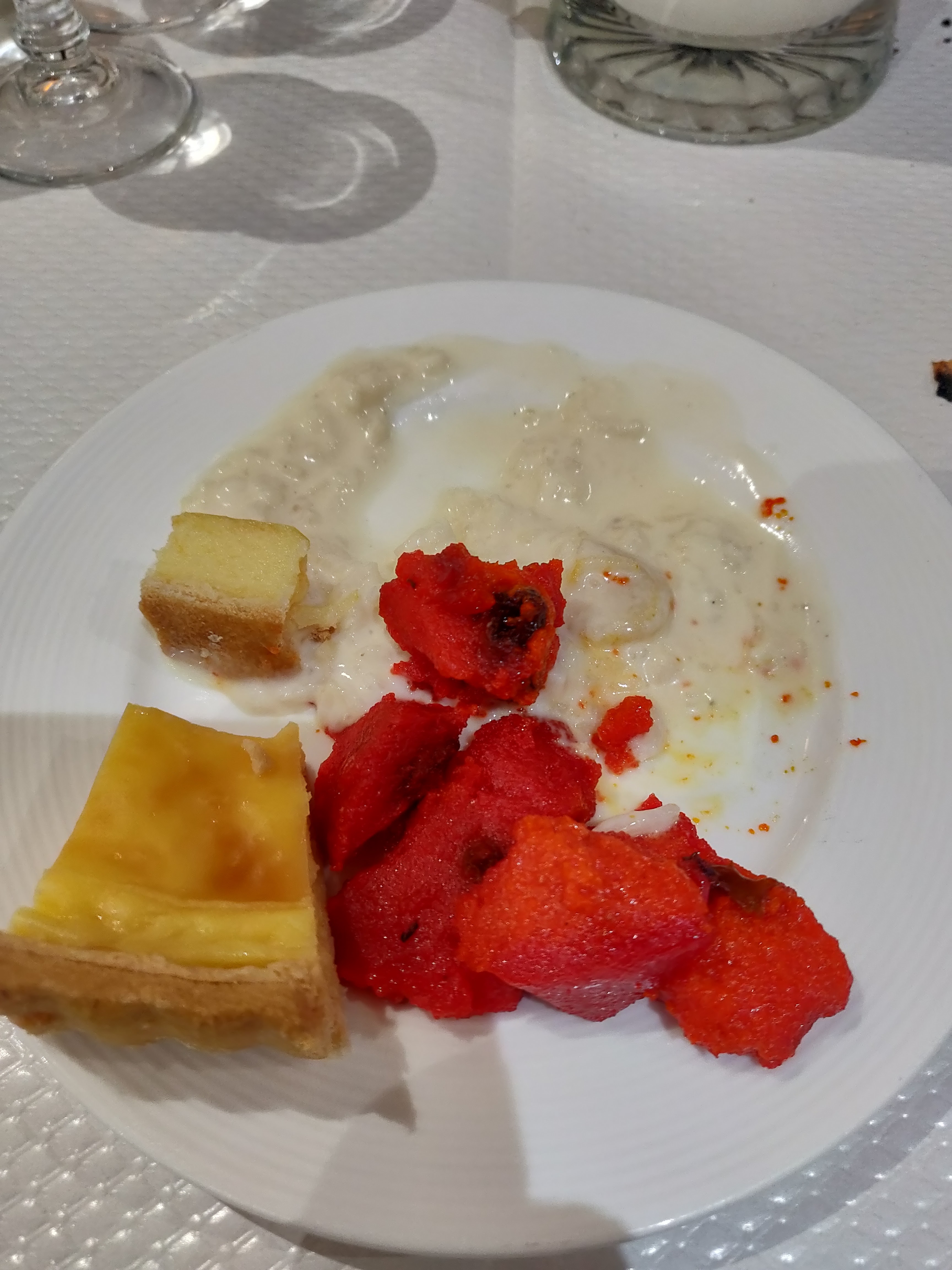 Ben y'a pas trop de choix et le dessert pas grand choses , salade de fruits en conserve ,riz au lait , j'ai pas vu de flan , et pas trop intimité trop serrer , pas le temps de digérer il faut laisser la place au autre clients, pour un buffet a volanté c très limité.
