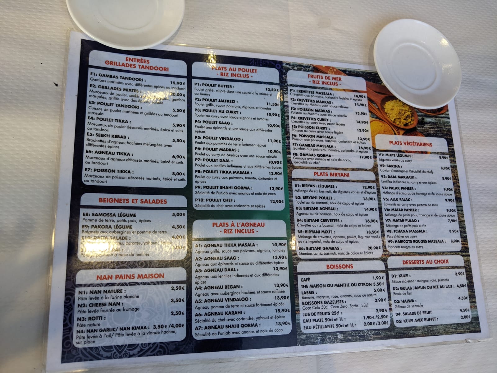 Nous avons essayé ce restaurant ce dimanche midi. C'était calme pour notre plus grand plaisir. L'accueil est super agréable. Nous avons opté pour la formule à volonté. C'était bon. Néanmoins je regrette l'absence du butter chicken qui reste un incontournable pour nous de la cuisine indienne. Il faut aussi préciser que le menu a volonté du dimanche midi est à 15e et non pas 13.90e Nous reviendrons sûrement .