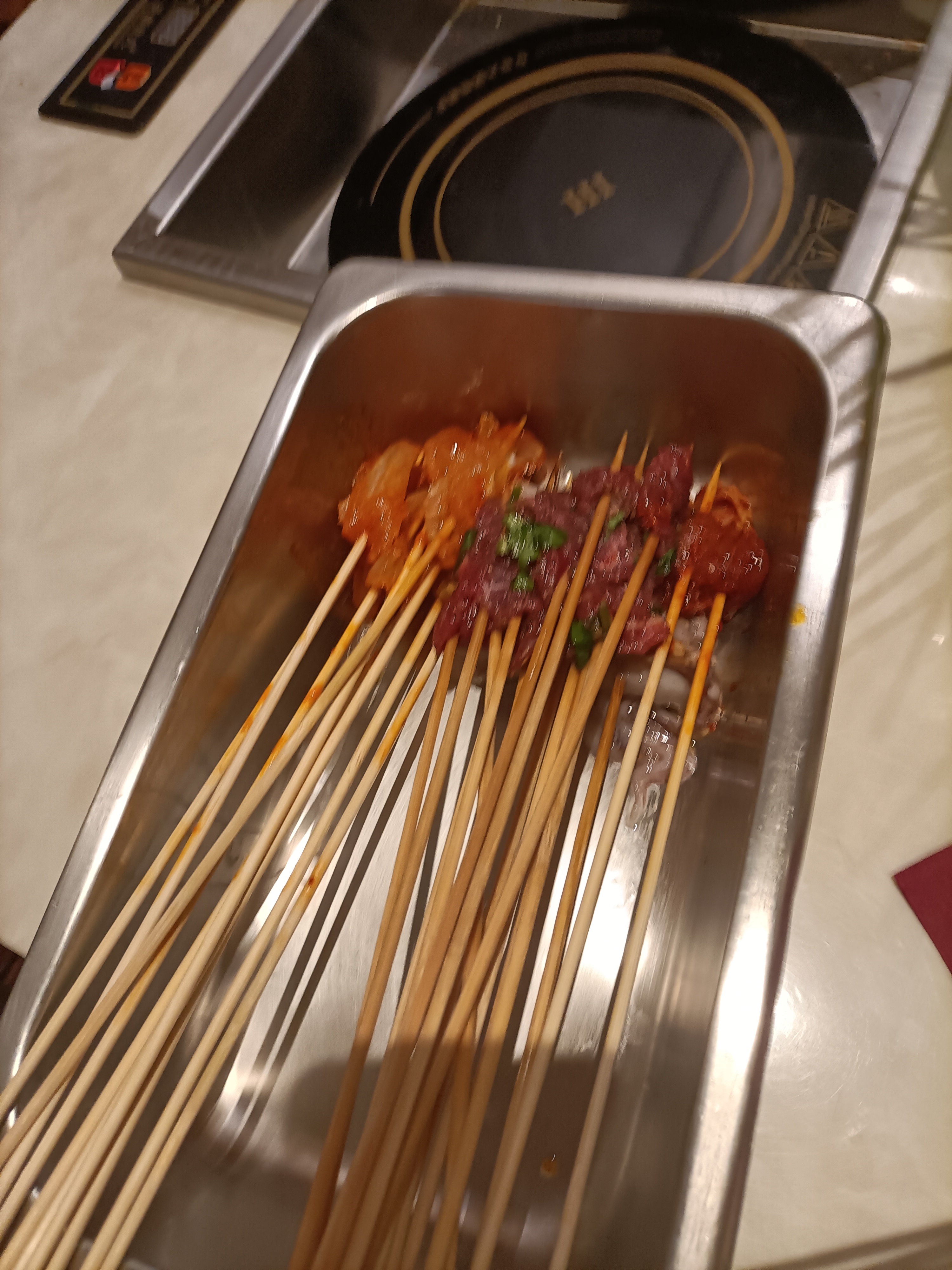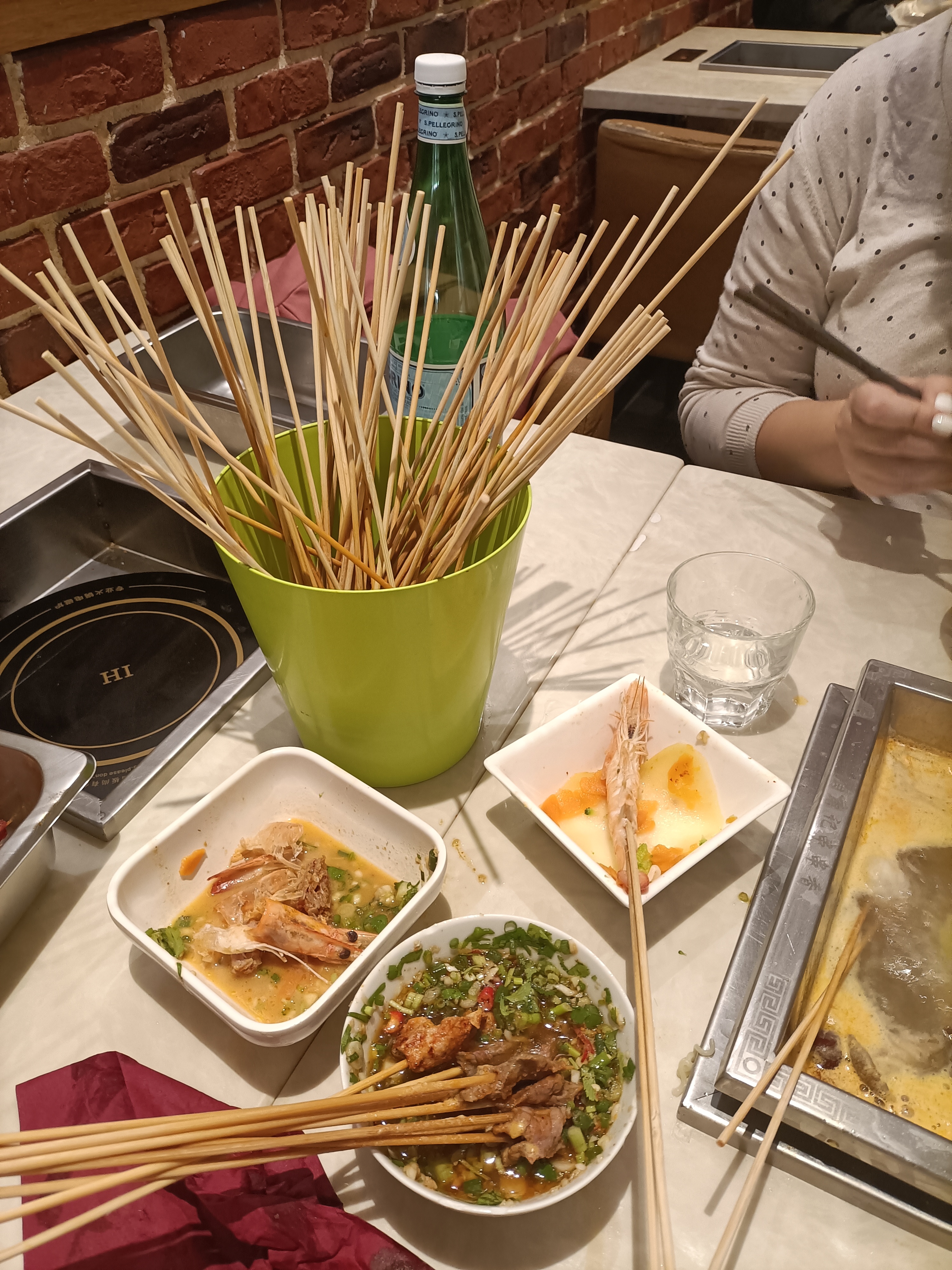 Petit resto style fondue chinoise de Sichuan mais au concept particulier : tout est servi sous forme de brochettes (0.30cts/pc) à récupérer en self service. À savoir que si vous êtes bon mangeur, vous allez payer assez cher pour ce que c'est, nous en avons eu pour 45€/personne.. Le choix en brochettes est assez restreint et forcément pour 0.30cts, la quantité par brochette est assez minuscule. Mention spéciale pour leur base de bouillon pimentée faite maison : vraiment très bonne et authentique. Y aller pour tester ce concept mais les autres restos de fondues traditionnelles restent quand même plus sympa (et surtout pour votre portefeuille)
