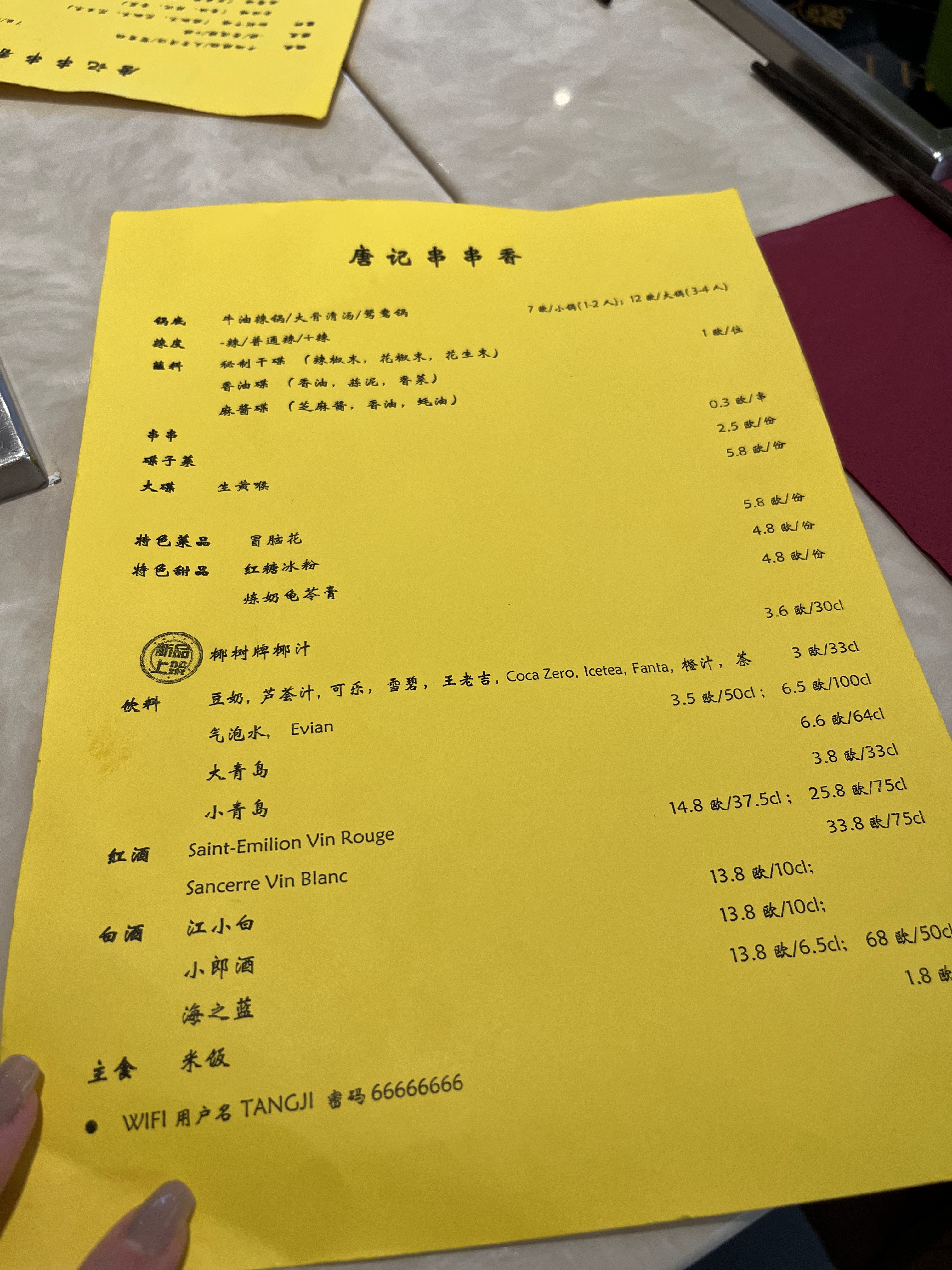 La nourriture était correcte, j'étais un peu contrarié de ne pas avoir beaucoup d'options de viande de porc, mais le chuanchuan que nous avons essayé était très bon. La base de soupe était également bonne. J'ai aussi commandé comme boisson un lait de soja qui est si difficile à trouver à Paris et cela m'a fait très plaisir :-)) Le personnel était gentil et parlait chinois, et l'environnement ressemblait à un très bon restaurant familial avec un personnel passionné et poli. S’il y a une chose sur laquelle je dois m’arrêter, ce sera la taille des portions et les prix. Chaque chuanchuan portait un minuscule morceau de viande et pour le calmar, un seul tentacule. Les prix s’élevaient à 30 euros par personne même si nous n’avions pas mangé autant que nous aurions pu si nous étions affamés avant le dîner. Dans l’ensemble, c’est une bonne expérience mais elle ne reviendra peut-être pas en raison du prix abordable de la nourriture ici.