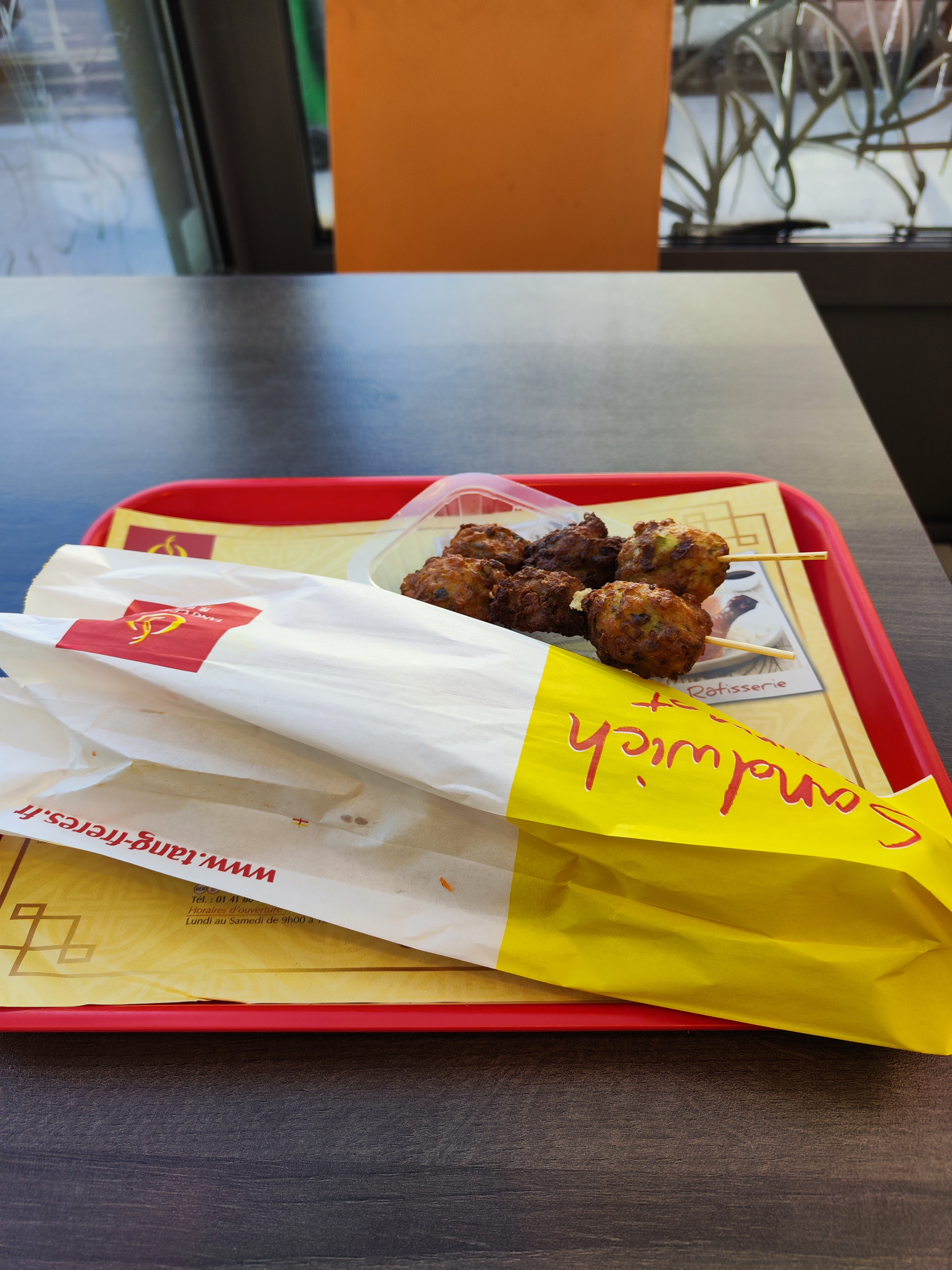 Service rapide. Le sandwich gourmet est très bon et bien garni, un bon rapport qualité prix. Les brochettes de boulettes de poulet sont pas mal mais je ne recommande pas.