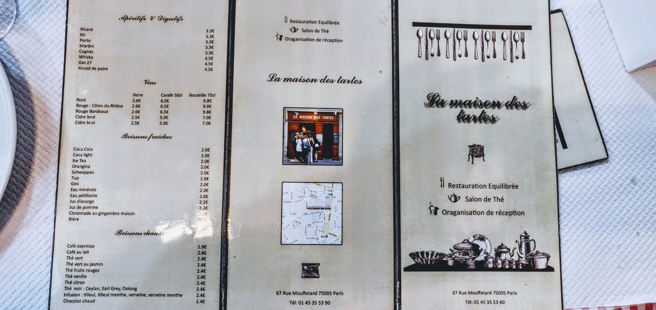 Petite adresse sympatique au coeur de la rue Mouffetard... Le dimanche, la fermeture au voiture vous fait profiter pleinement de l'endroit. Des tartes variées, salées et sucrées très surprenantes. Un accueil simple et très sympatique.