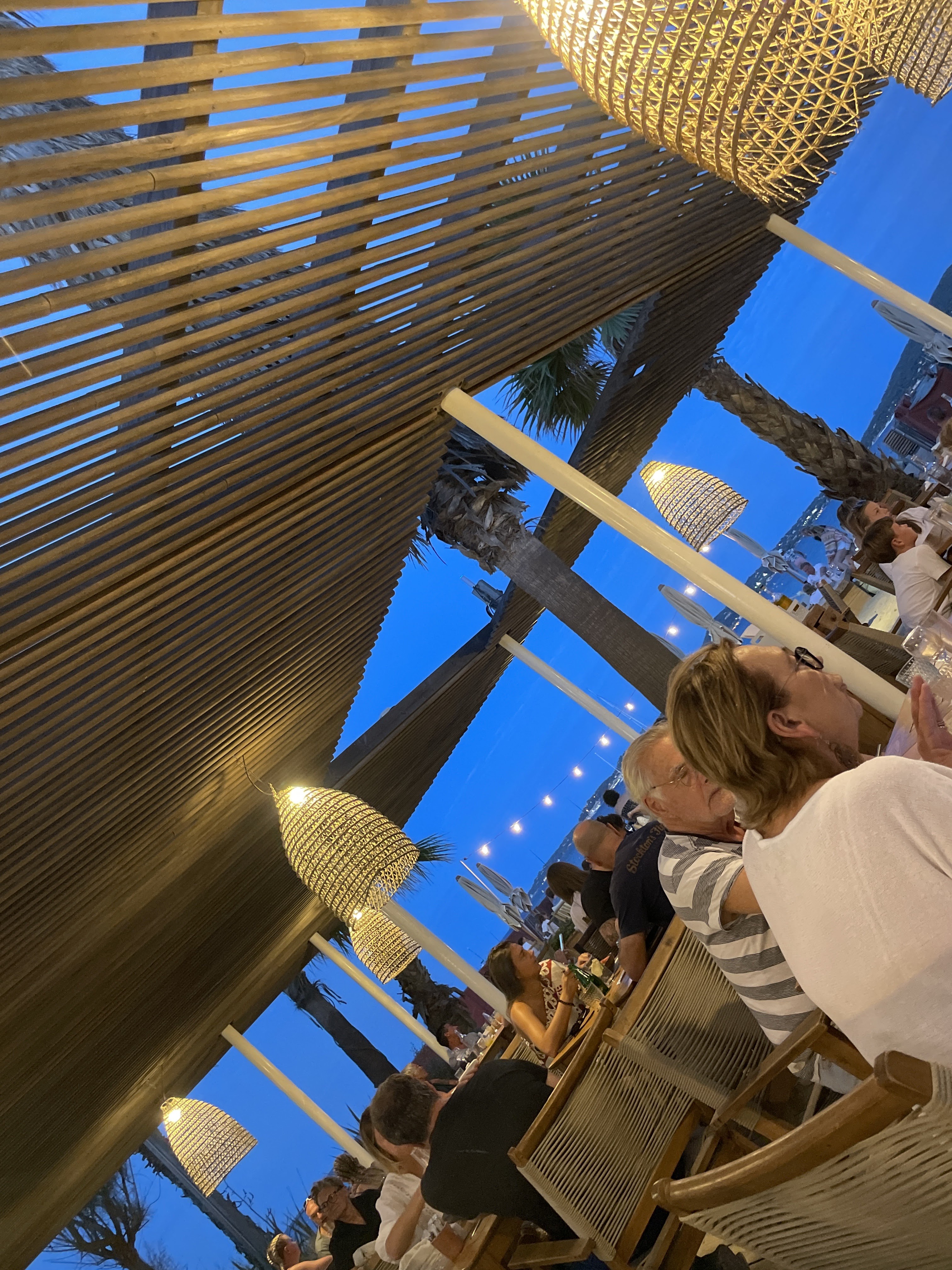 Très belle terrasse sur la plage avec vue sur saint tropez , le service est rapide ,les plats originaux avec une pointe de goût asiatique et le personnel dont Enza très sympathique . A retenir .