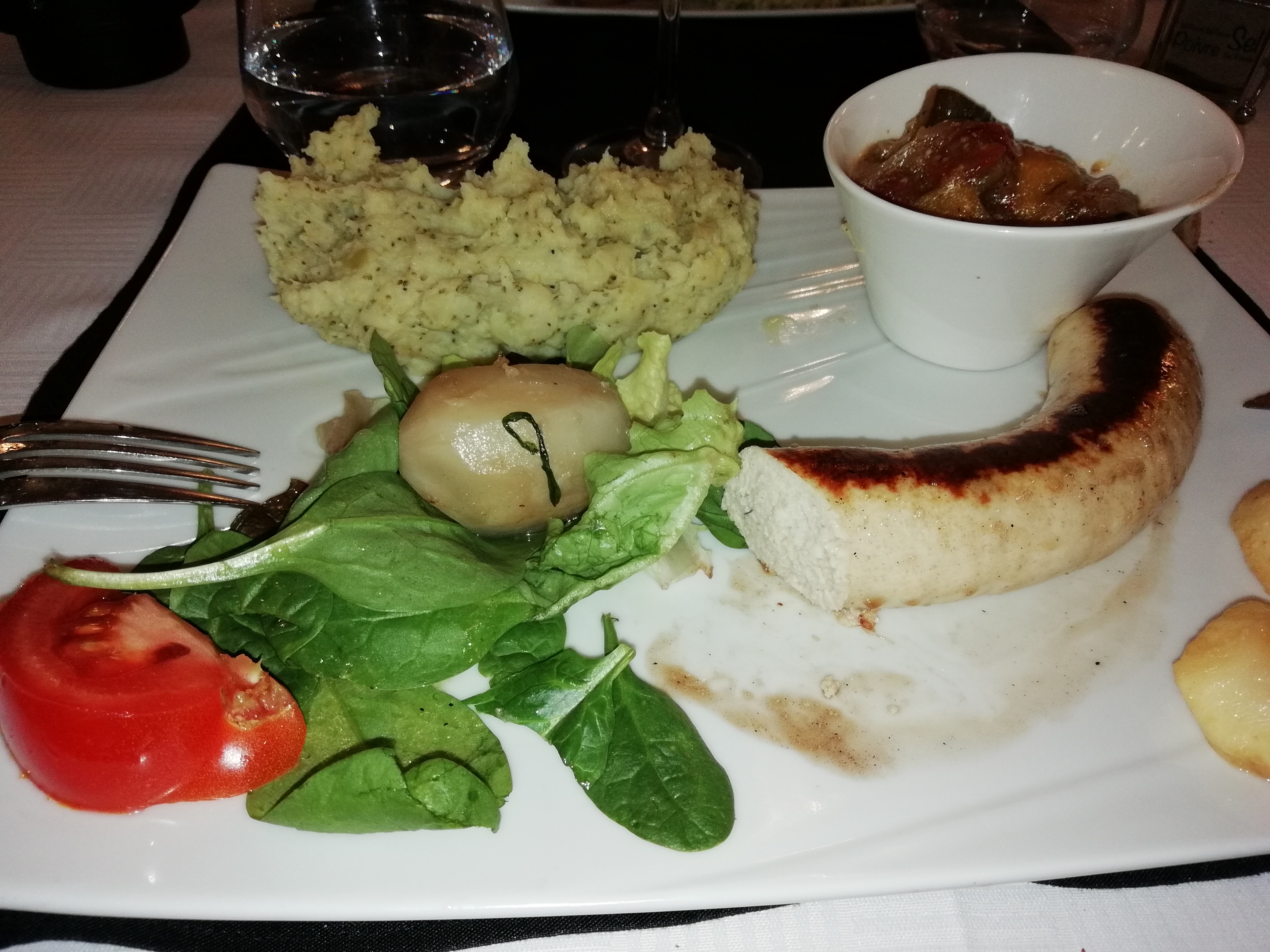 Dommage plat servi tiède, boudin puree posée comme ça dans l'assiette repas que l'on fait chez soit et à bonne température trop cher pour ce repas très jolie salle