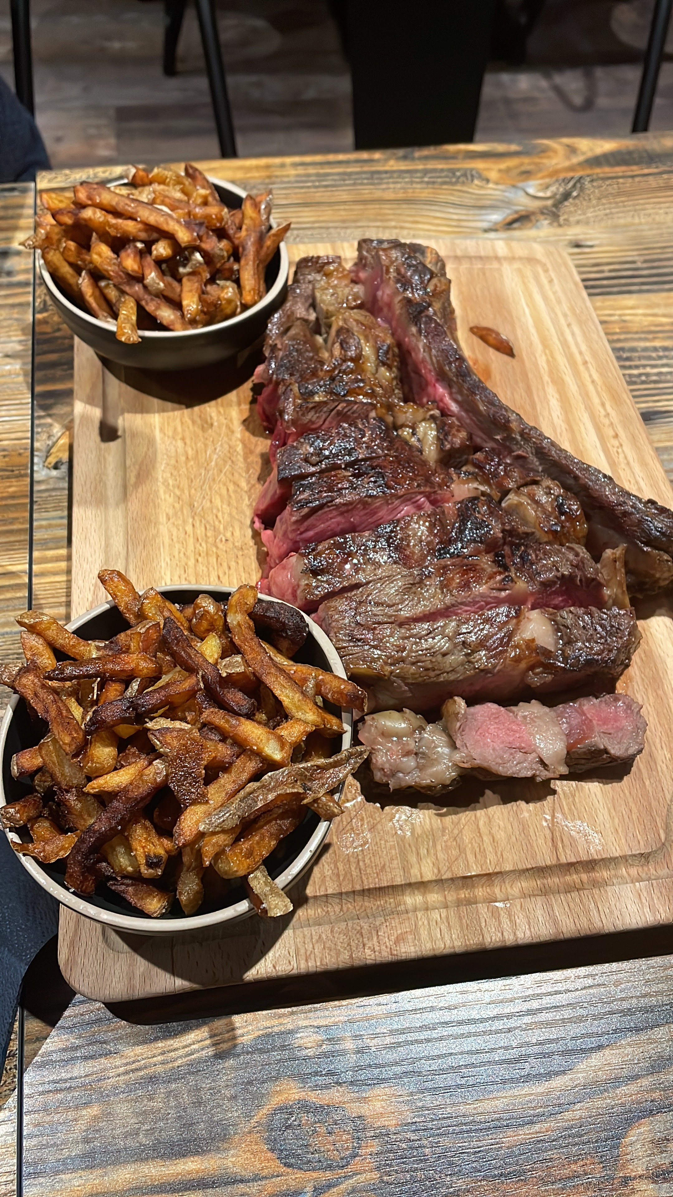 Côté de boeuf galice excellente! Un régal... Lieu très chaleureux et cosy. Personnels au top! De la cuisine à l'assiette jusqu'au verre de vin une pépite! Allez-y les yeux fermés mais surtout allez- y! Vous ne regretterez pas. Belle découverte!