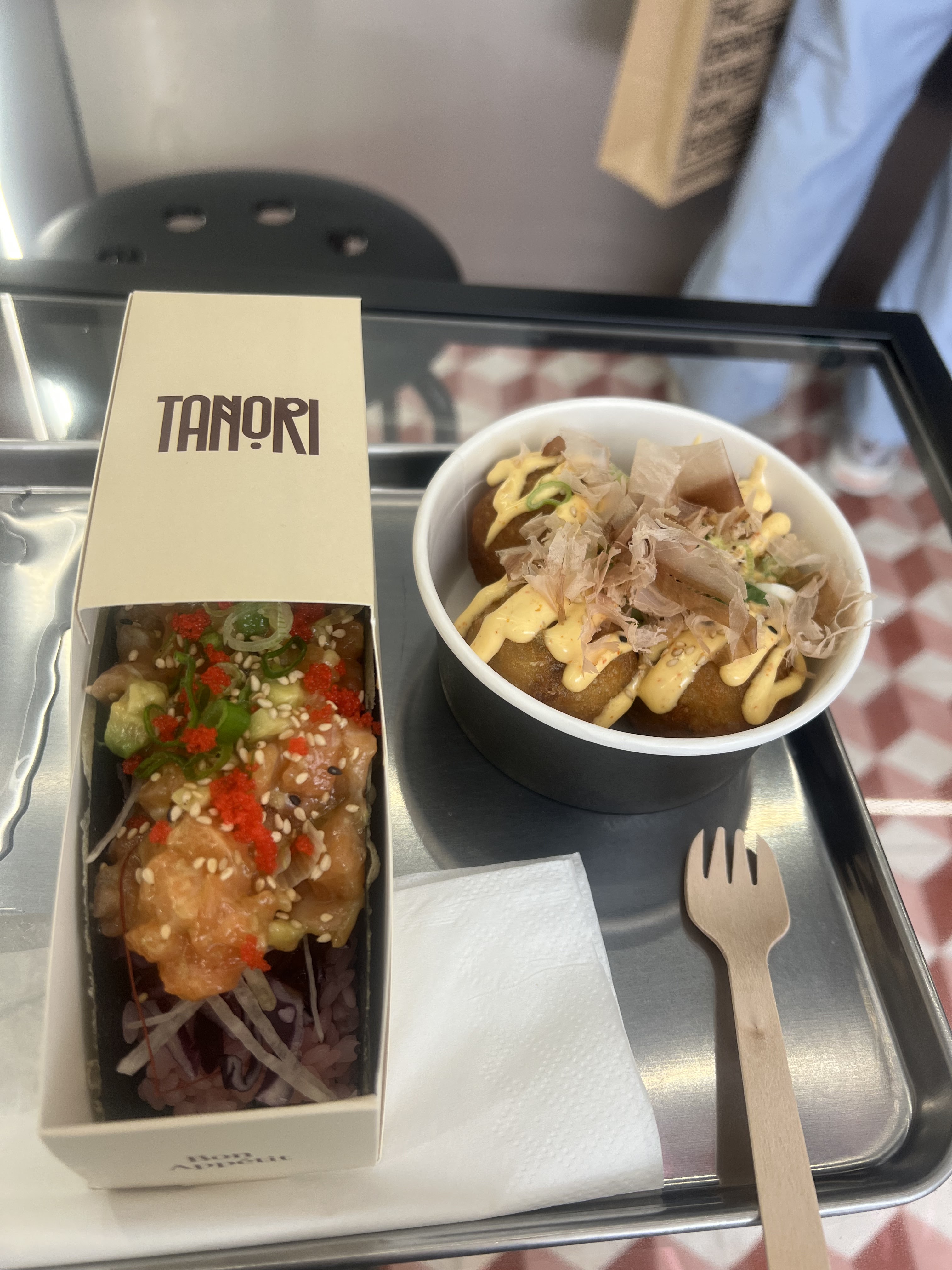 Bonne découverte, lieu sympathique et propre. Service rapide. J’ai pris à emporter, le sushi tacos était joliement décoré avec beaucoup de garniture. Takoyaki bon mais déjà mangé meilleur que ça. Pour le goût, je n’ai pas trop aimé, trop trop de sauce le riz et les crudités sont imbibés de sauce. Je n’ai pas pu terminer pas mangeable, le poulet au dessus était bon (j’ai terminé ca au moins) Prix du menu correct 👍. A testé ce nouveau concept au moins une fois.