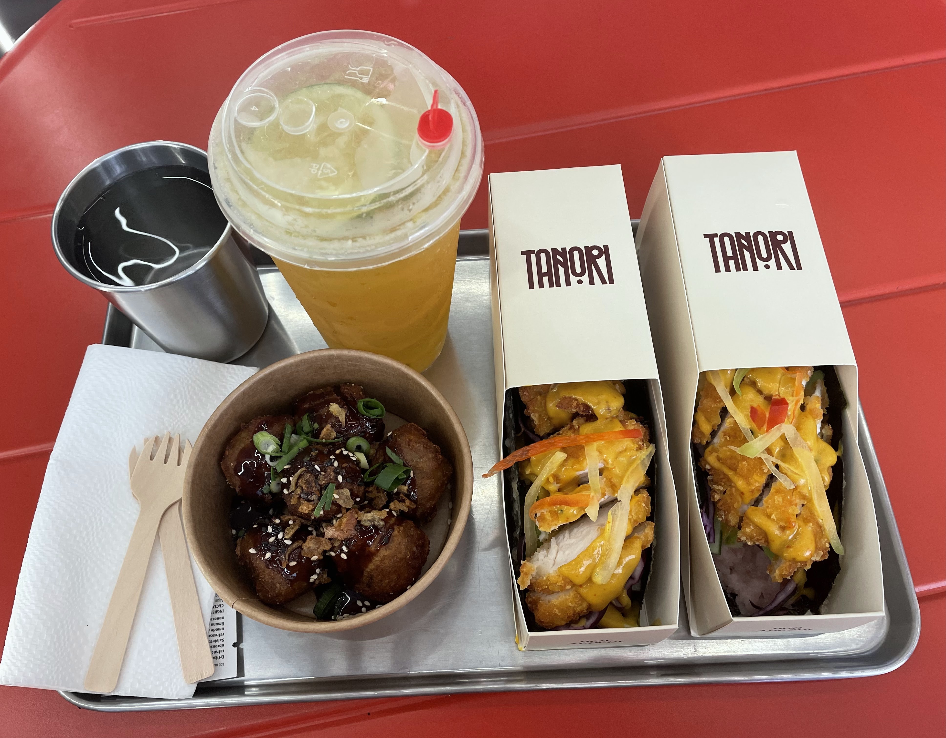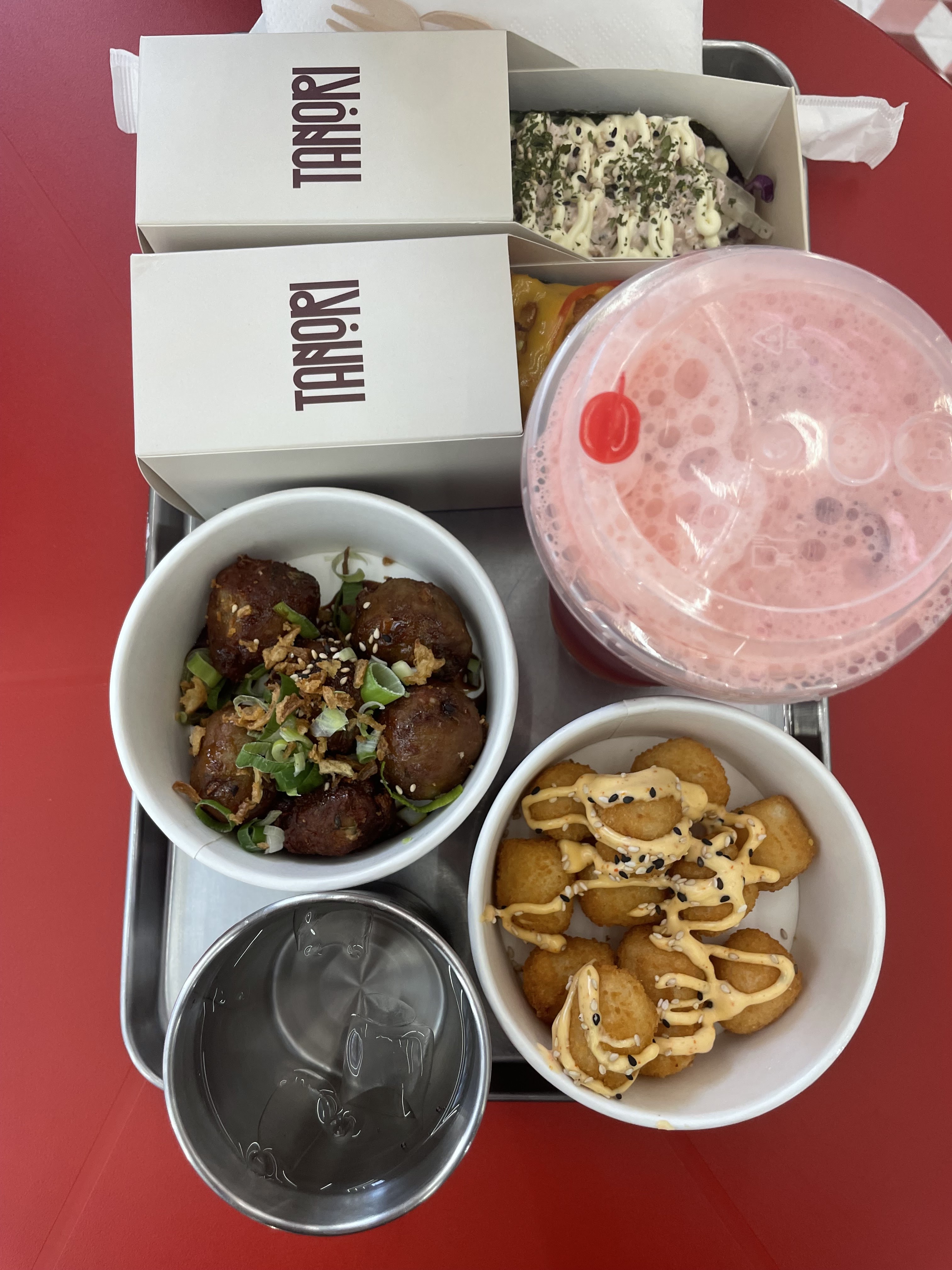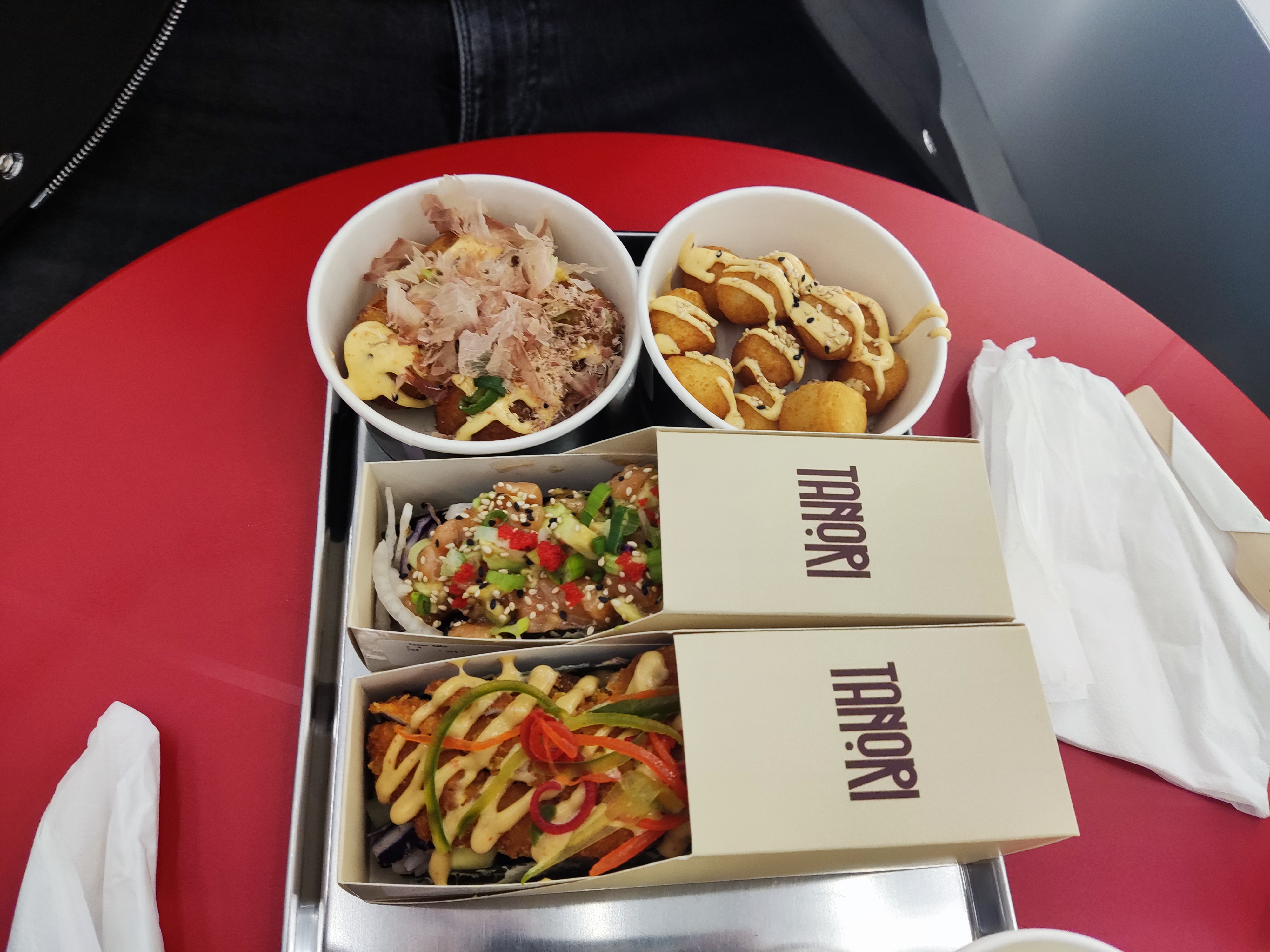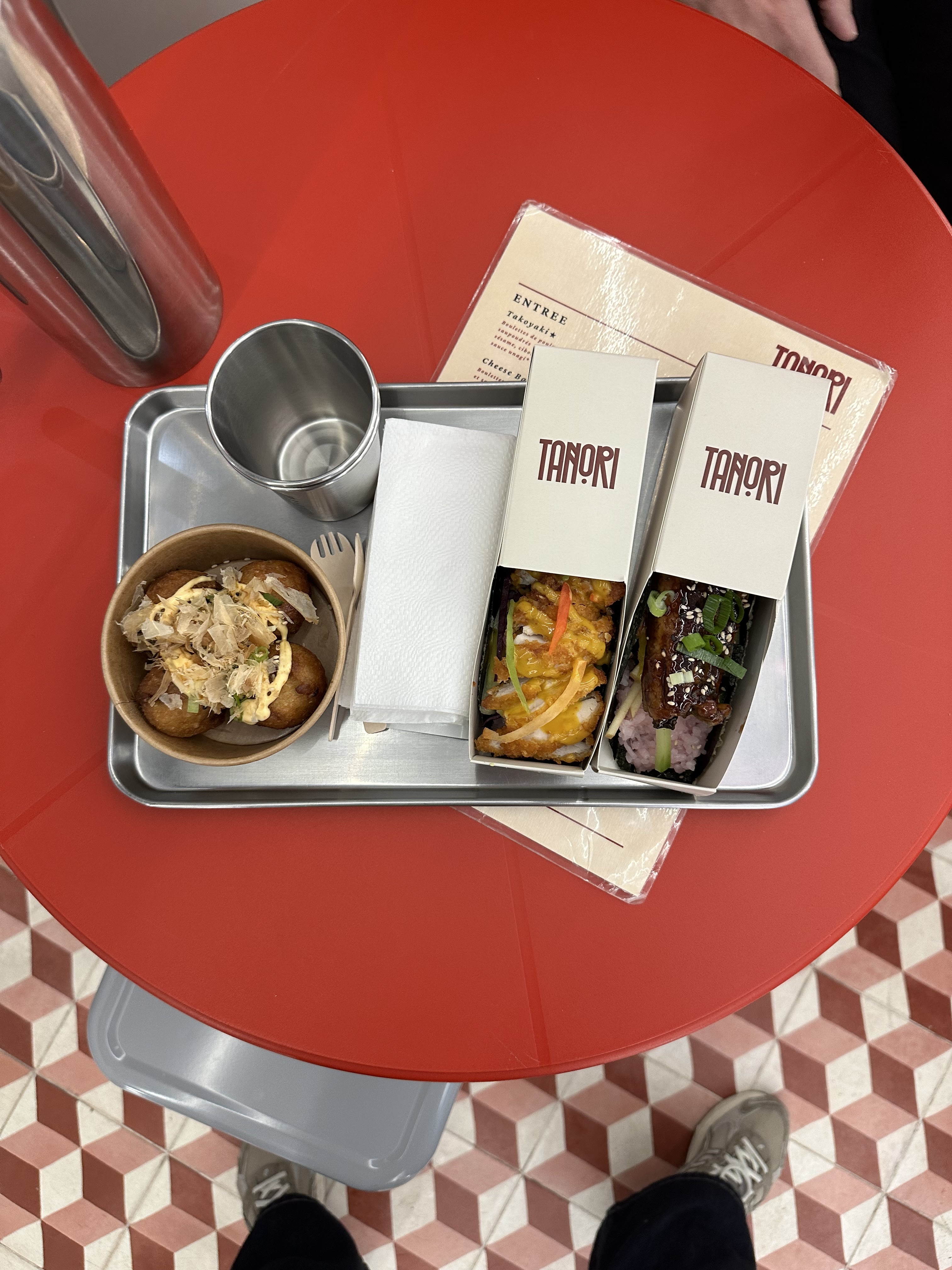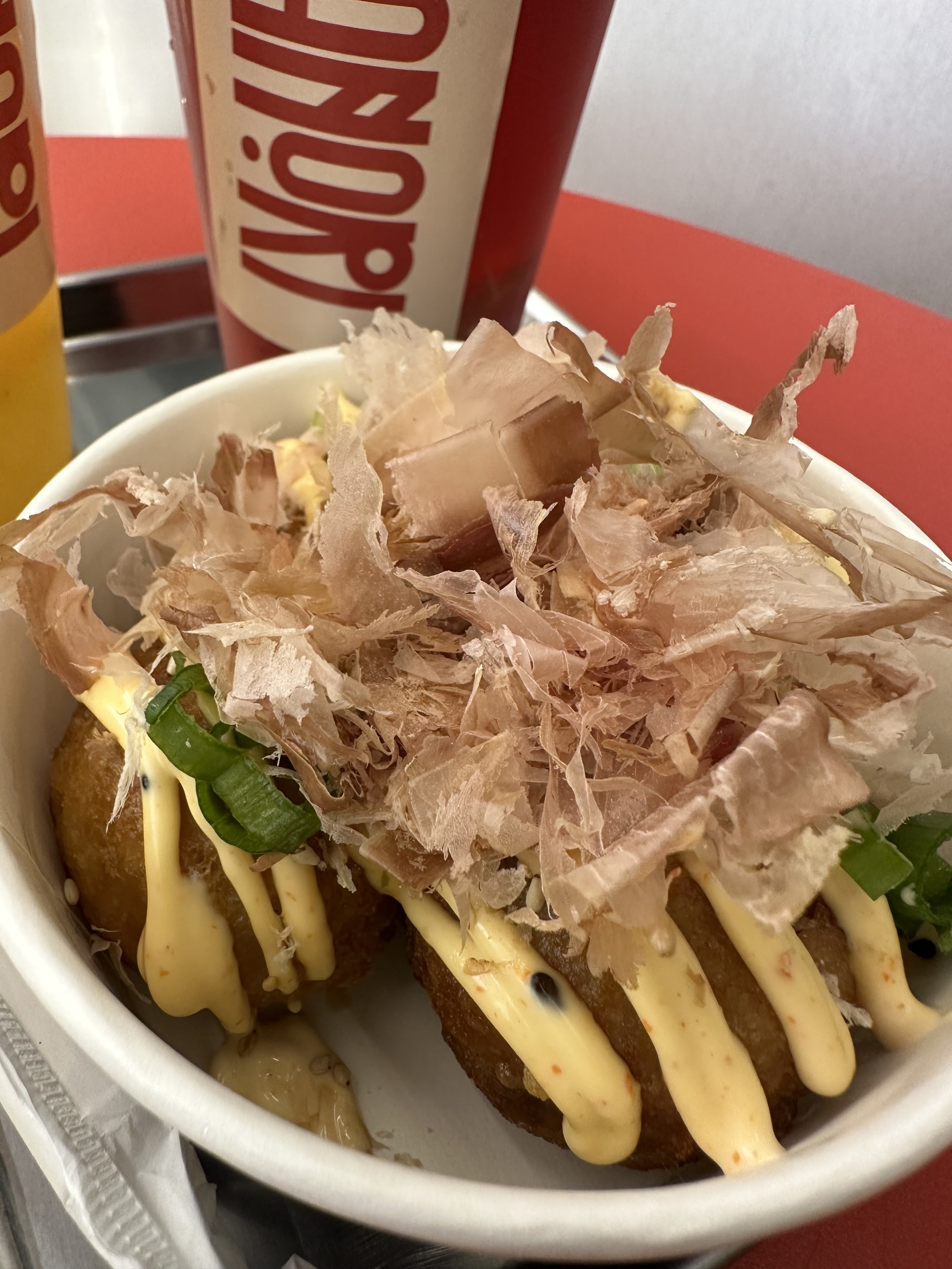 J'ai goûté leur takoyaki et leurs cheese balls: pour les takoyakis ça allait, le goût était pas trop mal. Par contre j'ai été déçu de leur cheese balls, je m'attendais à manger du bon emmental mais ça n'avait pas du tout le goût... Je goûterai peut être à leur tacosushi pour tester.