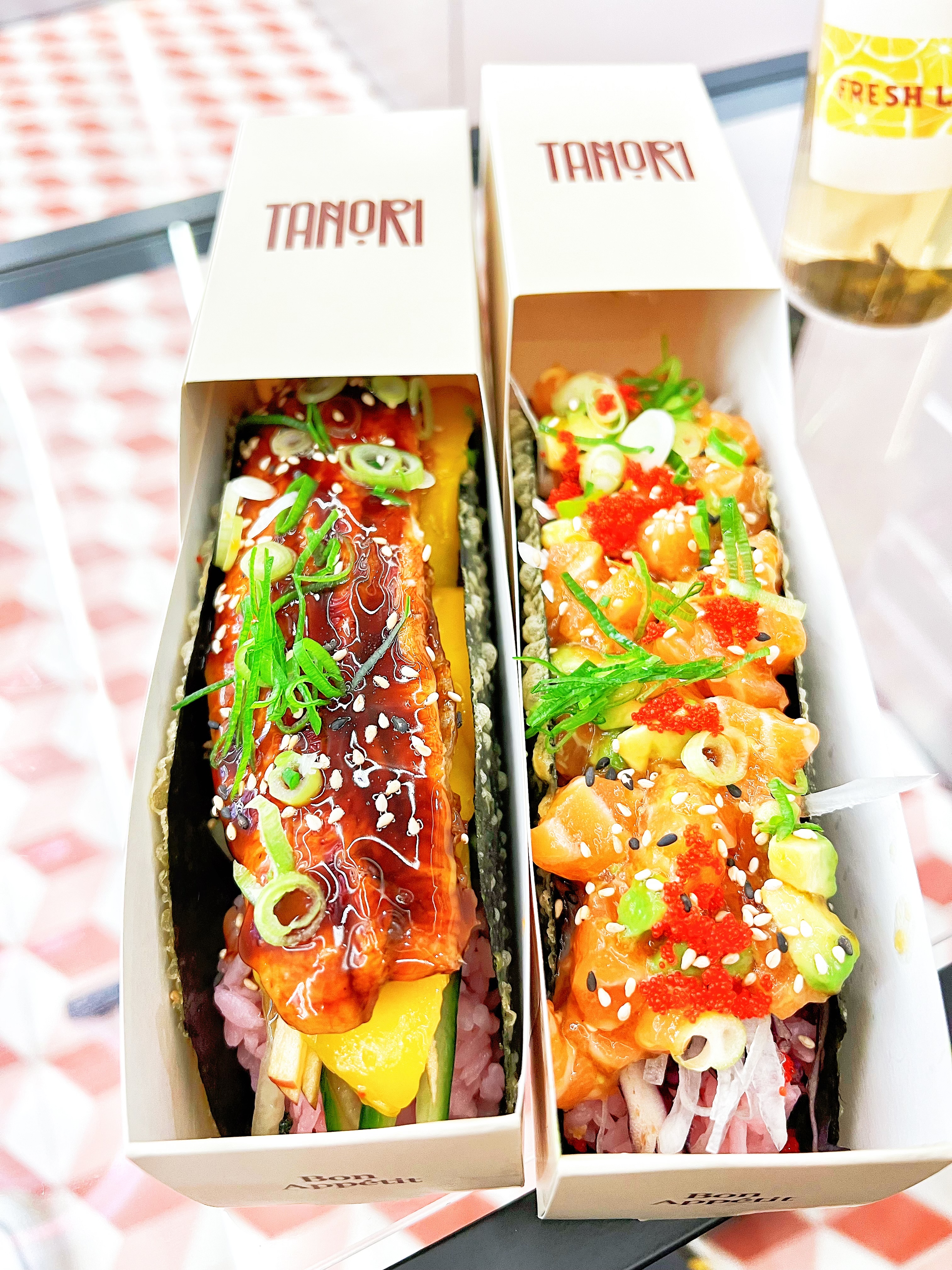Concept original et cuisine délicieuse, les sushis tacos très bien assaisonnés et très gourmands, la quantité est très bien aussi, même le packaging est chouette, je recommande !