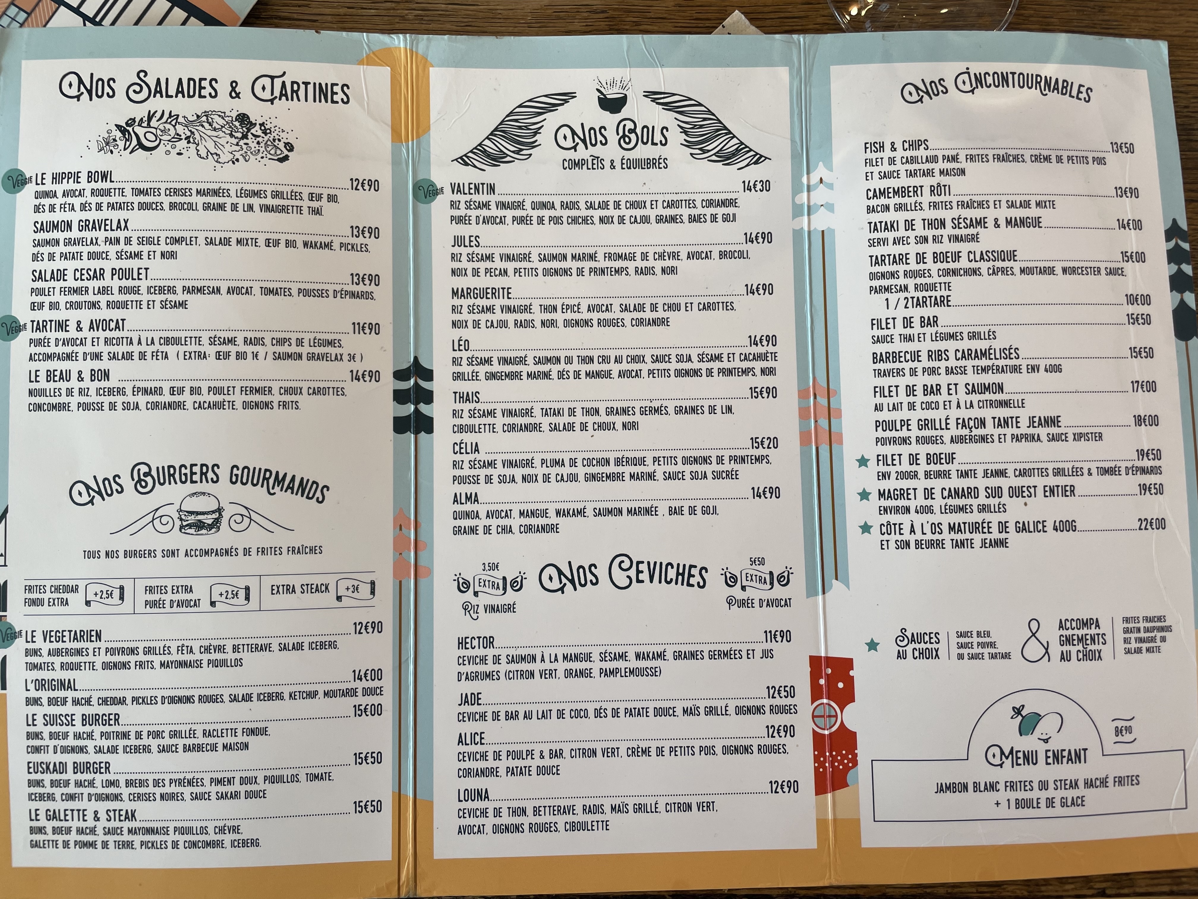 Comme souvent chez tante Jeanne on est jamais déçu. Accueil sympa, choix de la table et prise de commande rapide. Les plats sont toujours aussi bon même si notre serveur manquait de sourire 😉 mais bon on peut l'expliquer par une fin de saison proche. Je viens chaque année mais la carte ne change pas ça c'est vraiment dommage. On y retrouve toujours des burgers, bowls, cévichés et des plats incontournables. Cuisine simple mais très bonne et l'ambiance sur la terrasse est vraiment agréable. Les prix sont raisonnables. Je recommande.