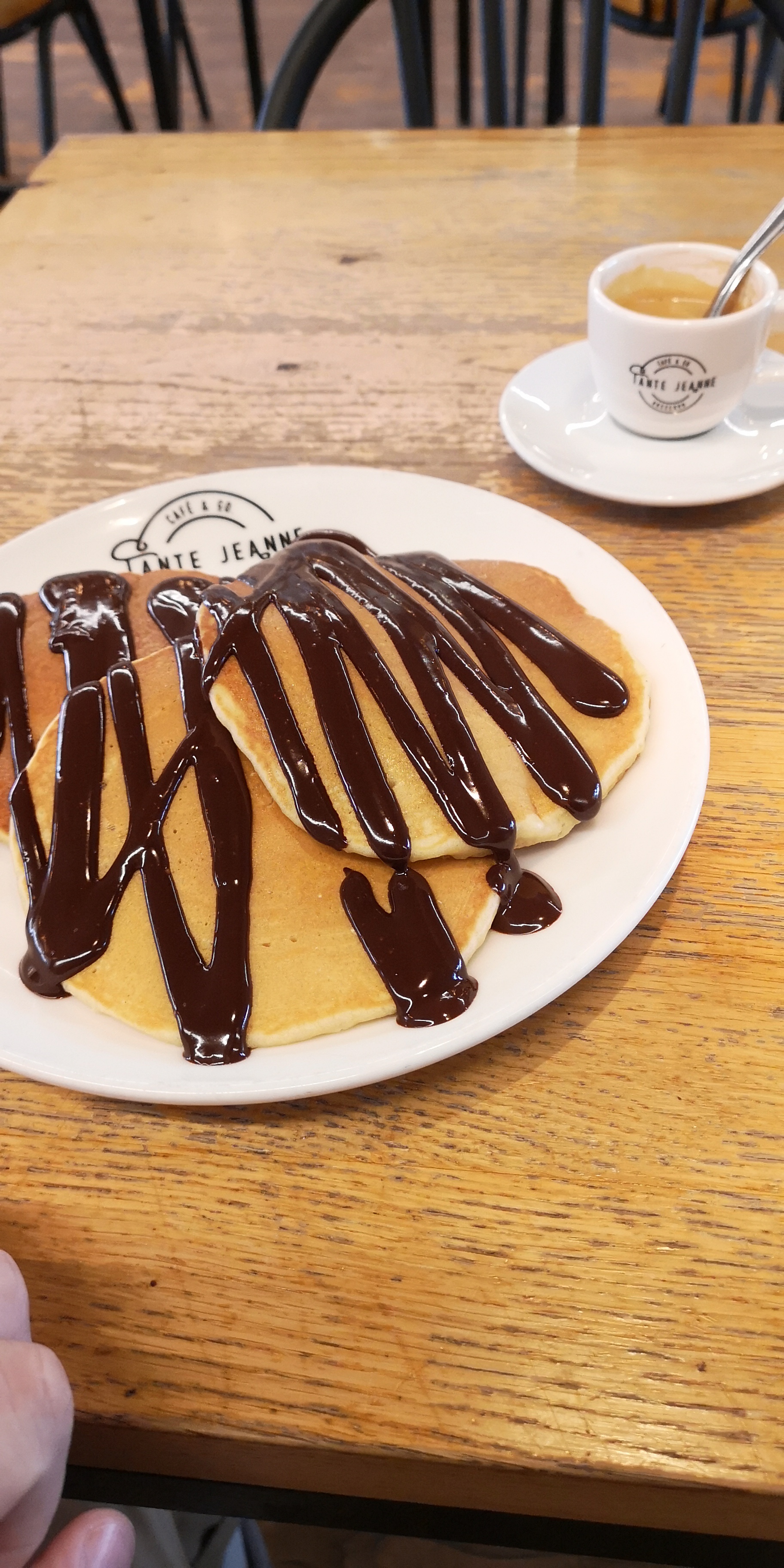 Le cadre est agréable et bien situé. La serveuse était agréable, de l'humour tout en restant poli. La table propre, le café est franchement bon. Les pancakes... X3 Bon ça cale bien, le chocolat maison n'est pas trop sucré un bon point.