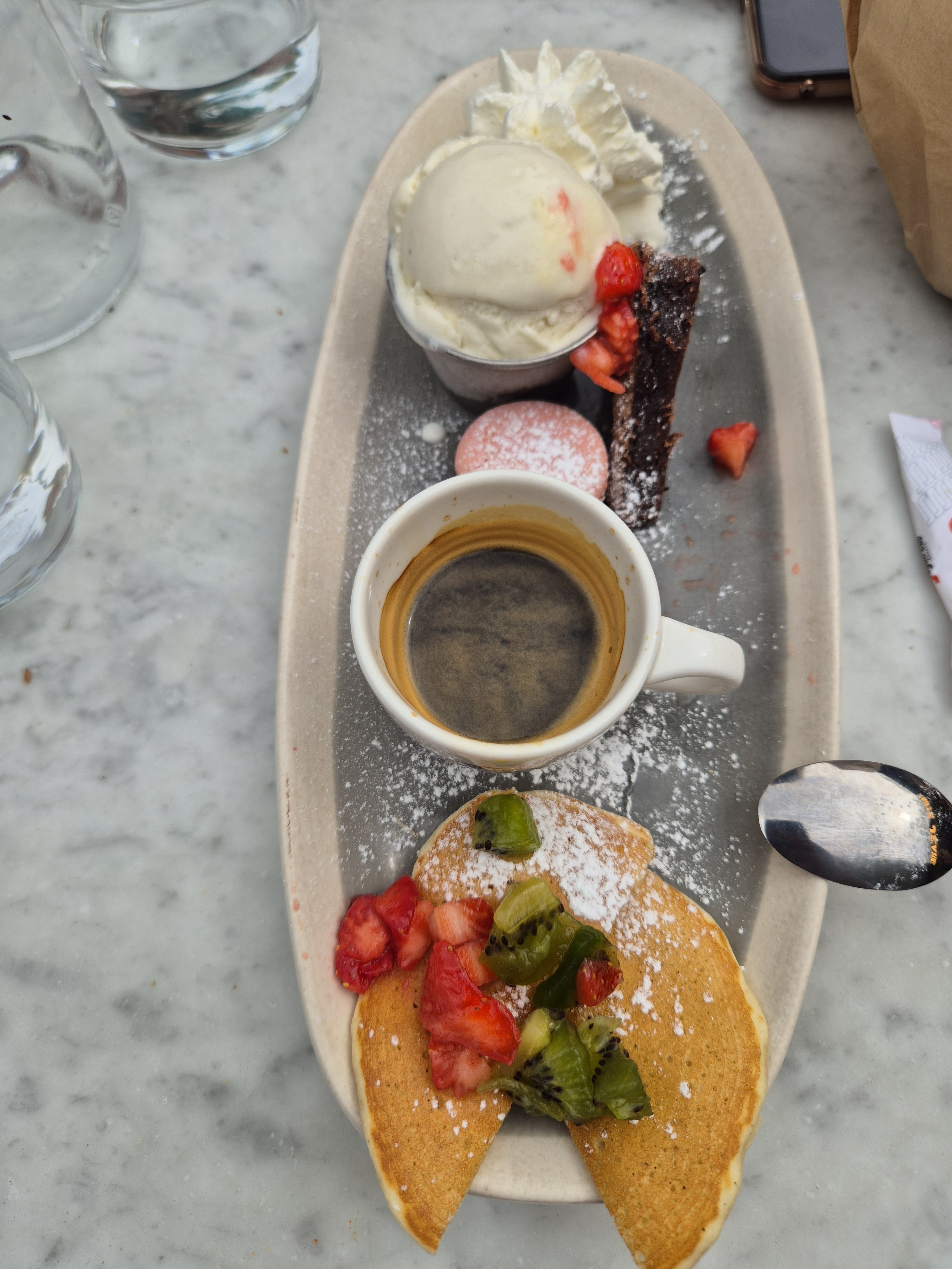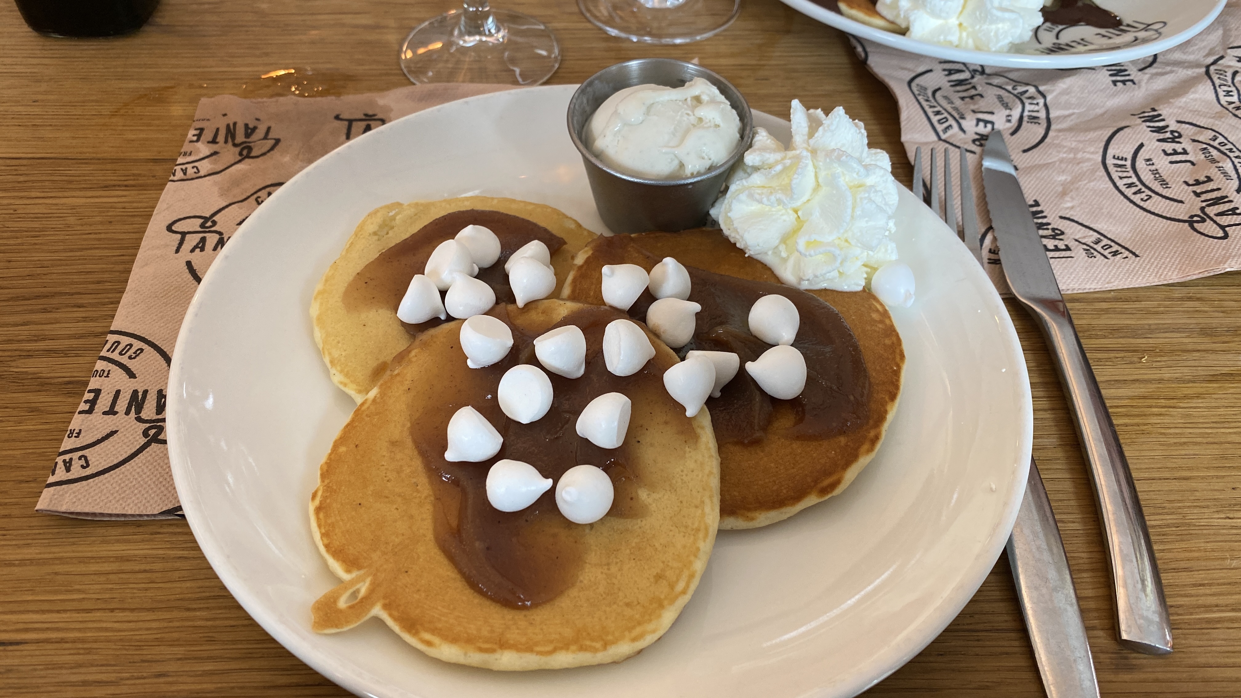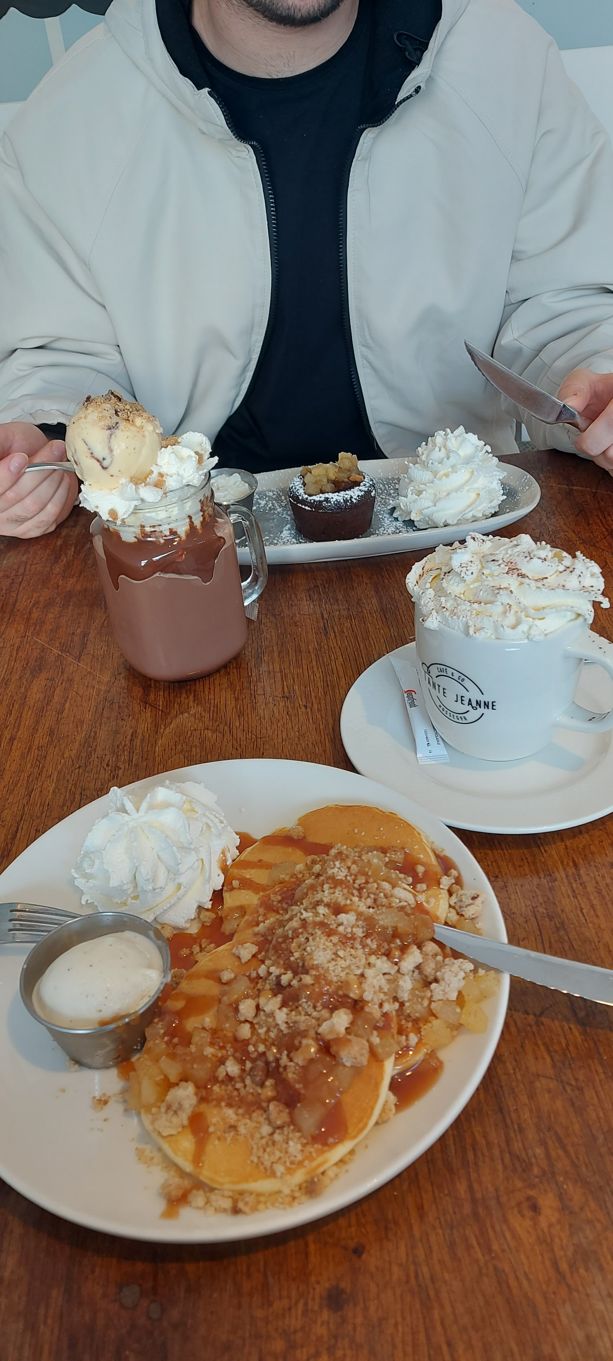 Des mois à parler d'aller tester Tante Jeanne, et quel régal ! Les jus de fruits sont excellents, j'avais peur d'avoir encore faim après ma tartine, mais il restait tout juste de la place pour les pancakes. Hâte de revenir et de goûter cette fois les glaces qui ont l'air tout aussi incroyables. La jeune fille qui s'est occupée de notre table était top !