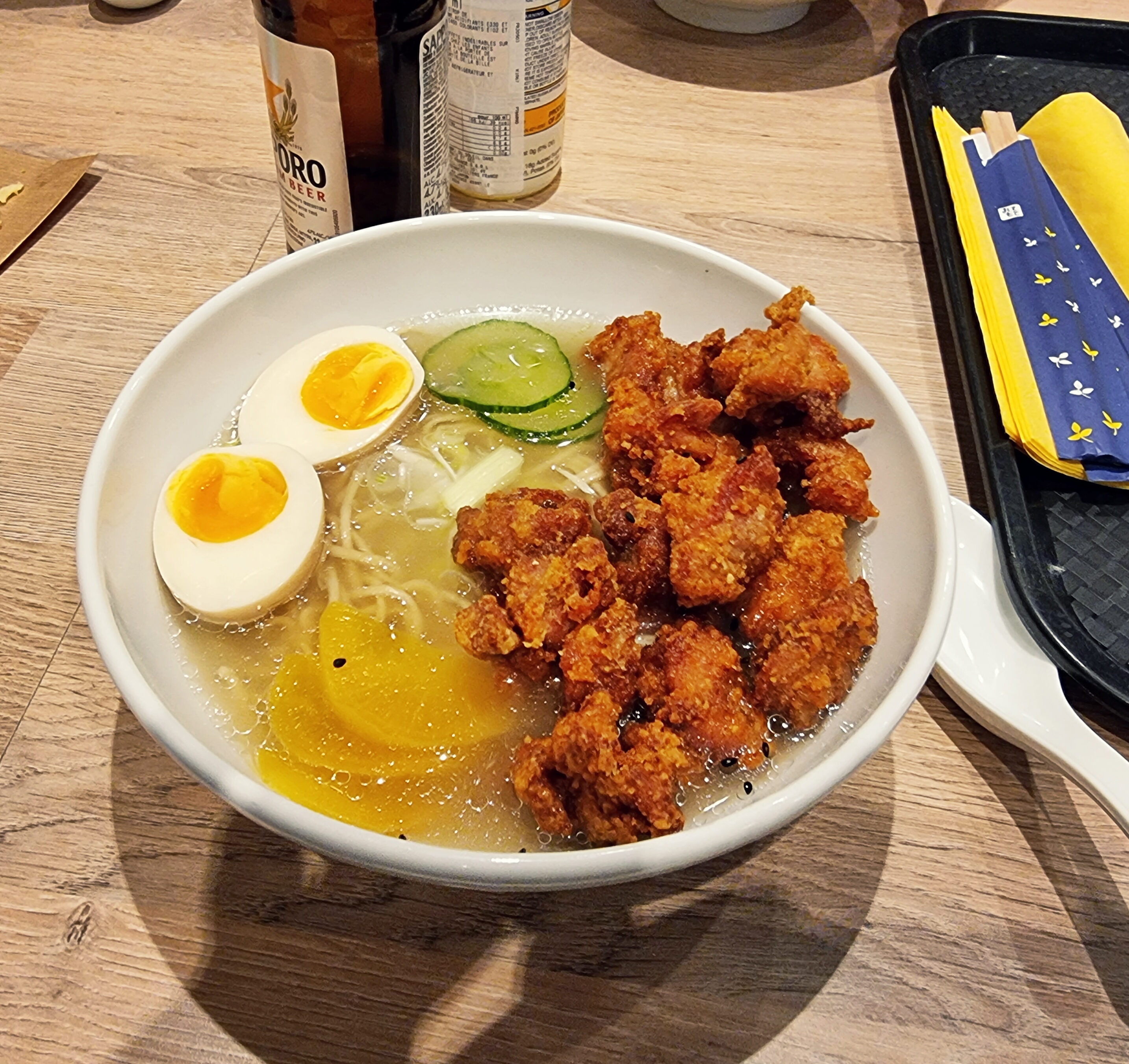 Tres bon , poulet frit excellent avec le riz Ma fille s est régalée sur le ramèn, porc croustillant, œuf et pâtes Restaurant propre