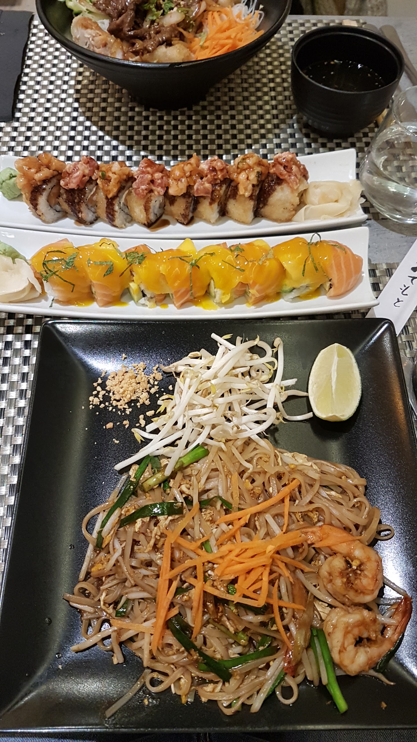 Bon rapport qualité prix dans l'ensemble. Mais quelques points négatifs , les california et dragon Rolls sont trop chargés en riz , ils perdent le goût de la garniture ... Et je n'ai pas trouvé que l'entrecôte tigre qui pleure soit tres assaisonnée .