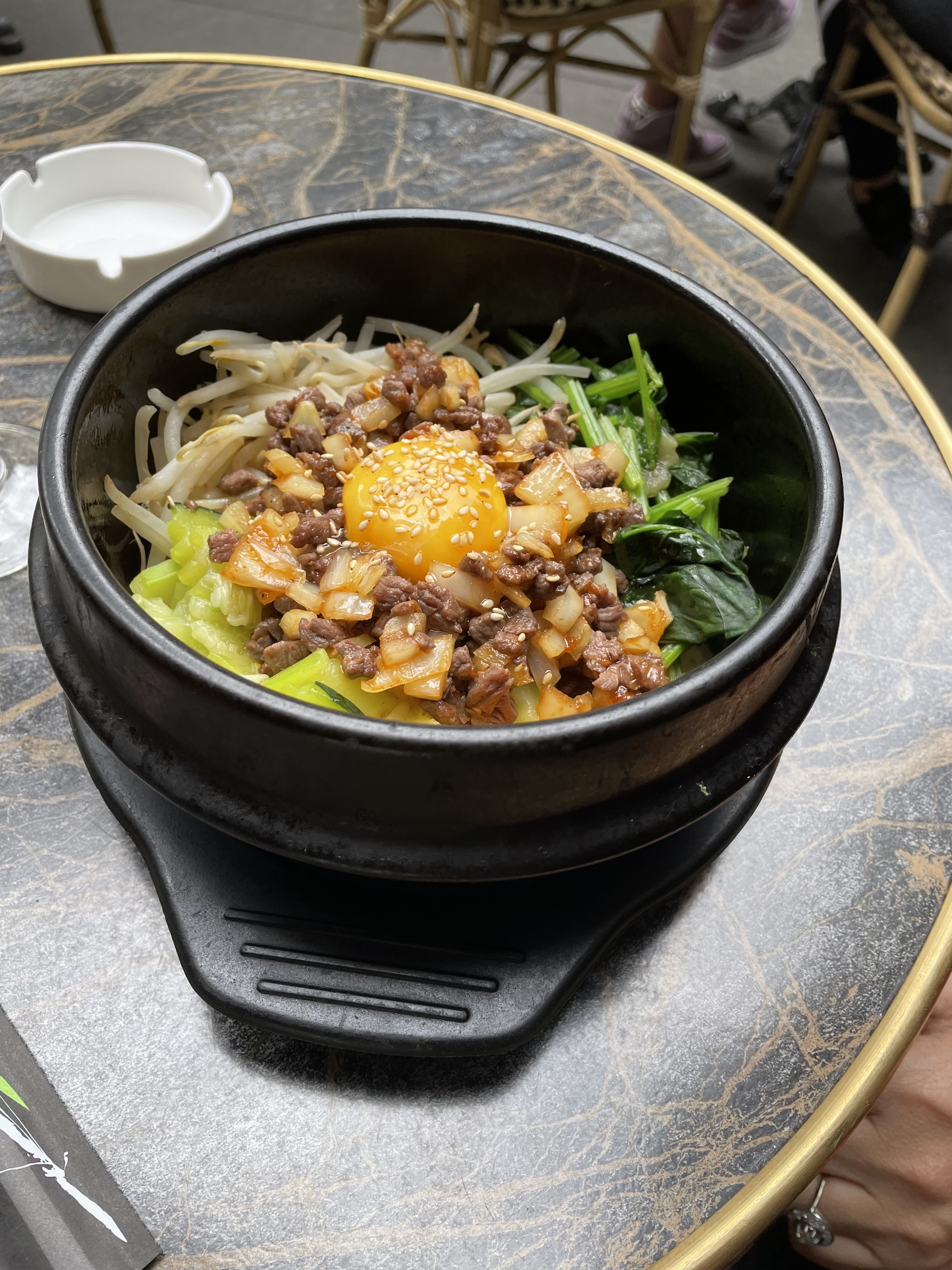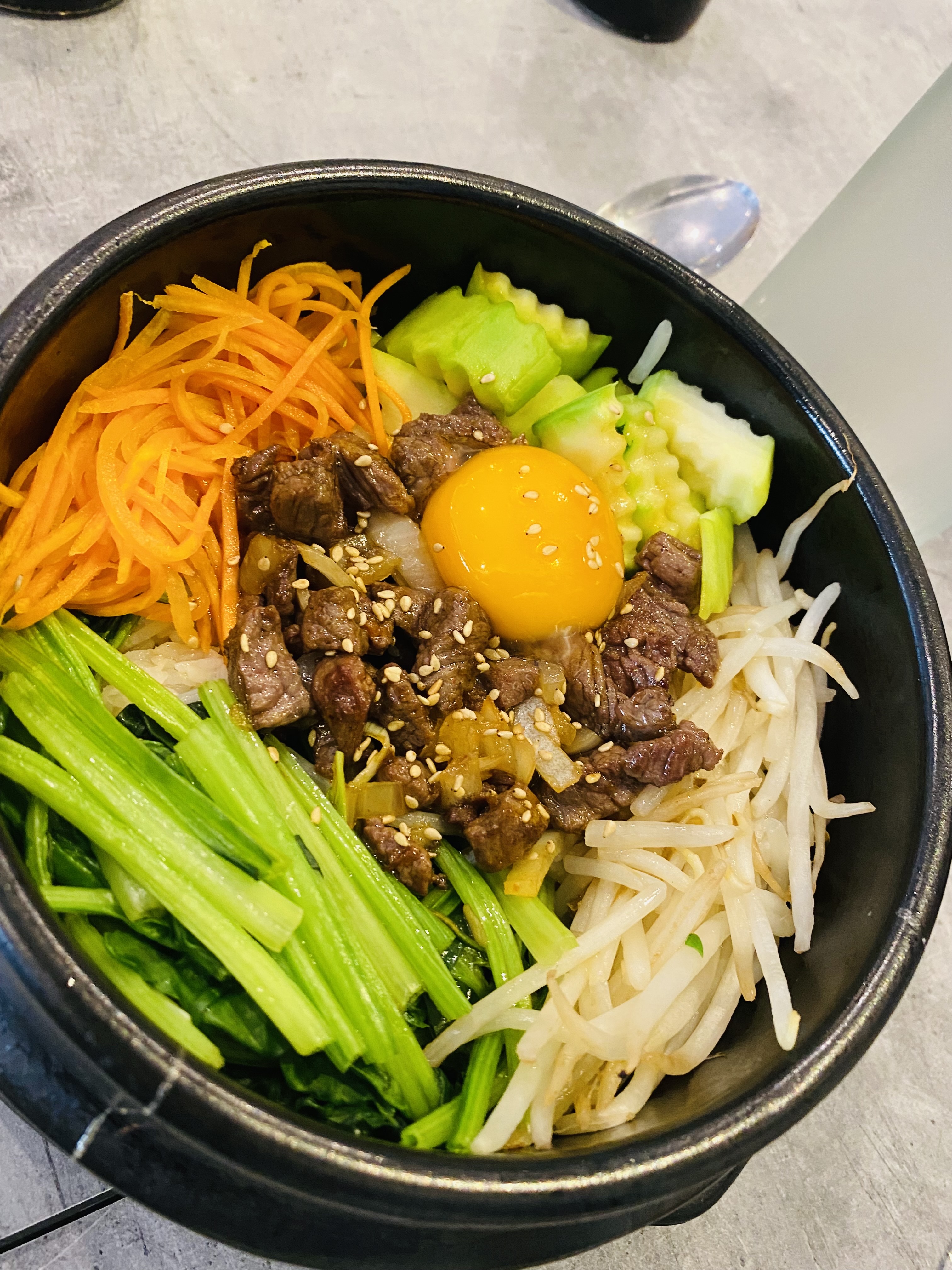 Sashimi et bibimbap très géniaux servis, nous avons vraiment apprécié notre déjeuner tardif ici au TAO. Pour savourer encore plus votre bibimbap, essayez de le mélanger à la sauce gojujjang. C'était absolument fantastique !