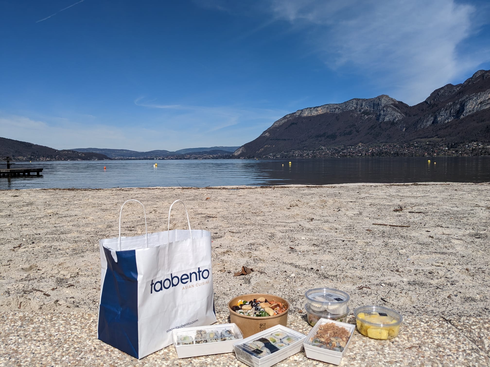 Vive le printemps avec un petit pique nique Tao Bento livré a la plage de St Jorioz :-). Que ca fait du bien....
