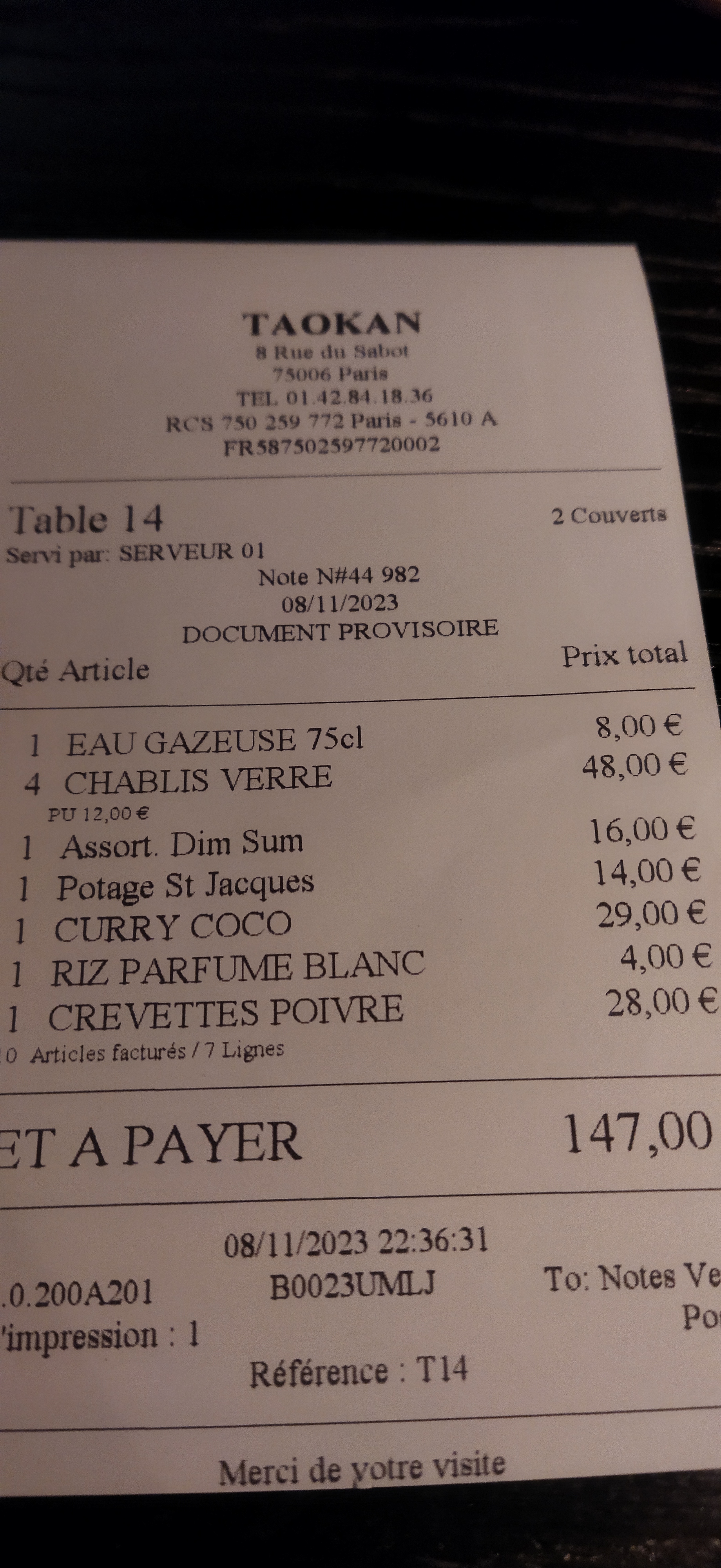 TaoKan est le type de restaurant asiatique que l’on peut retrouver aux abords des Champs Elysées et de l’avenue de la Grande Armée à Neuilly. Une standardisation des plats, sans prise de risque. C’est bon mais absurdement cher pour l’assiette, on paye donc ici le cadre et le service, c’est ce qu’il faut savoir. Le menu est constitué principalement de plats chinois avec quelques propositions thaïlandaises et hongkongaises.