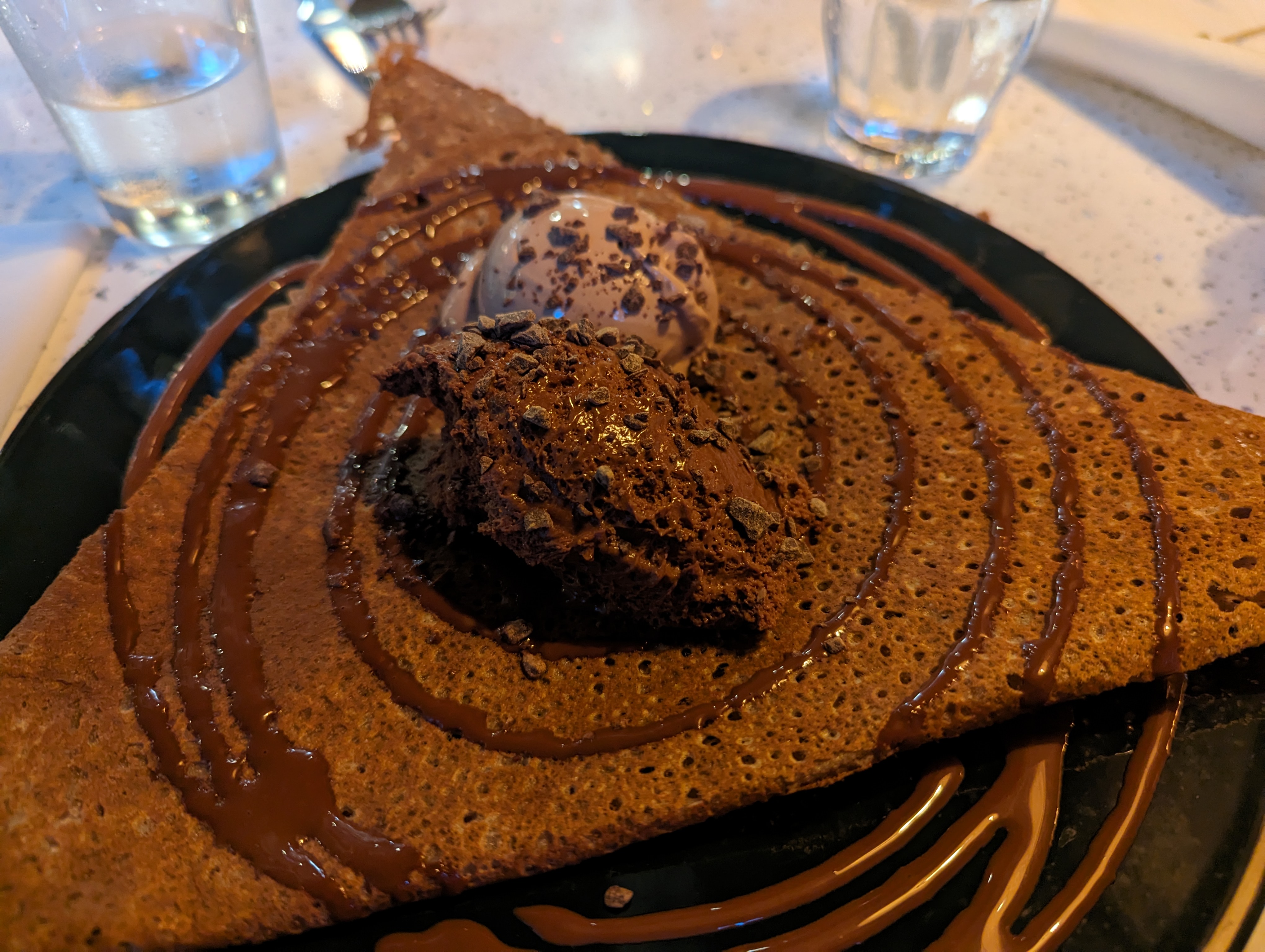 L’ambiance est chaleureuse et les crêpes sont succulentes. La crêpe mousse au chocolat en dessert : tuerie
