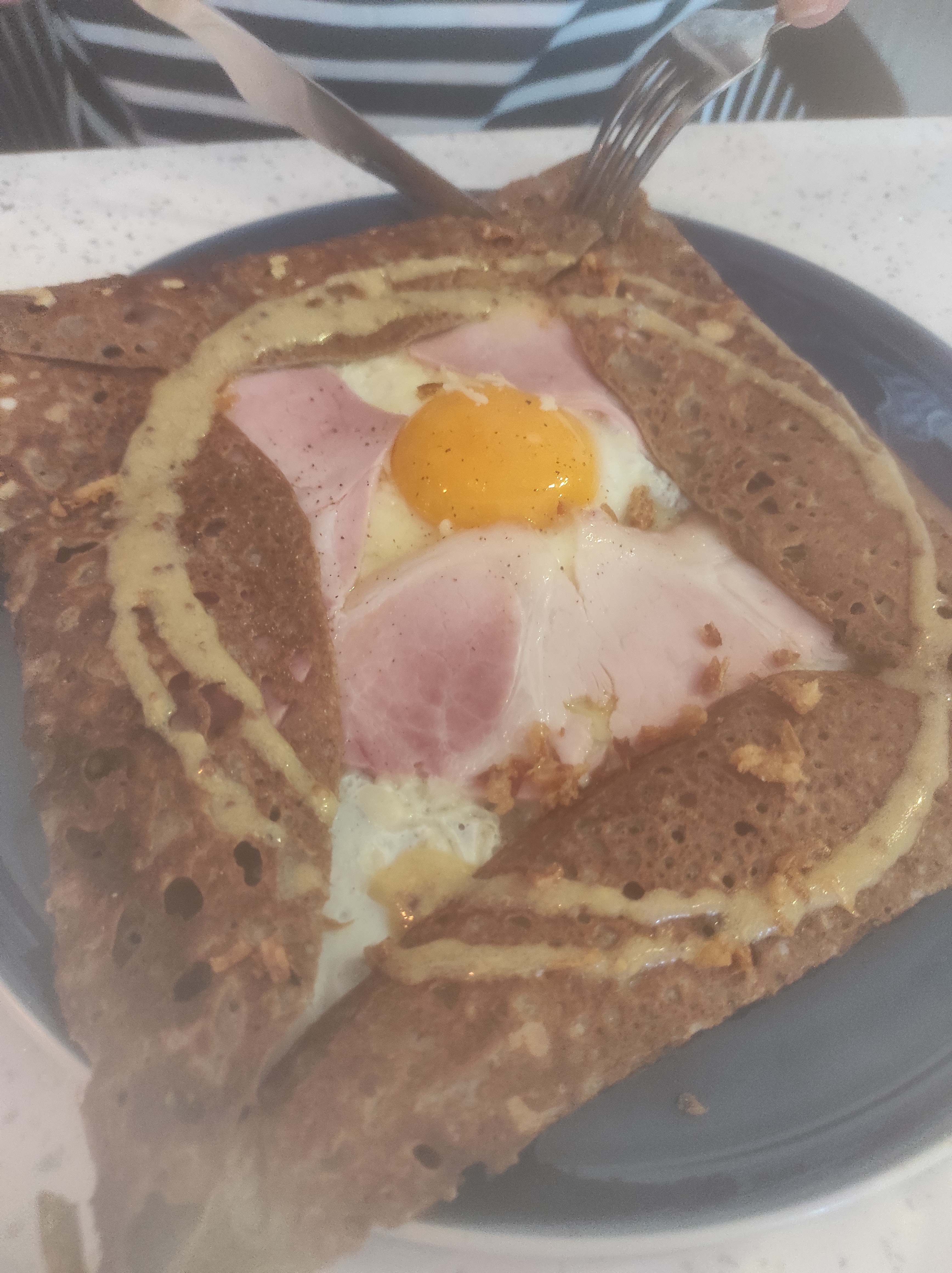 J’ai tout aimé. Le cadre soigné, calme et frais. Le service discret mais efficace. La galette (complète) vraiment excellente et le dessert 🤩 Magnifique et délicieux. J’ai apprécié le prix de la bouteille d’eau enfin raisonnable !! Et le prix global du menu. Merci Katty et l’équipe. Nous reviendrons très vite.