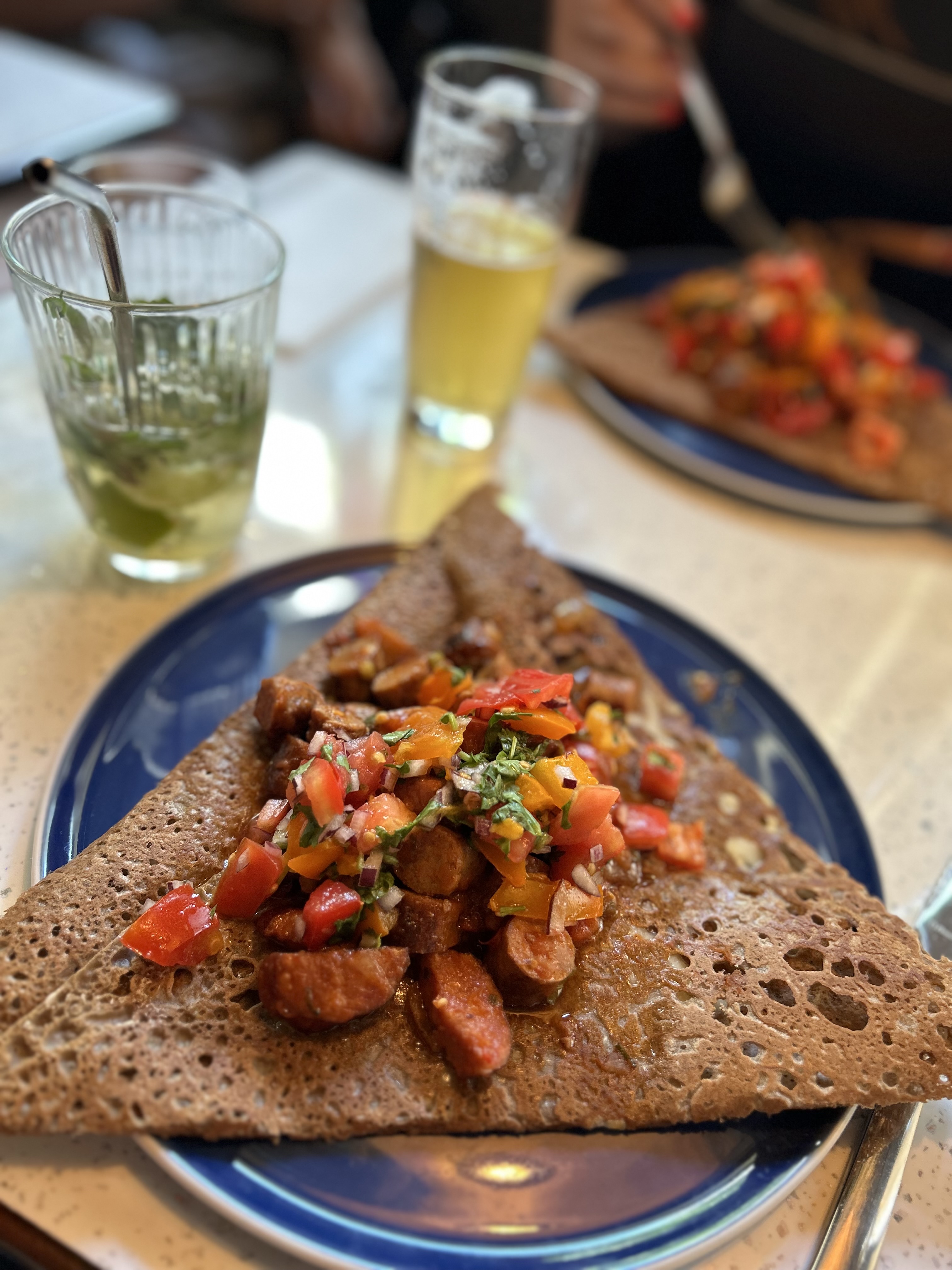 Belle expérience, galettes kraz et crêpes sucrées succulentes, bel accueil, une très bonne crêperie au décor accueillant que je recommande