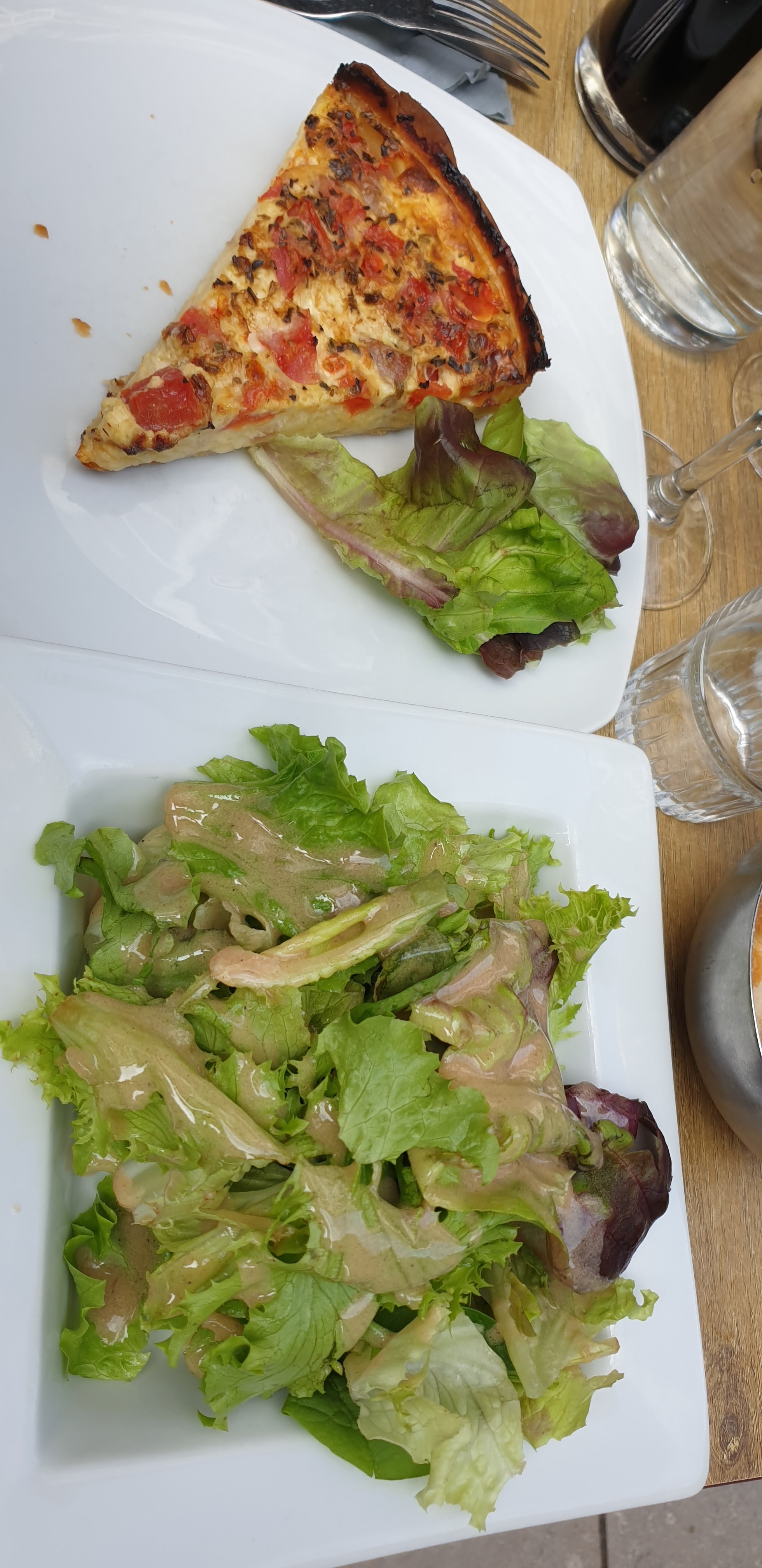 Part de quiche chère pour la quantité servie , grande plaque en bois entre les tables qui donnent l’impression de s’étouffer . Une étoile pour le service et la rapidité et l’accueil du personnel. On ne reviendra pas …