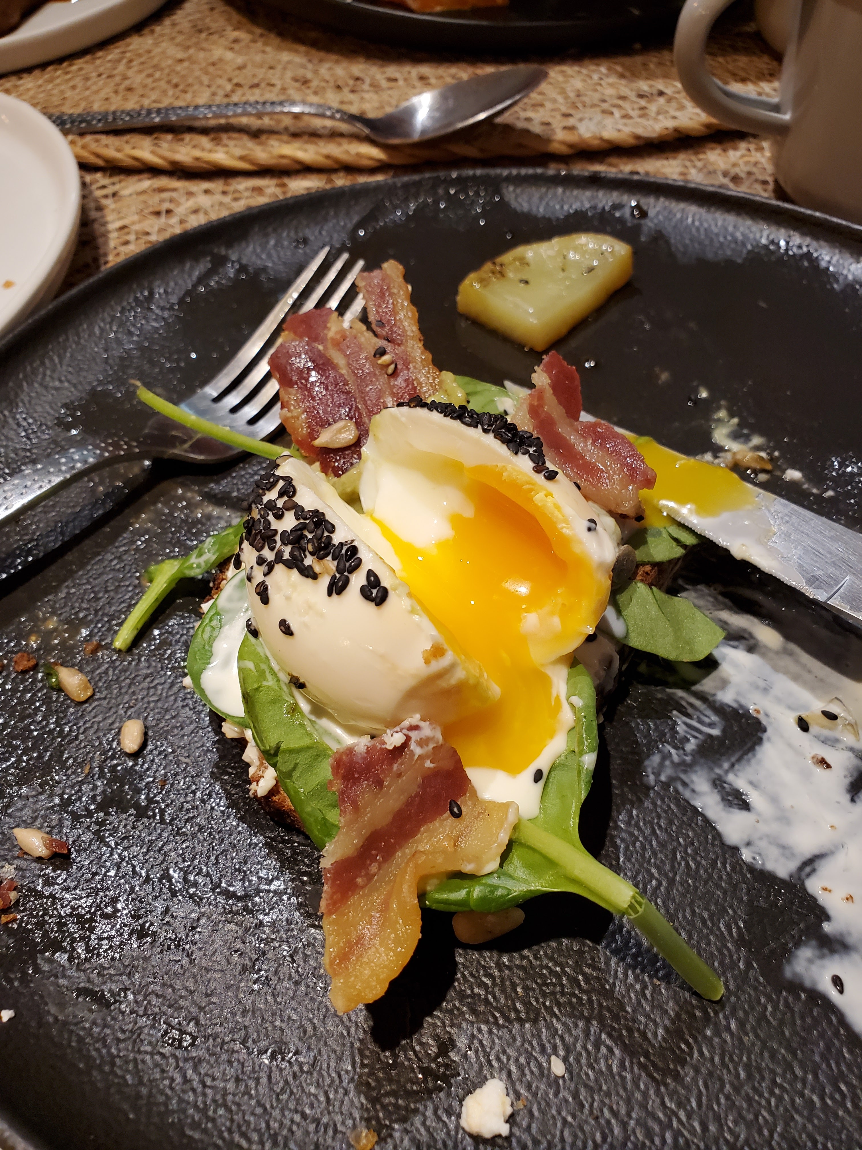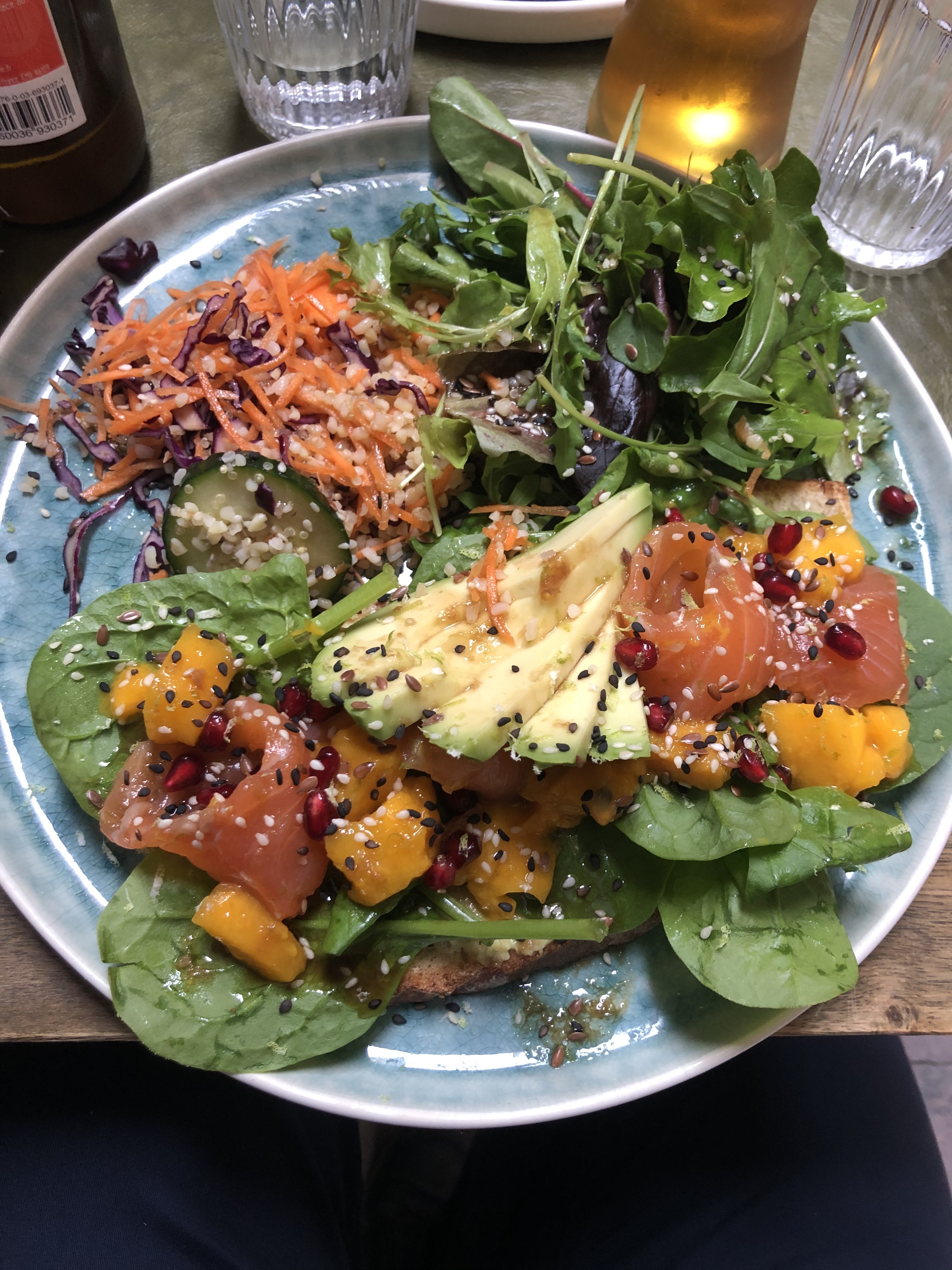 Honnêtement, j’ai perdu mes mots quand j’ai goûté la tartine🤣 Repas vraiment, vraiment délicieux. Prenez la tartine méditerranéenne, ajoutez du saumon, et vous ne serez pas déçu—je vous promets!